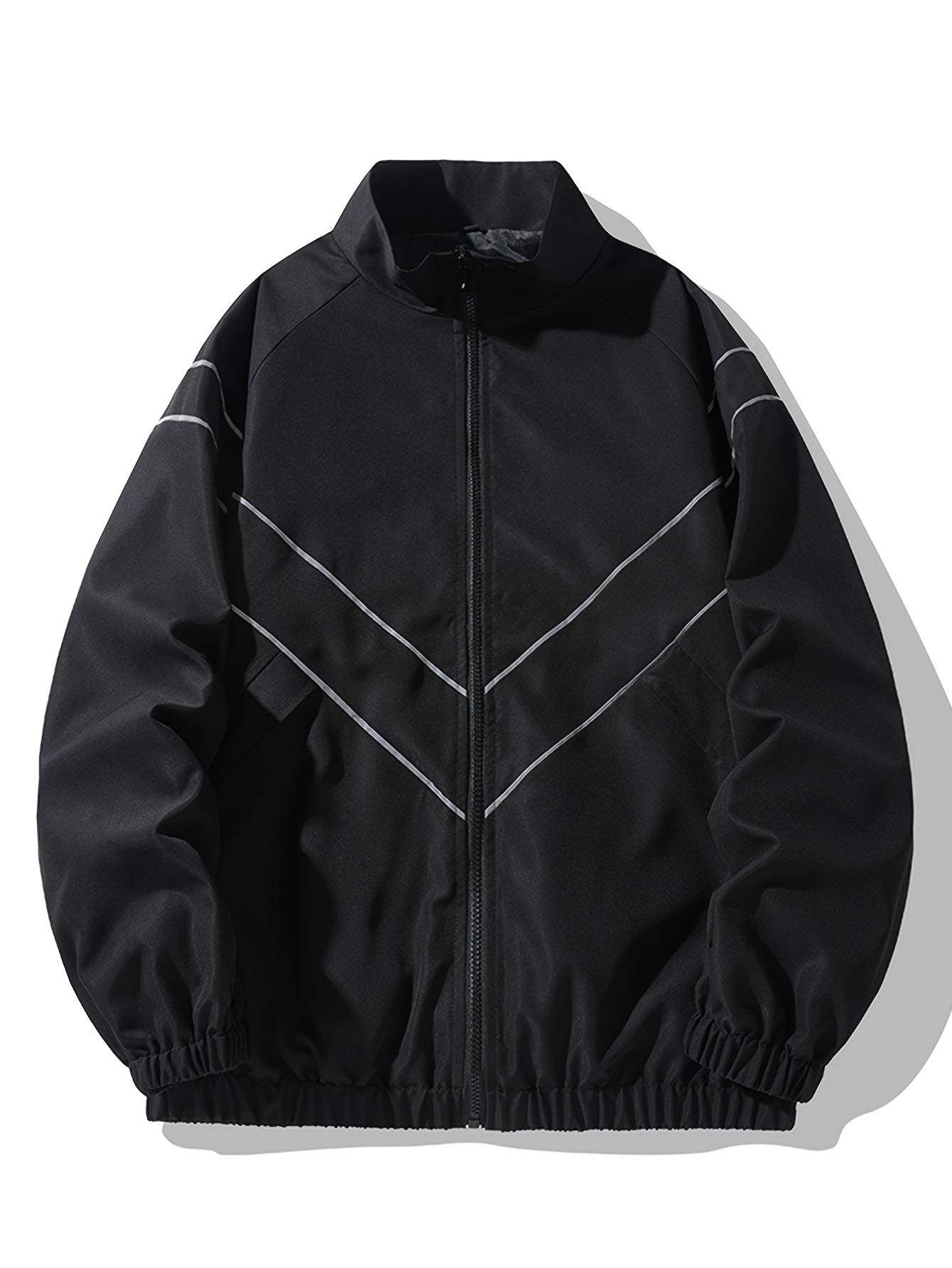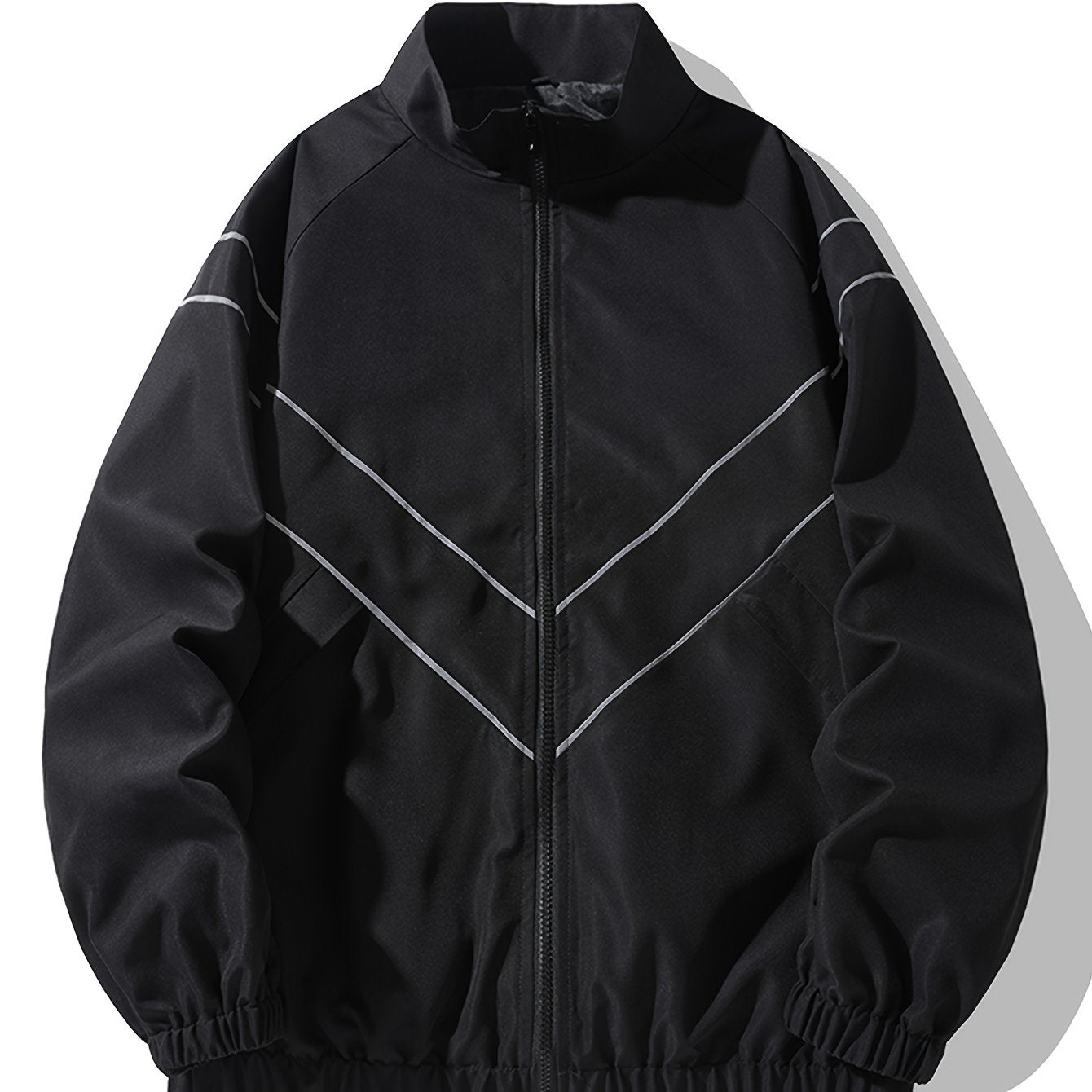 Erkaklar uchun yengil shamol o'tkazmaydigan kurtka, turli geometrik naqshda - Polyester, mashinada yuvish mumkin - Bahor va kuzda ochiq havoda faoliyatlar uchun mukammal