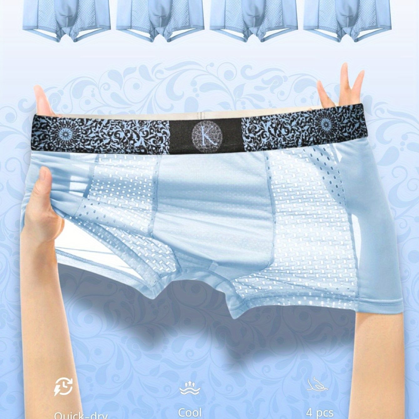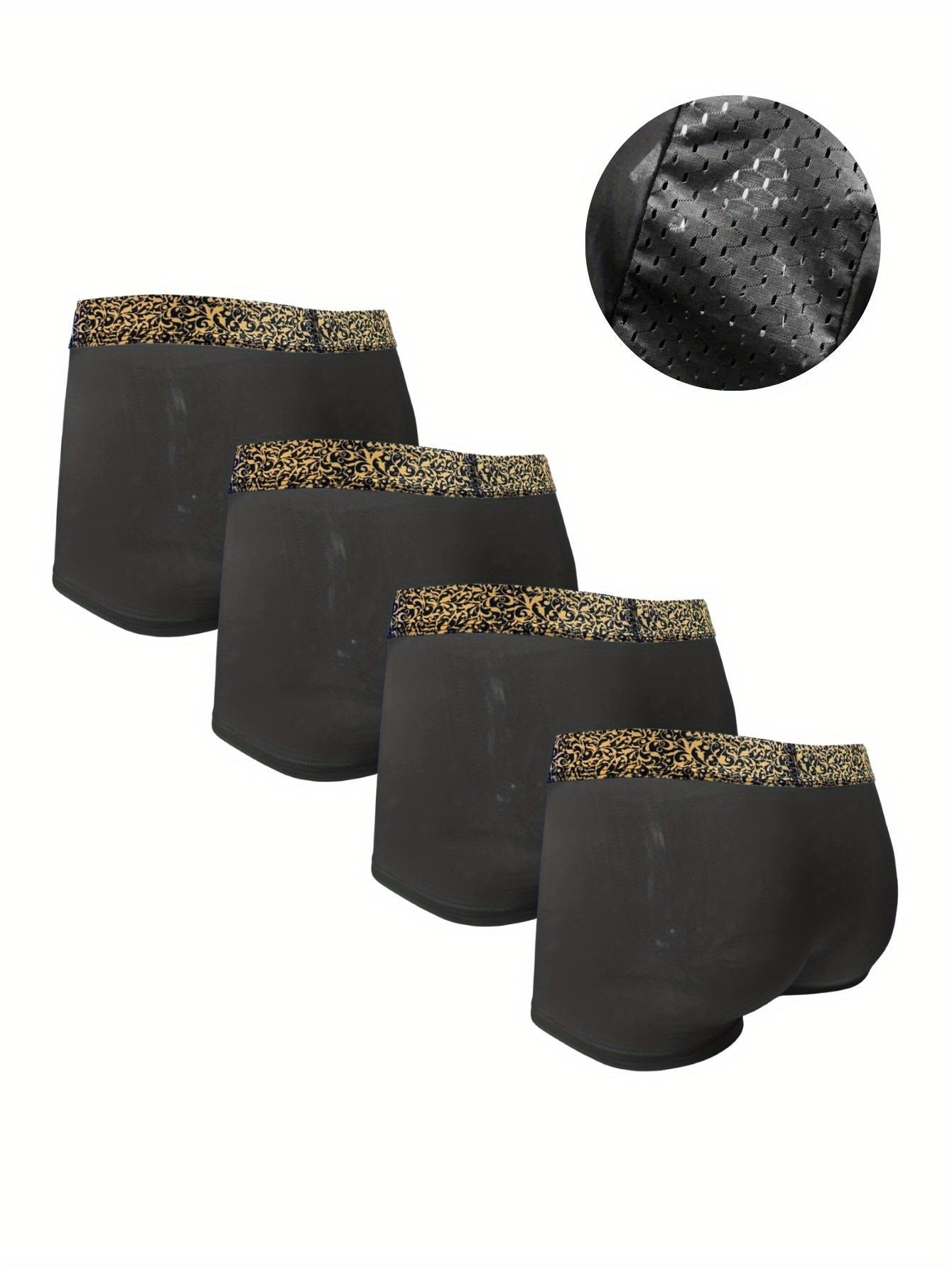 Erkaklar uchun Lüks Barok uslubidagi boxer qisqa shimlar, 4 dona, Muzli Silky Salqin va Havo o'tkazuvchi, Tez quriydigan, Ultra-ingichka, Ommabop oltin belbog' bilan, qora, qora kulrang, och kulrang va osmon ranglarida mavjud.