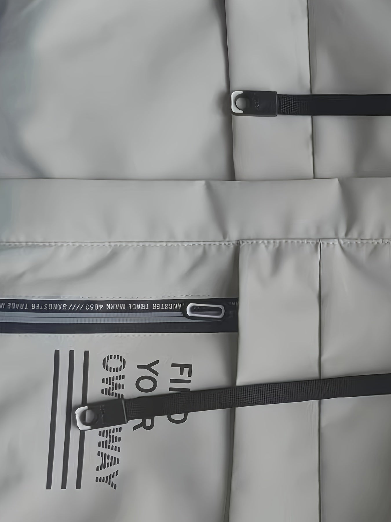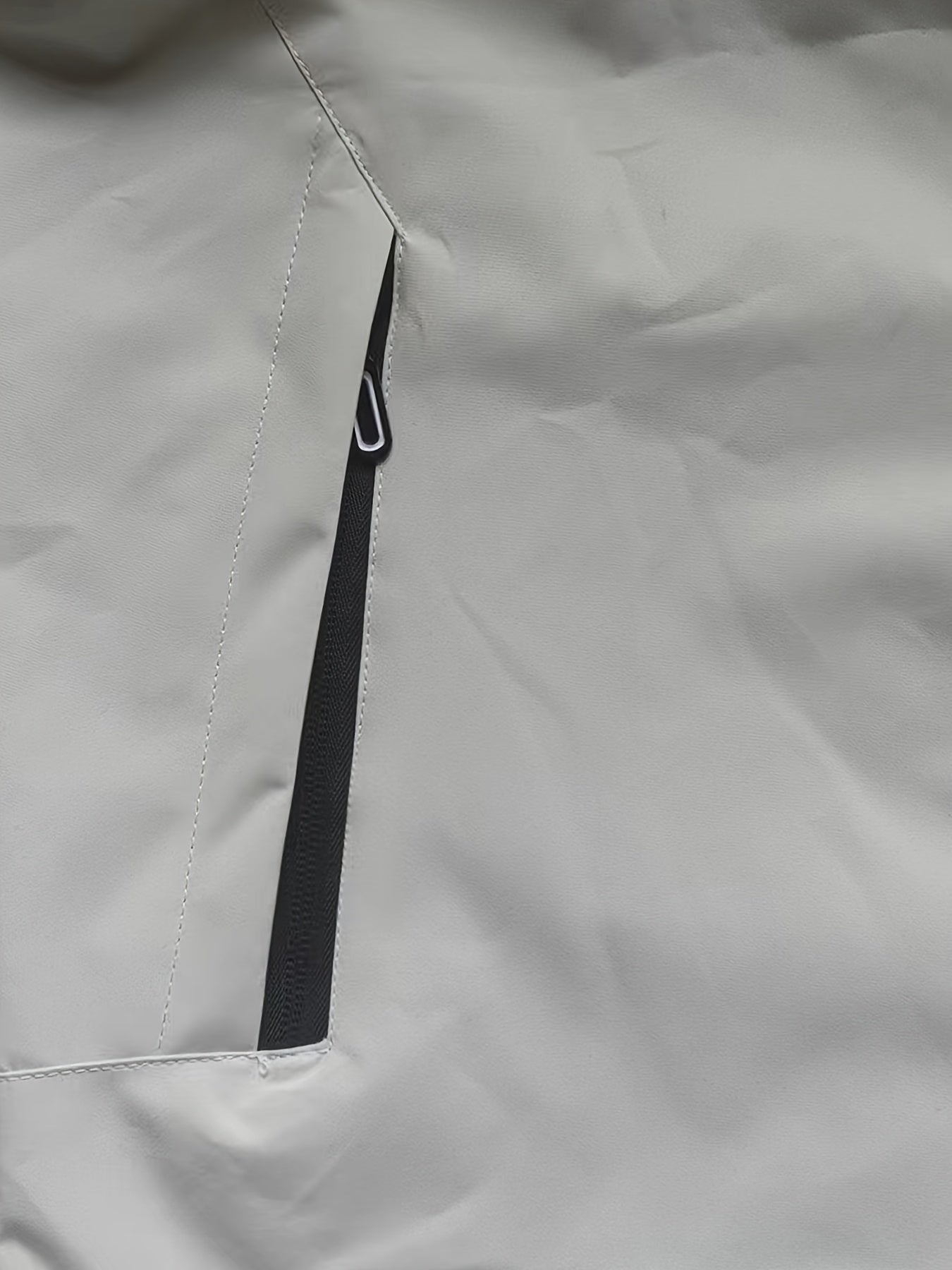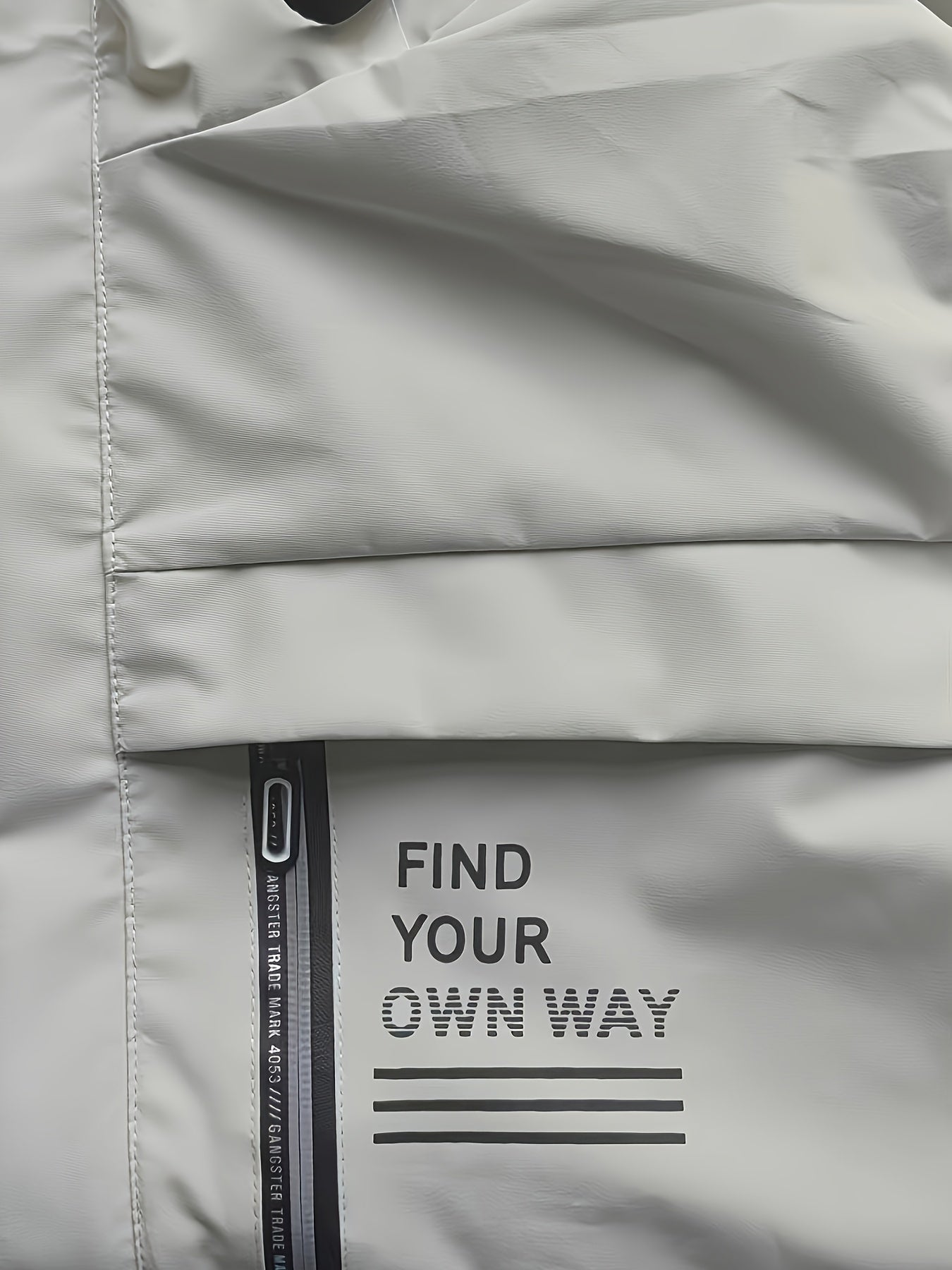 Erkaklar uchun ko'k rangli kapüşonli kurtka, zipli cho'ntaklar bilan, engil polyesterdan tayyorlangan, bahor va kuz uchun mashinada yuvilishi mumkin.