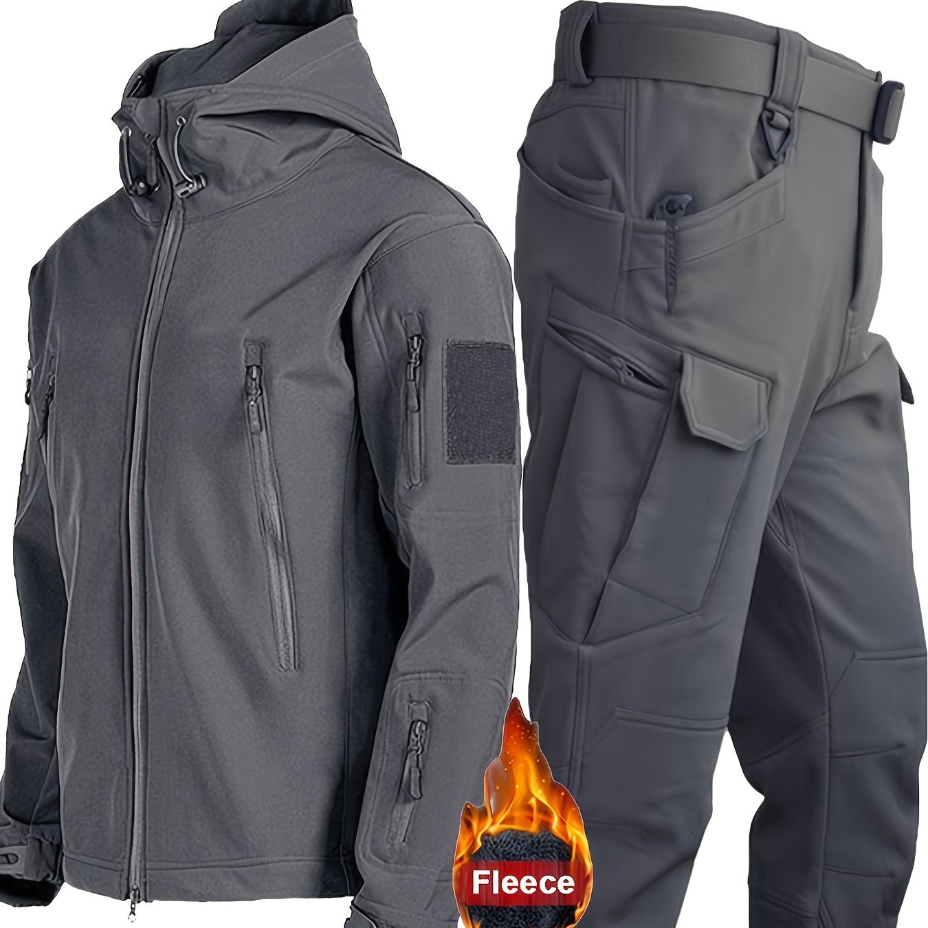 Erkaklar uchun tashqi sport to'plami, kapuchonli kurtka, bir nechta cho'ntaklar va turli faoliyatlar uchun bir rangli - Kuz/Qish to'plami