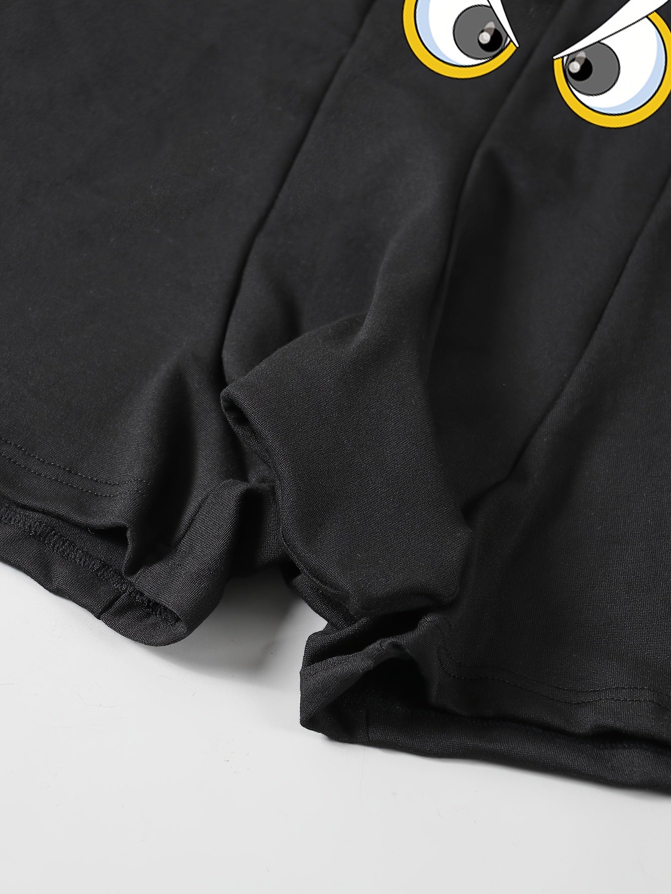 Erkaklar uchun o'yinchoq karikatura ko'z printli boxer shortlari - qora rangdagi elastik belbog' bilan cho'ziluvchan, nafas oladigan va qulay to'qilgan mato.