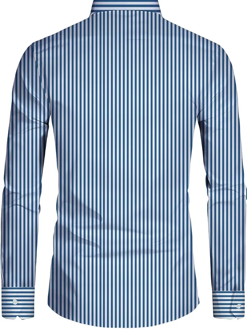 Erkaklar uchun katta o'lchamdagi ko'k va oq chiziqli uzun qo'lqonli ko'ylak, yuvish mashinasida yuvilishi mumkin, 3D bosma golf ustki.