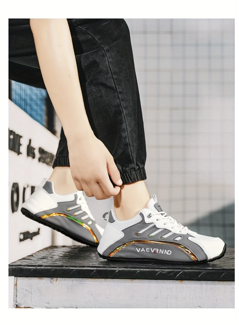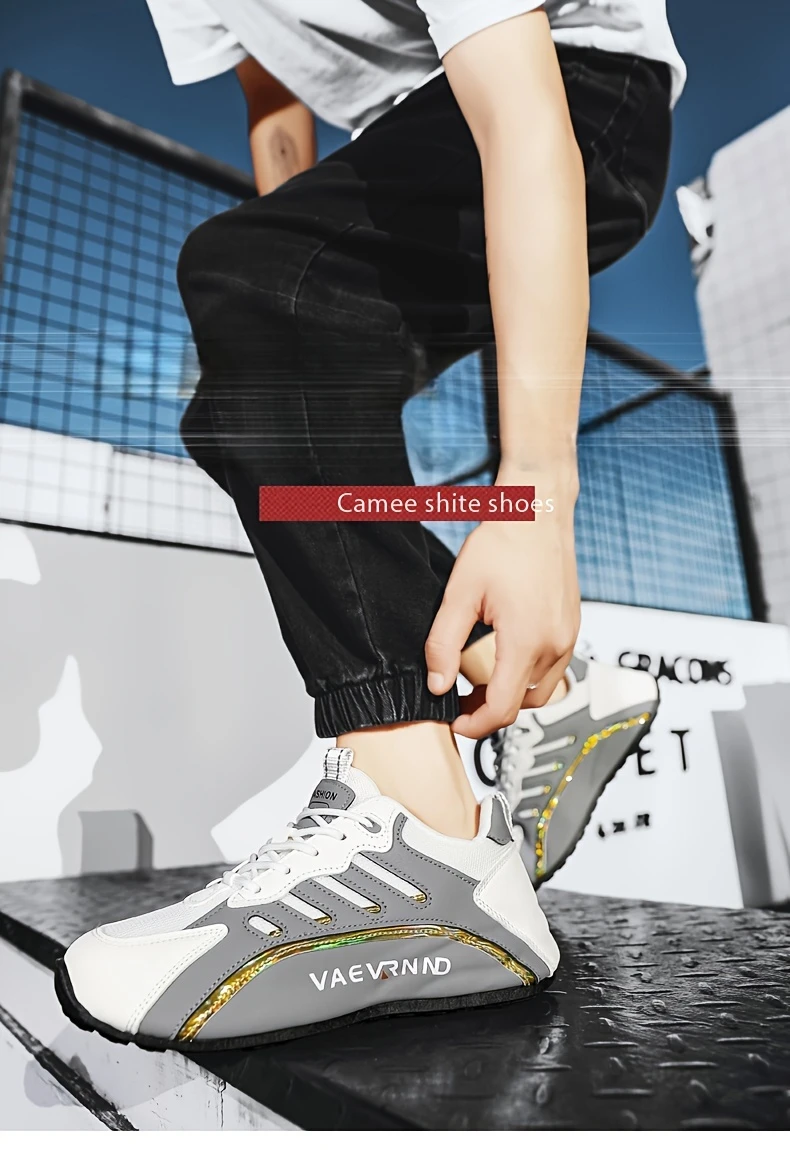 Erkaklar uchun Plus Size nafas oladigan to'rli tasodifiy krossovkalar, sirpanmaydigan PVC taglik bilan, barcha mavsumlarda yurish va skeytbord uchun mos. Qora, Oq va Teal ranglarida zamonaviy dizaynda mavjud.