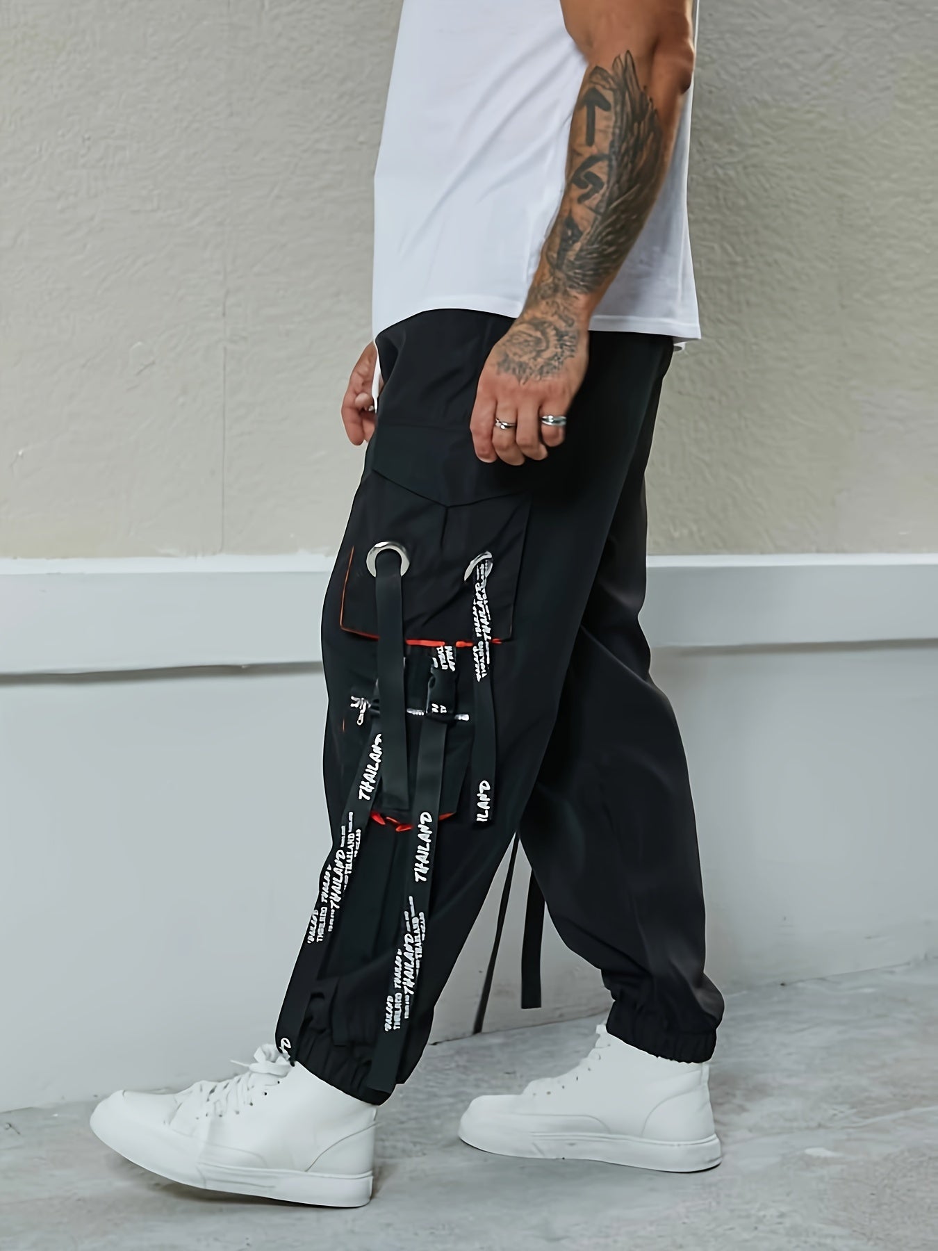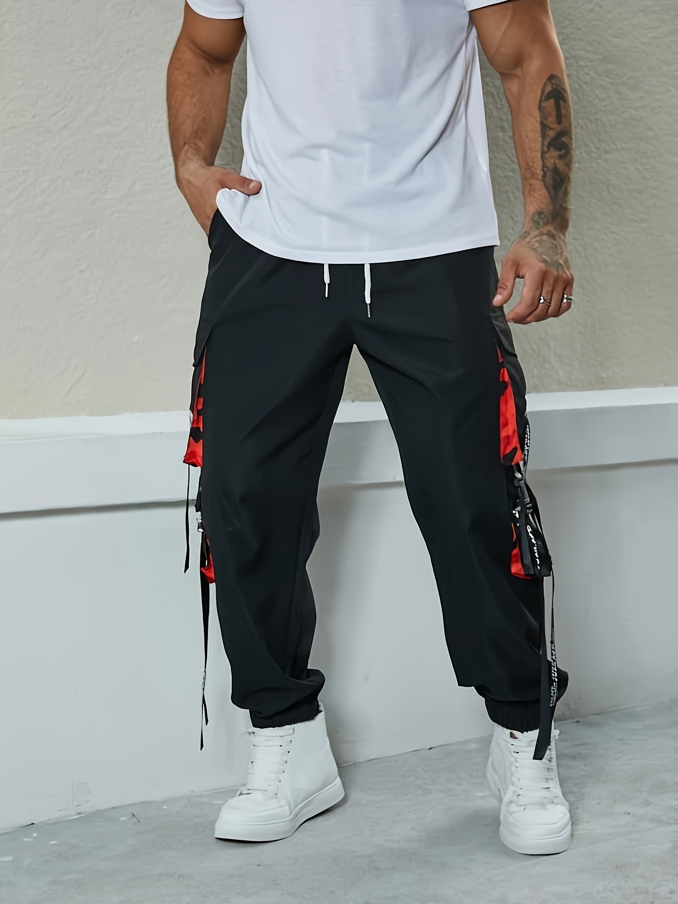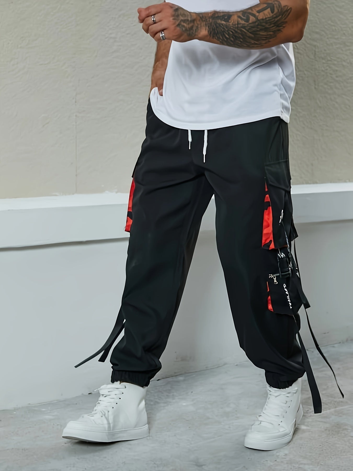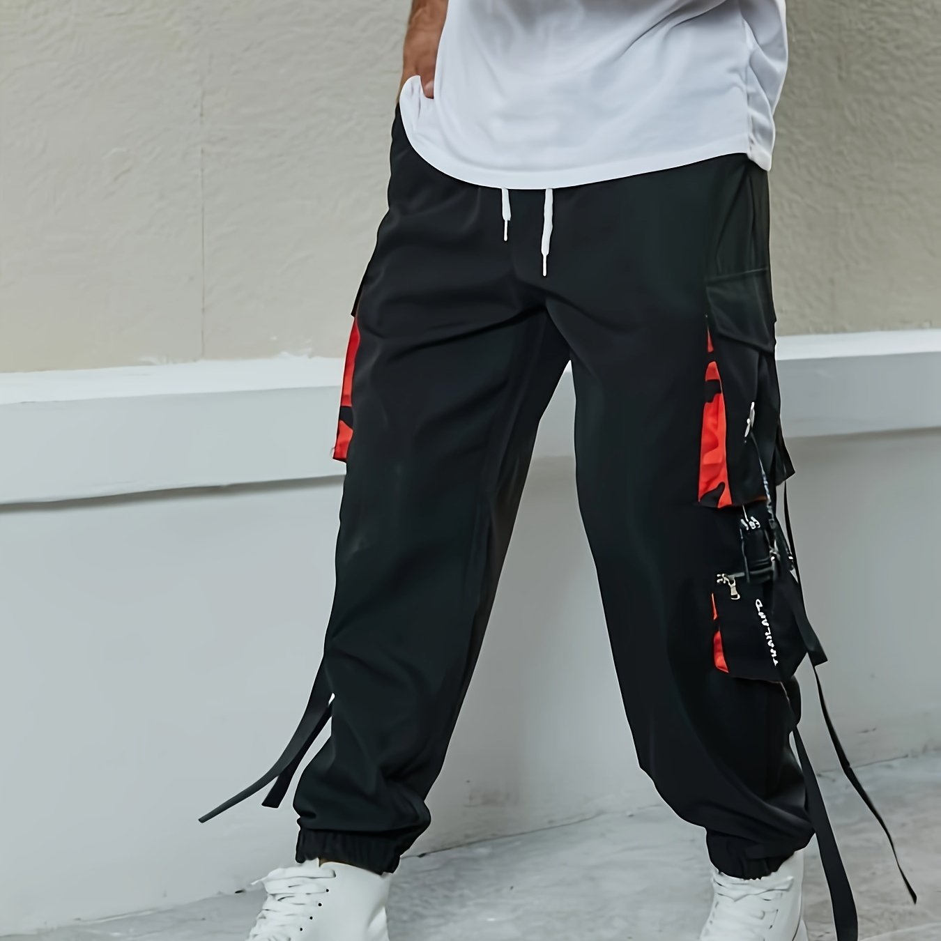 Yoz, kuz, qish mavsumlarida ko'cha uslubi uchun erkaklar uchun katta o'lchamli yuk shimlar.