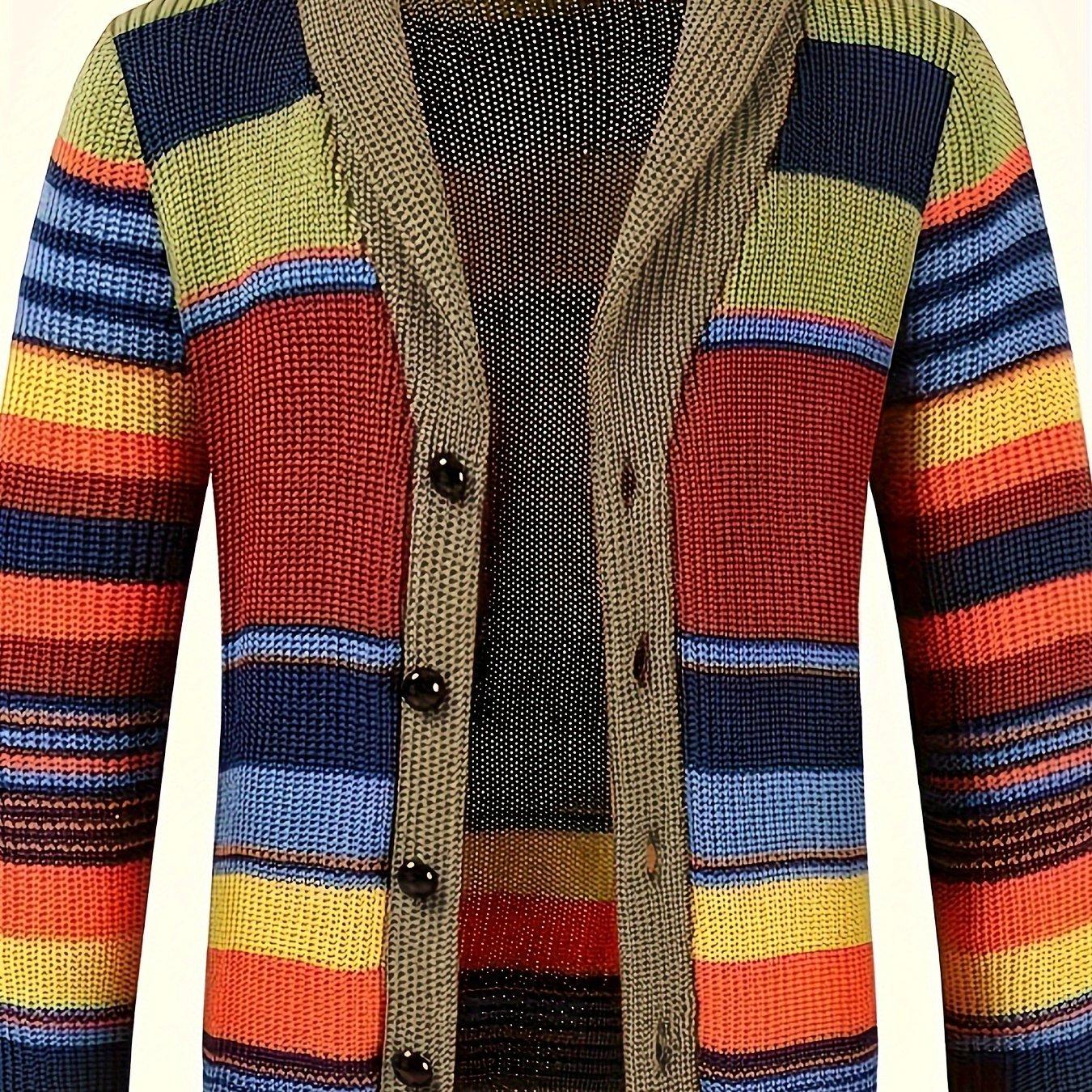 Barcha mavsumlar uchun erkaklar uchun katta o'lchamdagi kontrast rangli trikotaj kardigan.