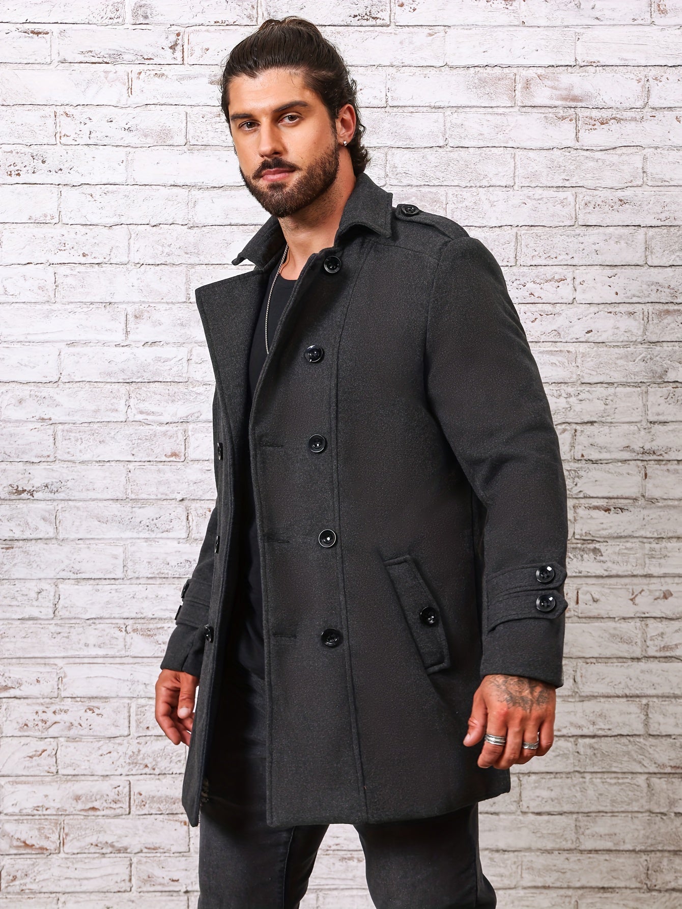 Erkaklar uchun plussiz, ichki qoplamali, ikki qatorli palto, kuz/qish mavsumi uchun shamolga chidamli, issiqlik va uslub uchun.