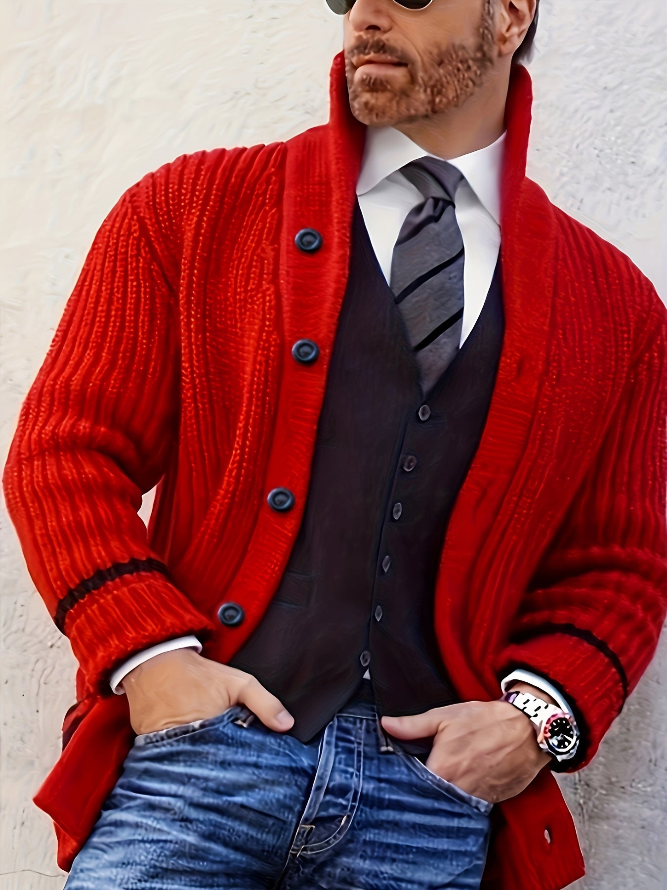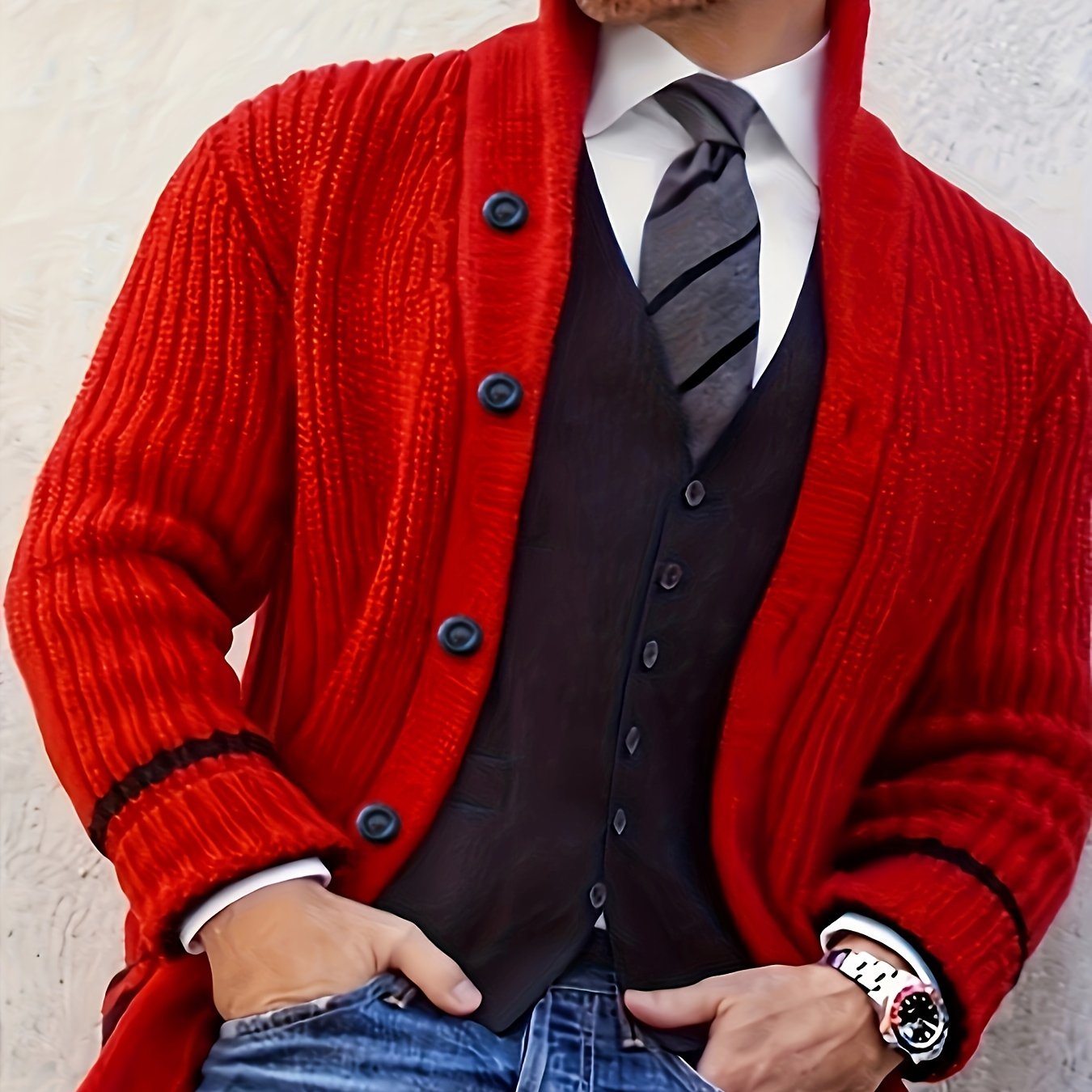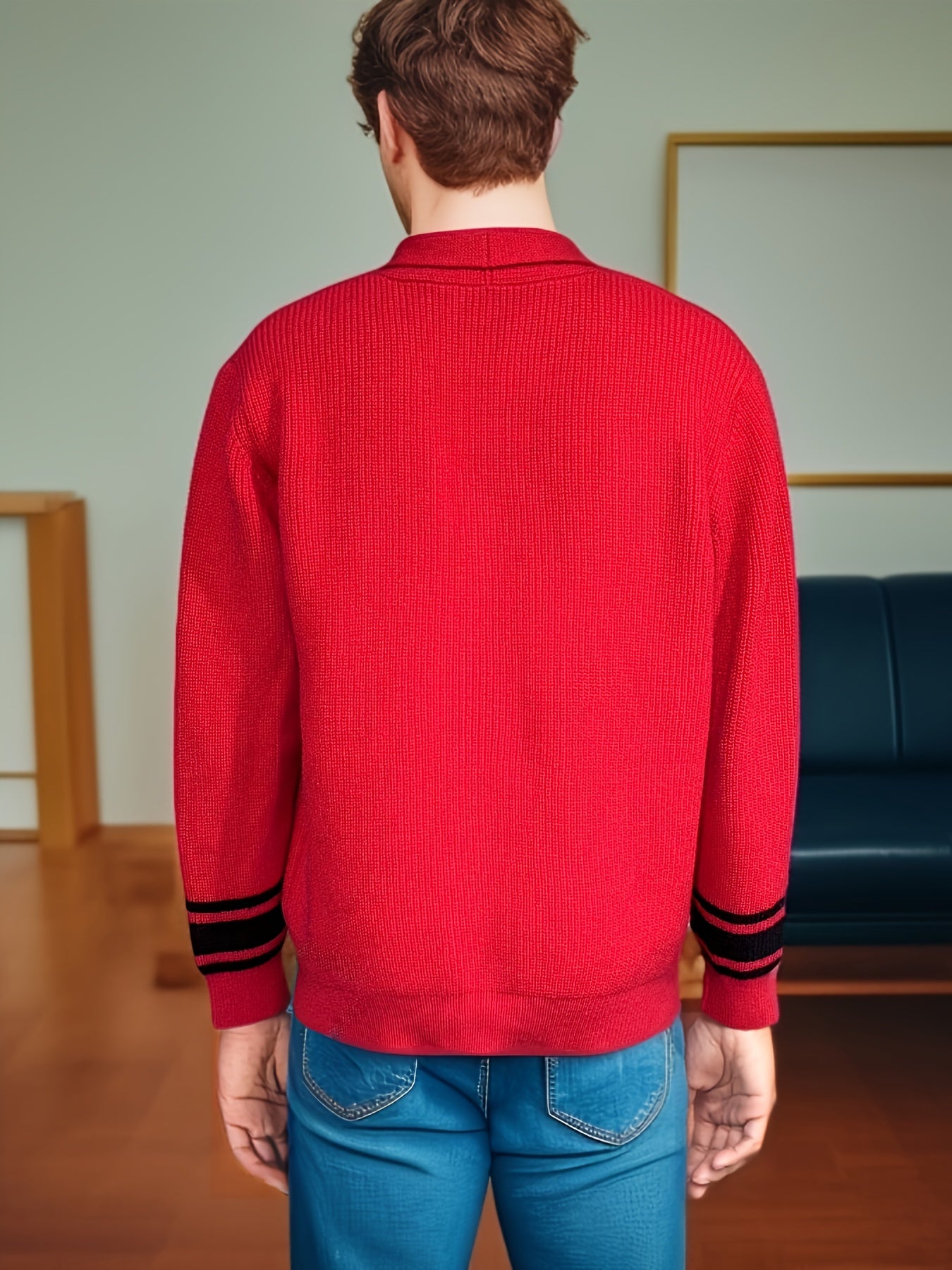 Erkaklar uchun plussiz o'lchamdagi trikotaj kardigan sviter, dumaloq bo'yin, cho'ziluvchan mato, bir rangli, cho'ntak detali va kuz/qish mavsumi uchun oddiy moslik.
