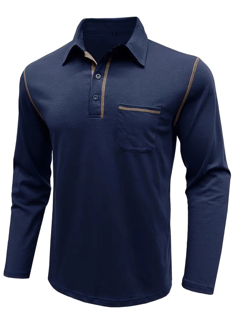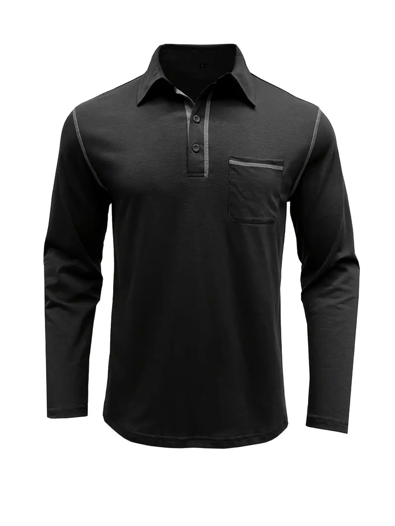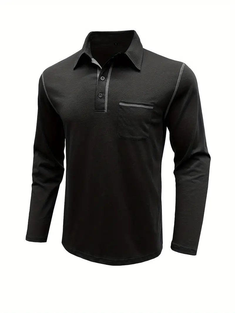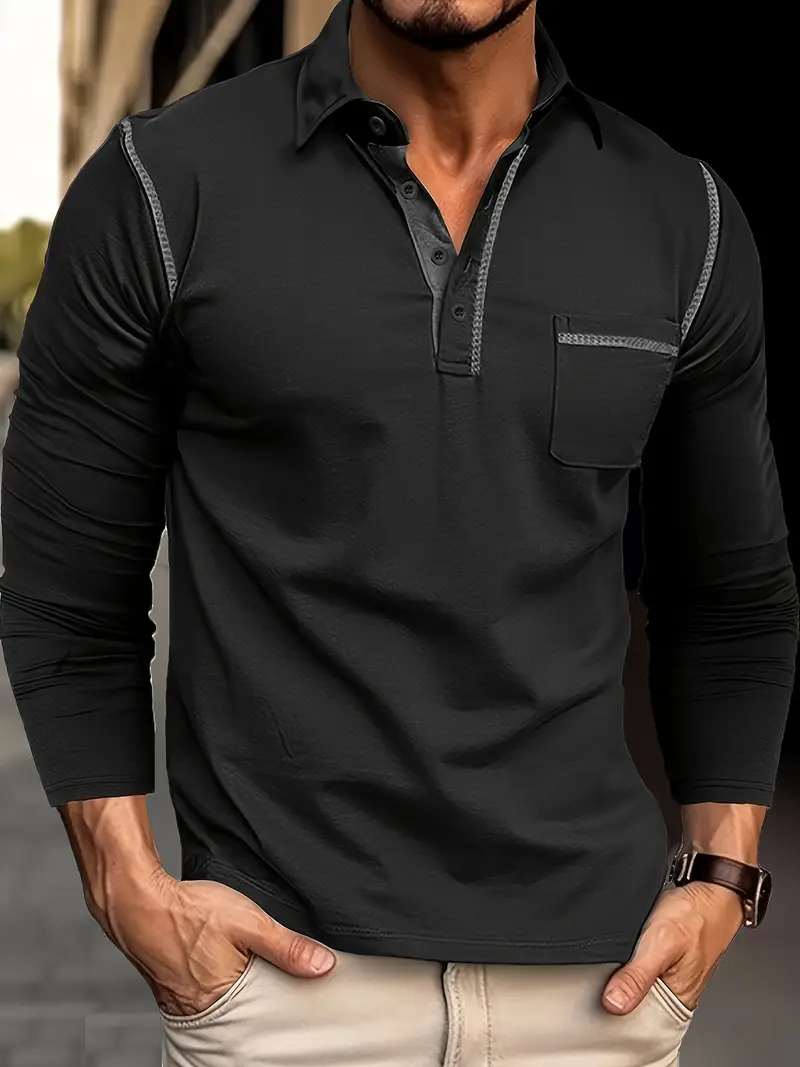 Erkaklar uchun Katta O'lchamli Uzun Qoltiq Henley Teshik, Ko'krak Cho'ntagi, Tugmachali Yengil Yengil Dizayn. Paxta-polister aralashmasidan yasalgan engil to'qima mato. Har kuni kiyish uchun tasodifiy.