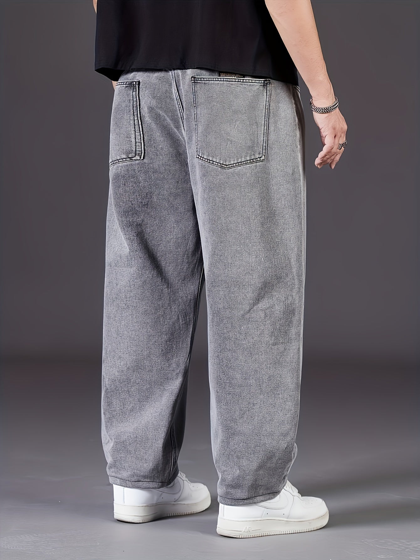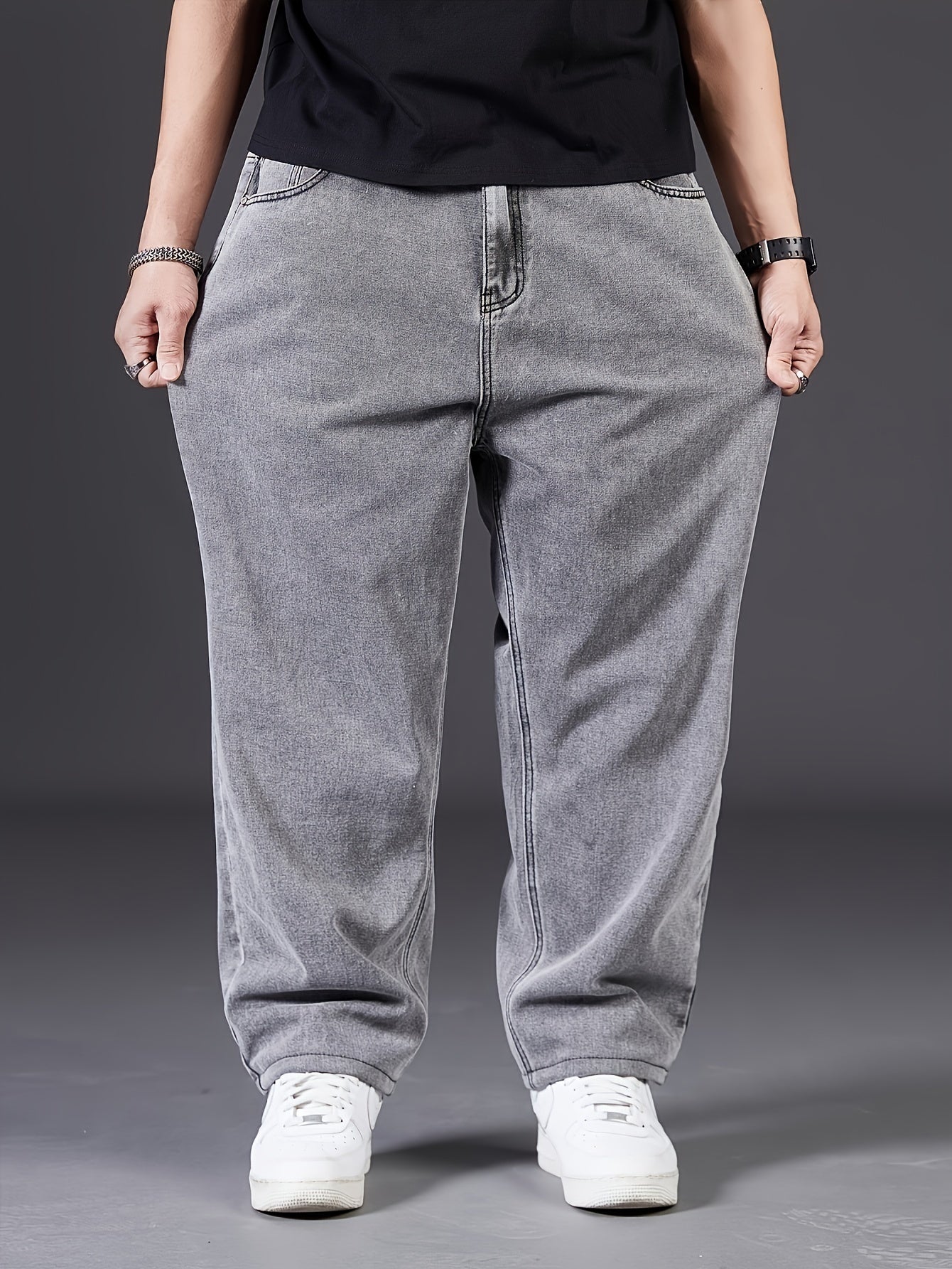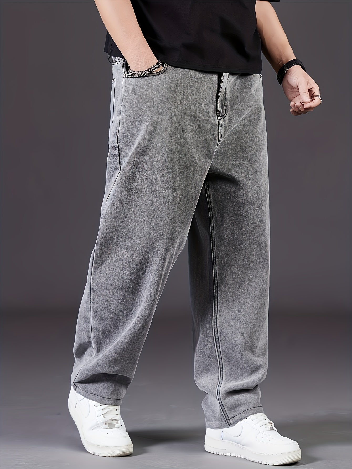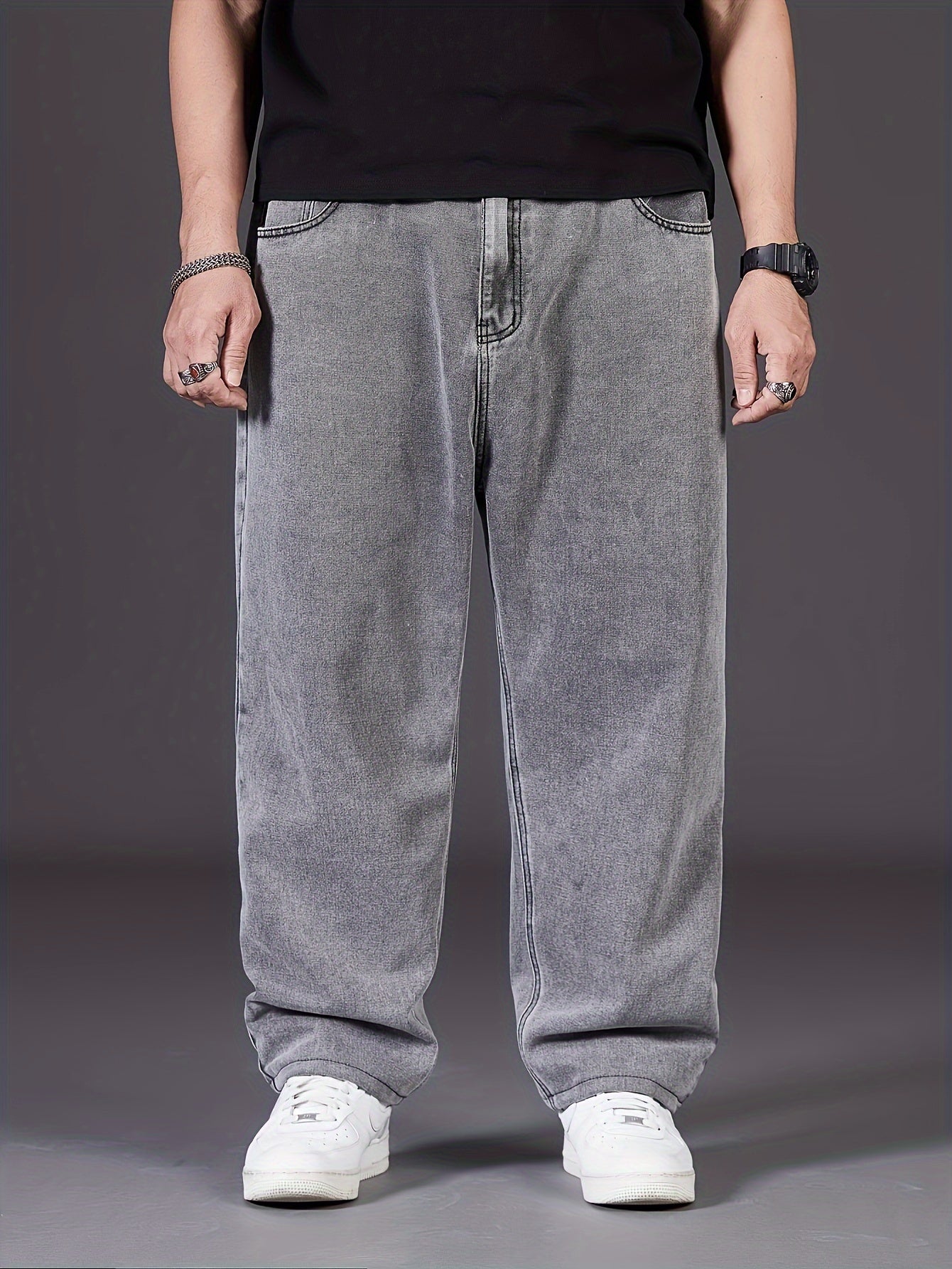 Erkaklar uchun plussiz to'g'ri oyoq jinsilari, yuvilgan detali bilan, keng kesim, cho'zilmaydigan paxta aralashmasi mato. Bahor/kovak mavsumi uchun mos. UserDefaults#TD9904.