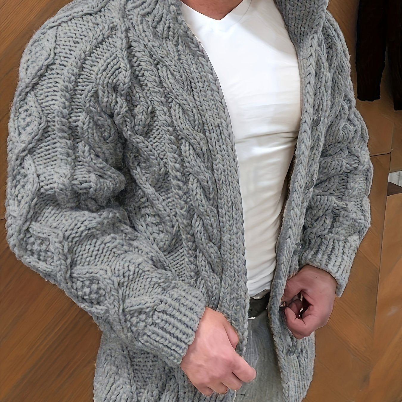 Erkaklar uchun plussiz viscose kardigan, to'g'ri bo'yinli, qattiq rangda, kuz/qish mavsumi uchun o'rtacha cho'ziladigan mato. 100% viscose uzun qo'lqonli sviter jakketi.
