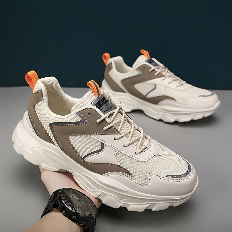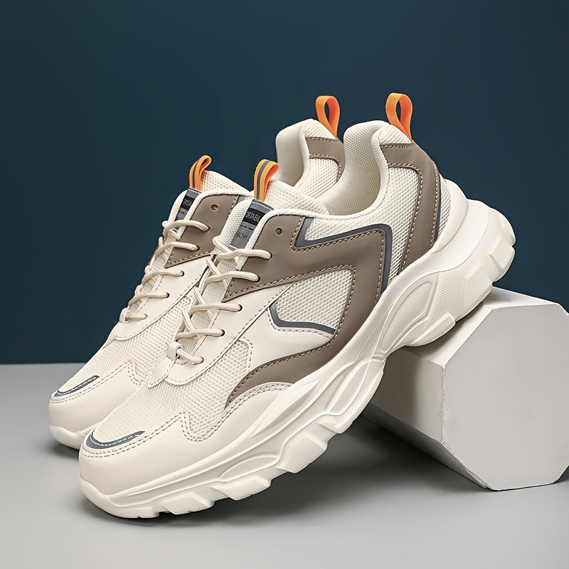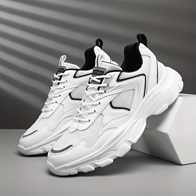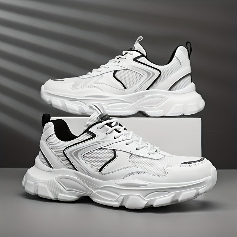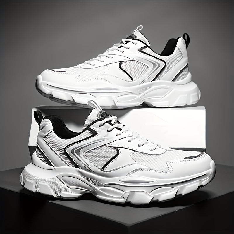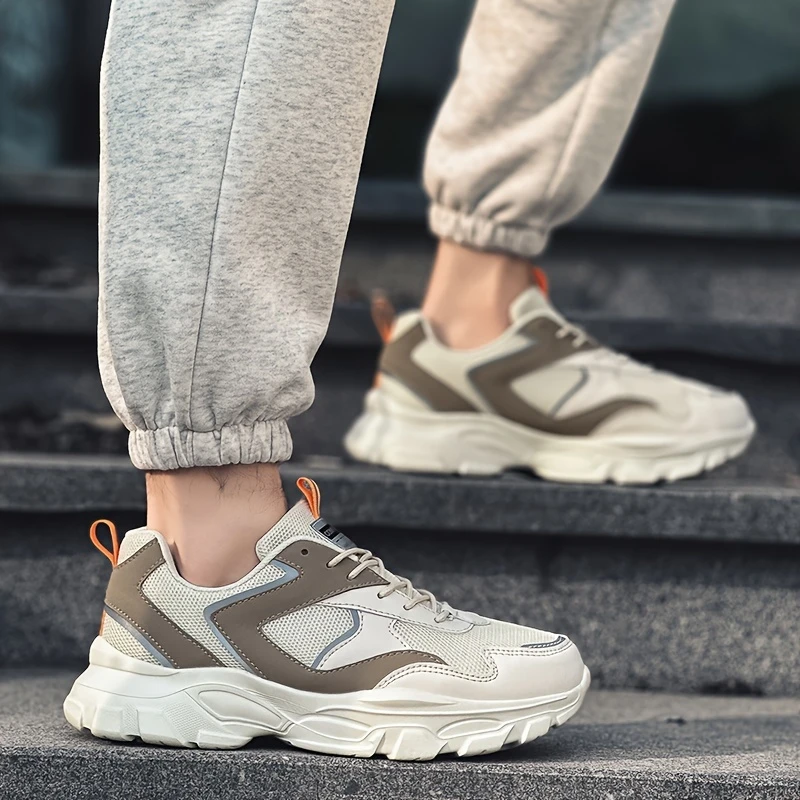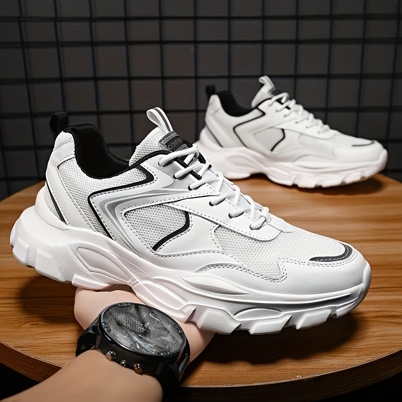 Erkaklar uchun prep stili sport krossovkalari, nafas oladigan to'r bilan, soxta pastki dizayn, bir rangda. Tasodifiy yugurish va mashg'ulotlar uchun ideal. Yuqori burchak, EVA taglik, mato ichki qismi va bog'ichli yopish bilan ajralib turadi.
