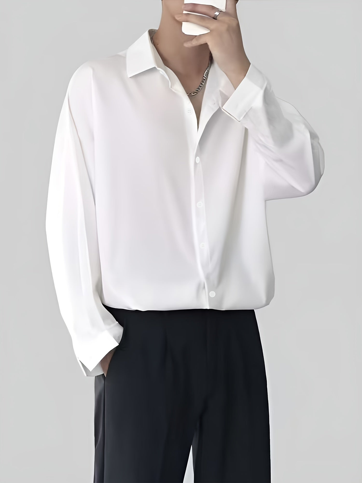 Erkaklar uchun professional bir rangli uzun qo'lqonli ko'ylak, biznes rasmiy va norasmiy kiyim uchun mos. Polyesterdan tayyorlangan, cho'zilmaydigan, yarim shaffof va yengil ko'ylak. Bahor/kovak ish kiyimlari uchun ideal.