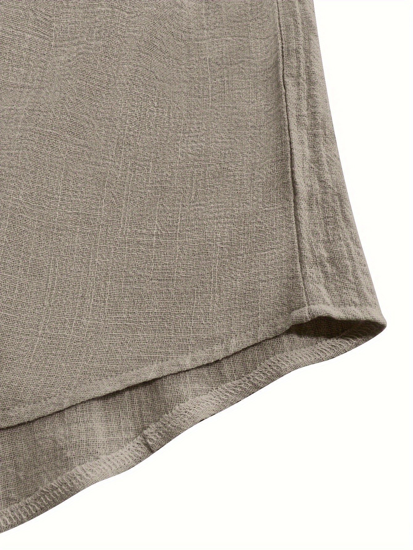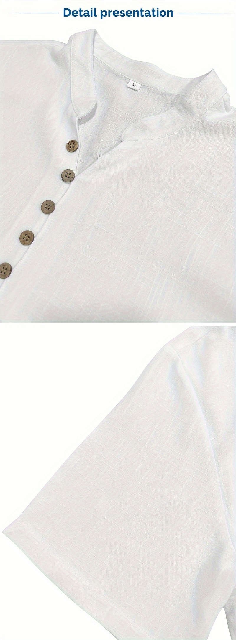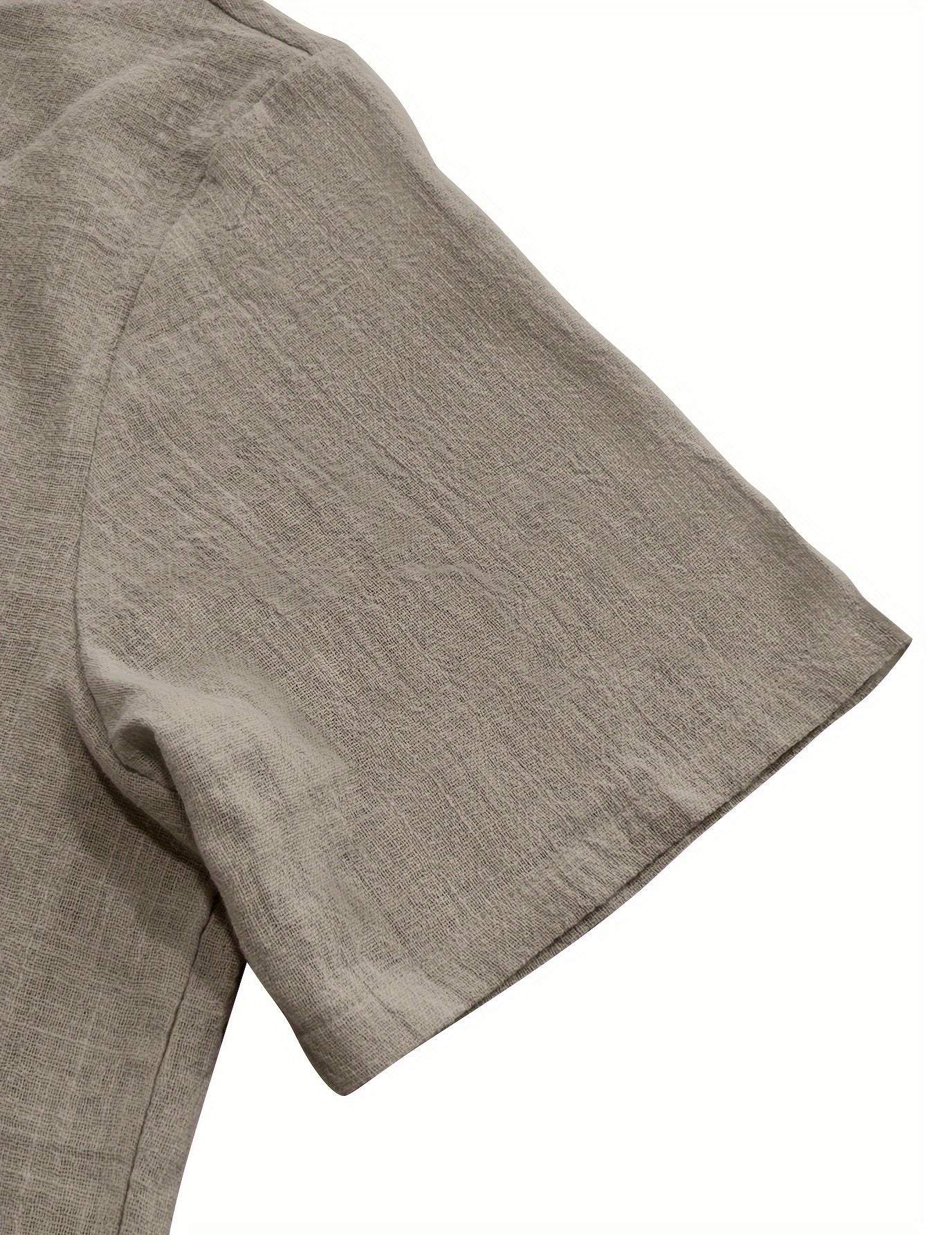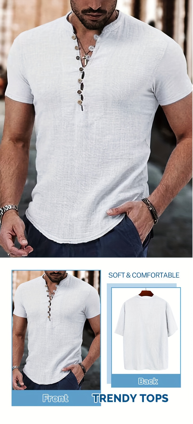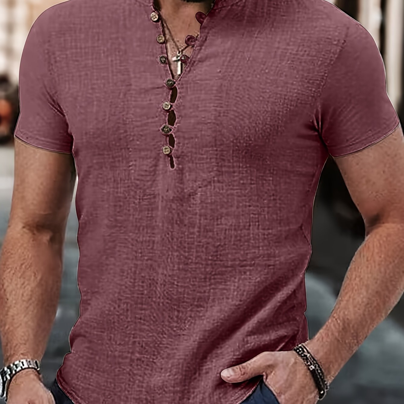 Erkaklar uchun qisqa yengli Henley bo'yinli futbolka, bir rangda, yozgi dam olish va ta'tillar uchun mukammal. Qulay va nafas oladigan materiallardan tayyorlangan.