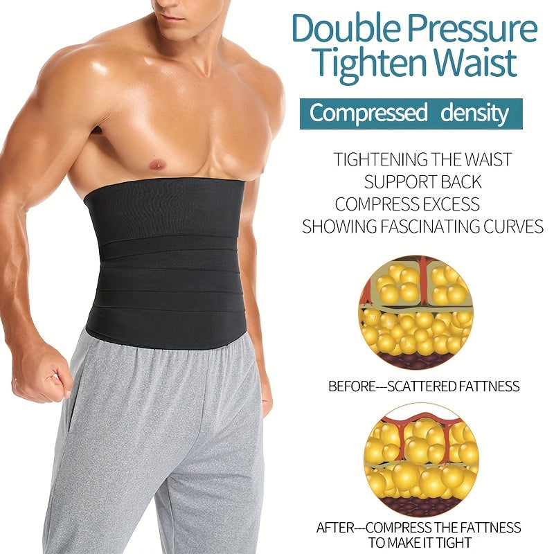 Erkaklar uchun qora rangdagi belni toraytiruvchi kəmar, qorin shakllantirish, orqa qo'llab-quvvatlash va ko'rinmas moslashuvni ta'minlaydi.