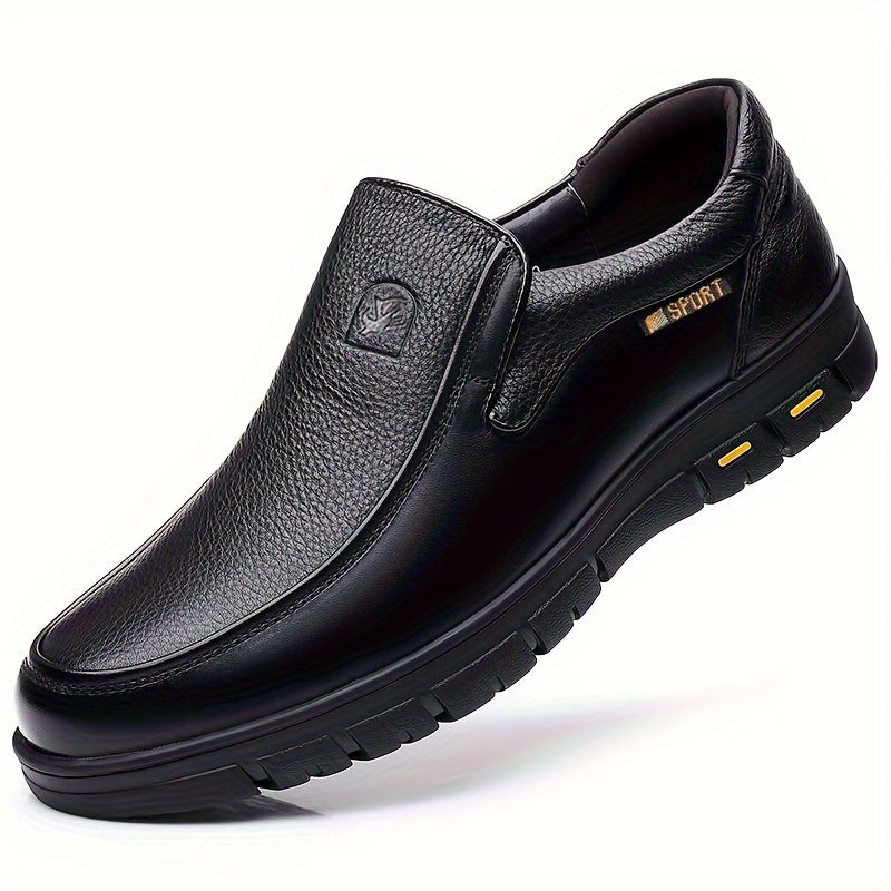Erkaklar uchun slip-on biznes tasodifiy poyabzallari bosh qatlamli teridan, PU astardan, kauchuk taglikdan va mato ichki taglikdan tayyorlangan.
