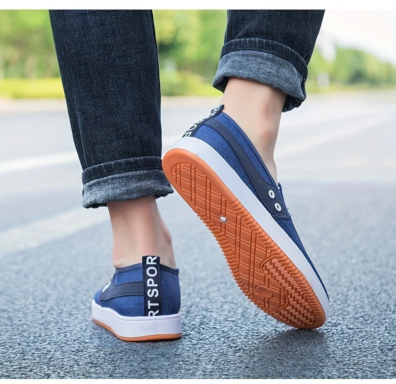 Erkaklar uchun oq ipli, sirg'almas kauchuk asosga ega, har mavsumda kundalik qulaylik uchun nafas oladigan dizaynga ega kanvas krossovkalar.