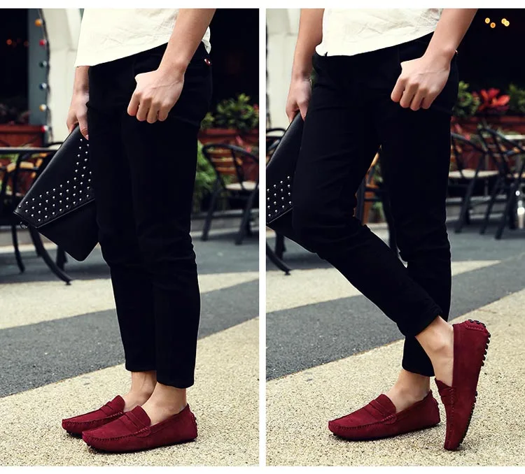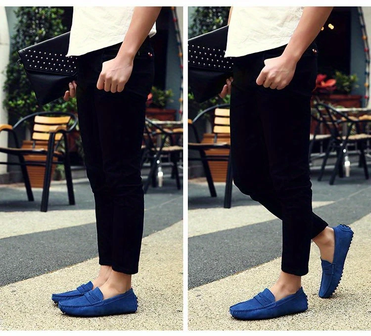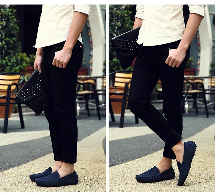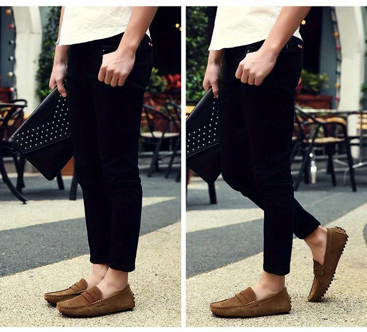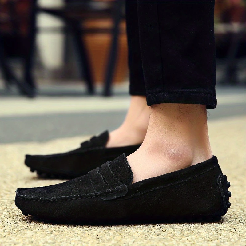 Erkaklar uchun tasodifiy britaniya uslubidagi slip-on loafers, yengil yuqori qismi va qora kauchuk tagligi bilan, haydash va tasodifiy kiyimlar uchun qulaylik.