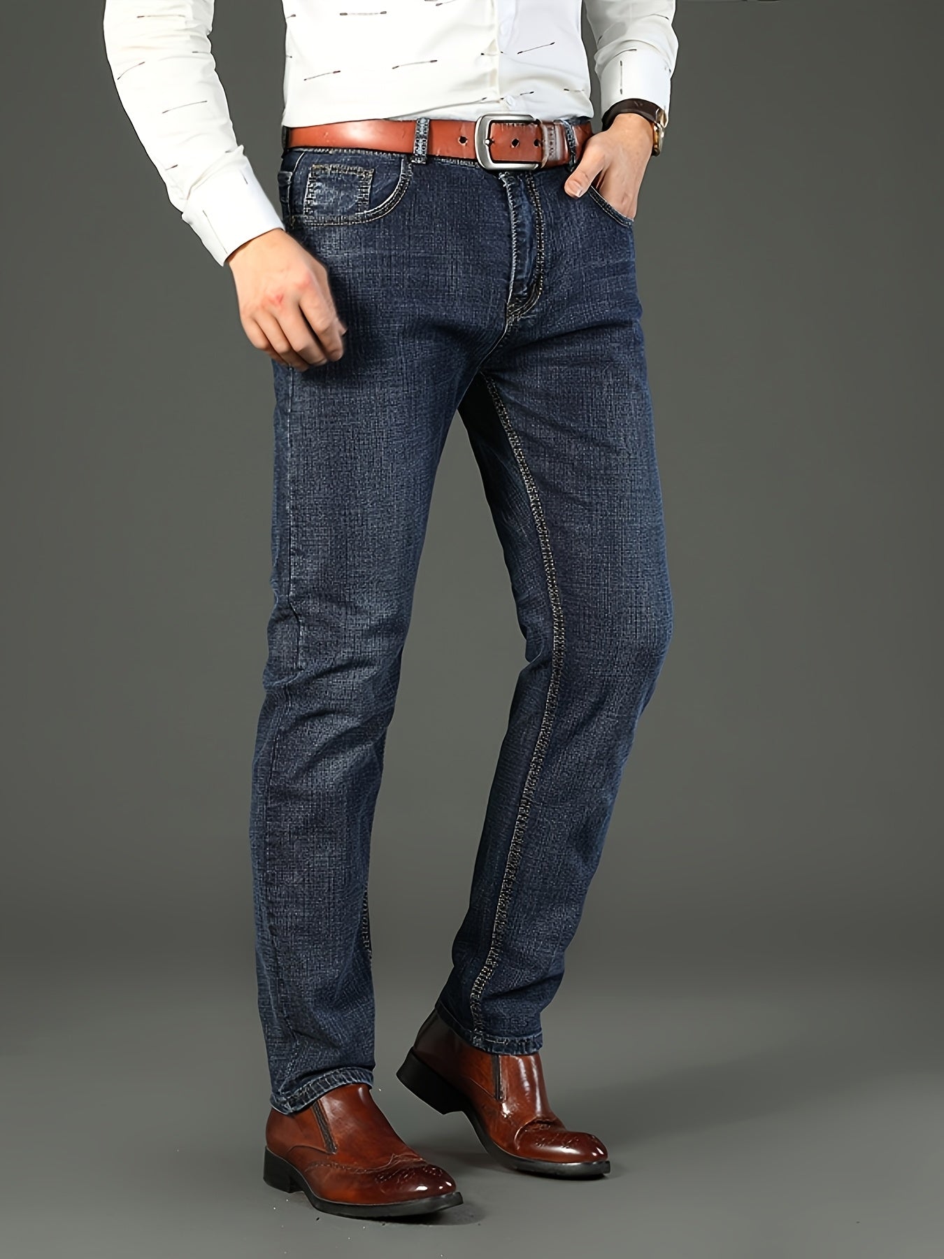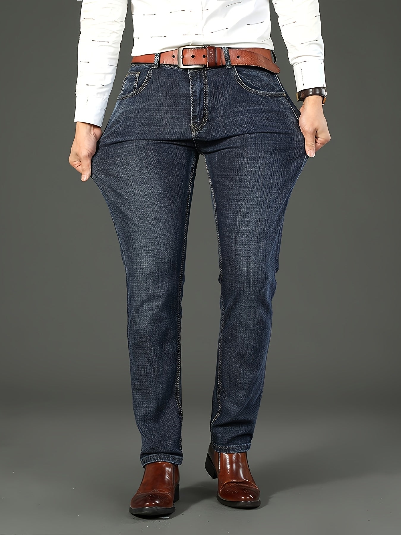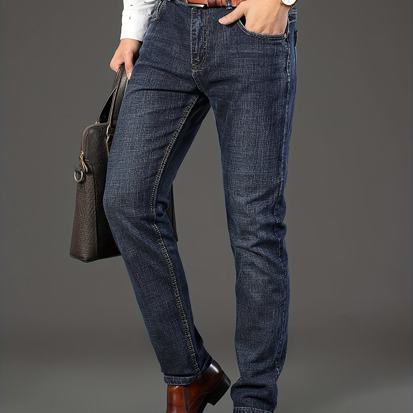 Erkaklar uchun bir xil rangdagi paxta aralash jinsilar, oddiy kesim, biroz cho'ziluvchan va to'qilgan mato, kuz/qish mavsumi uchun mukammal, katta o'lchamda.