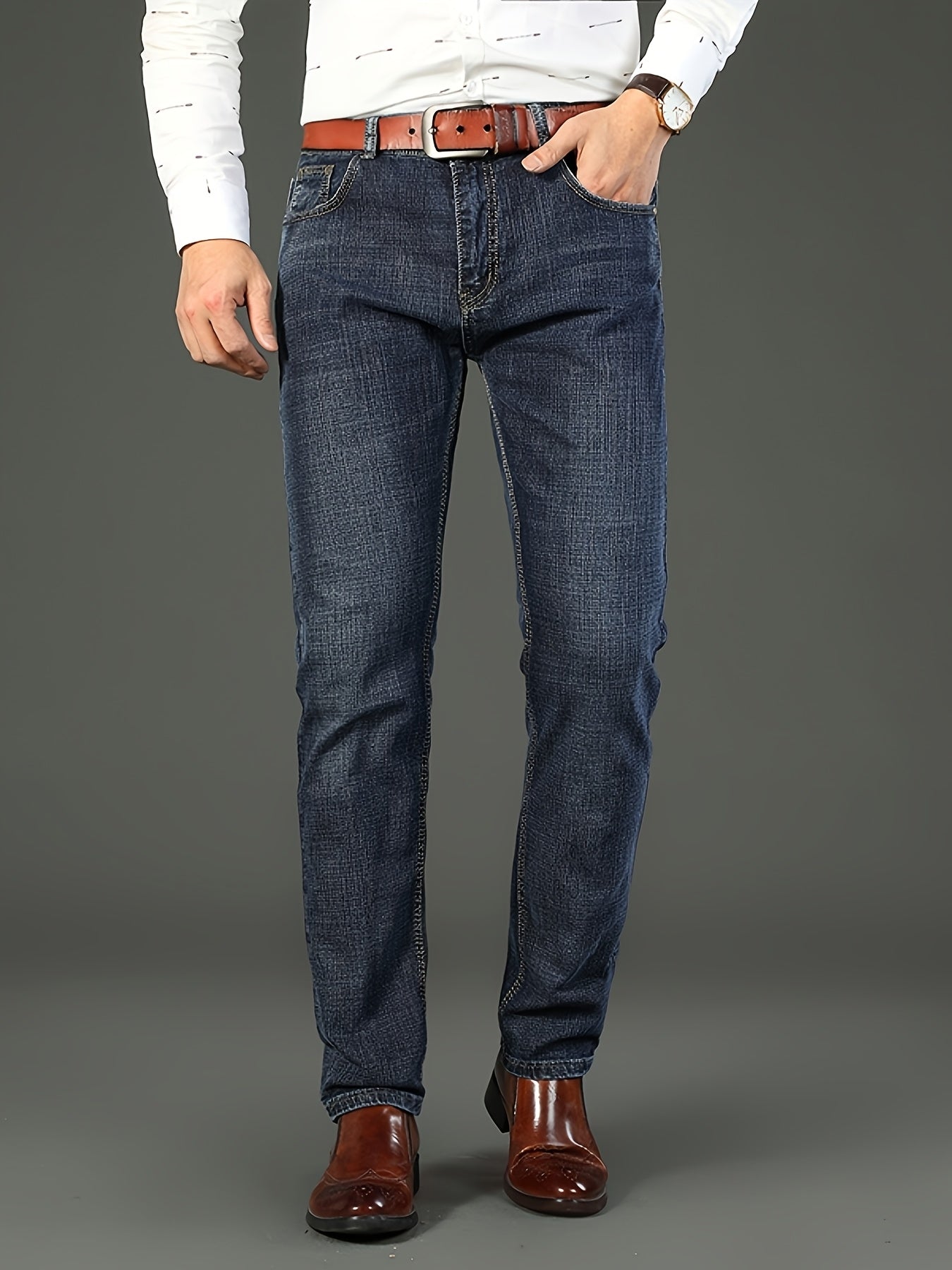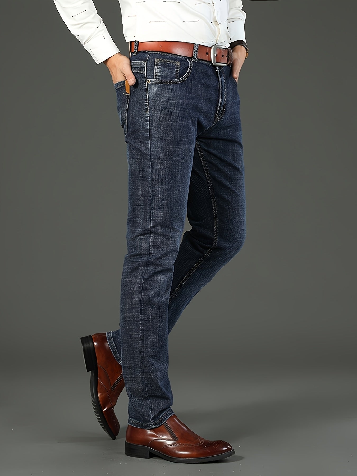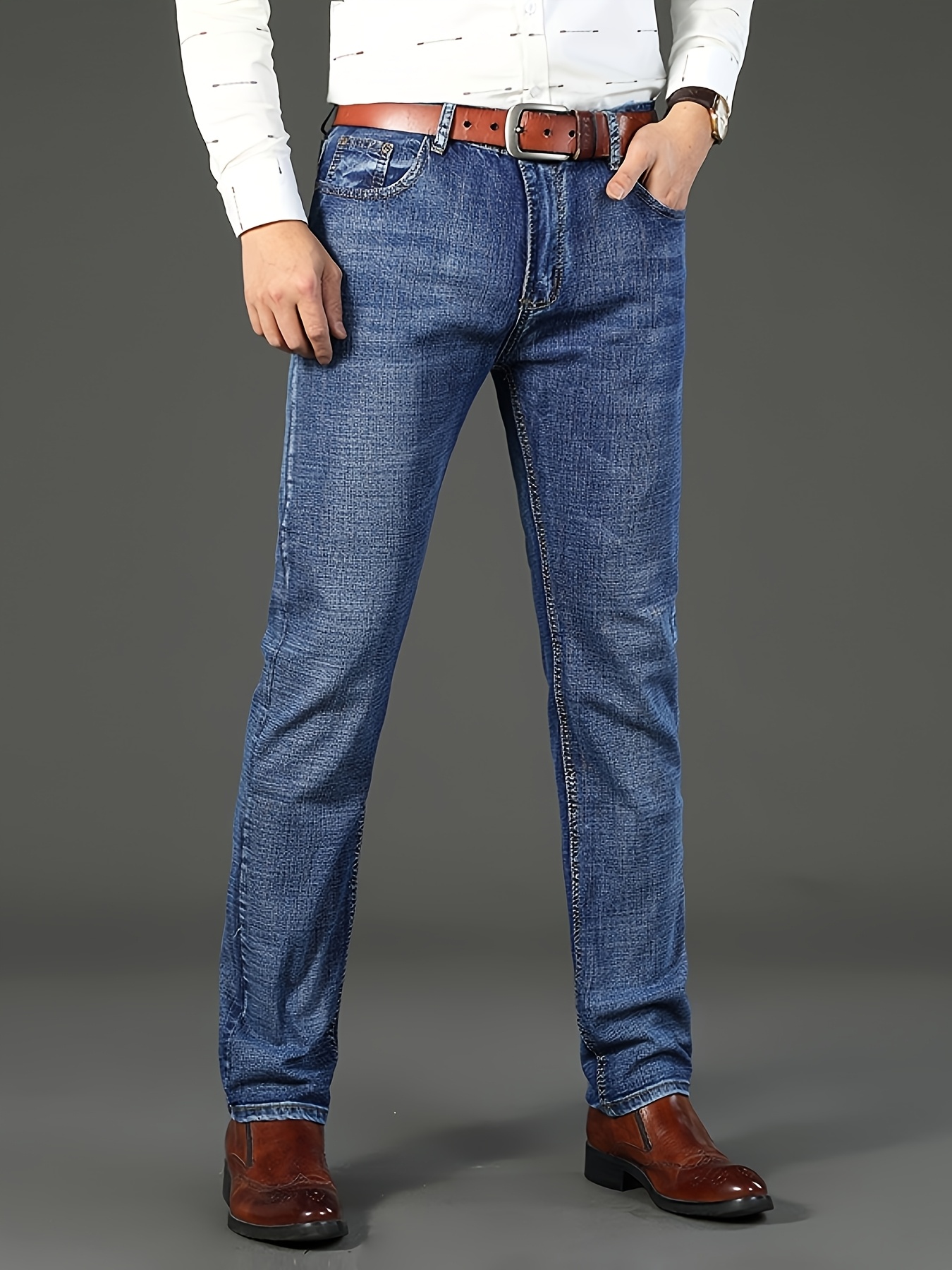 Erkaklar uchun bir xil rangdagi paxta aralash jinsilar, oddiy kesim, biroz cho'ziluvchan va to'qilgan mato, kuz/qish mavsumi uchun mukammal, katta o'lchamda.