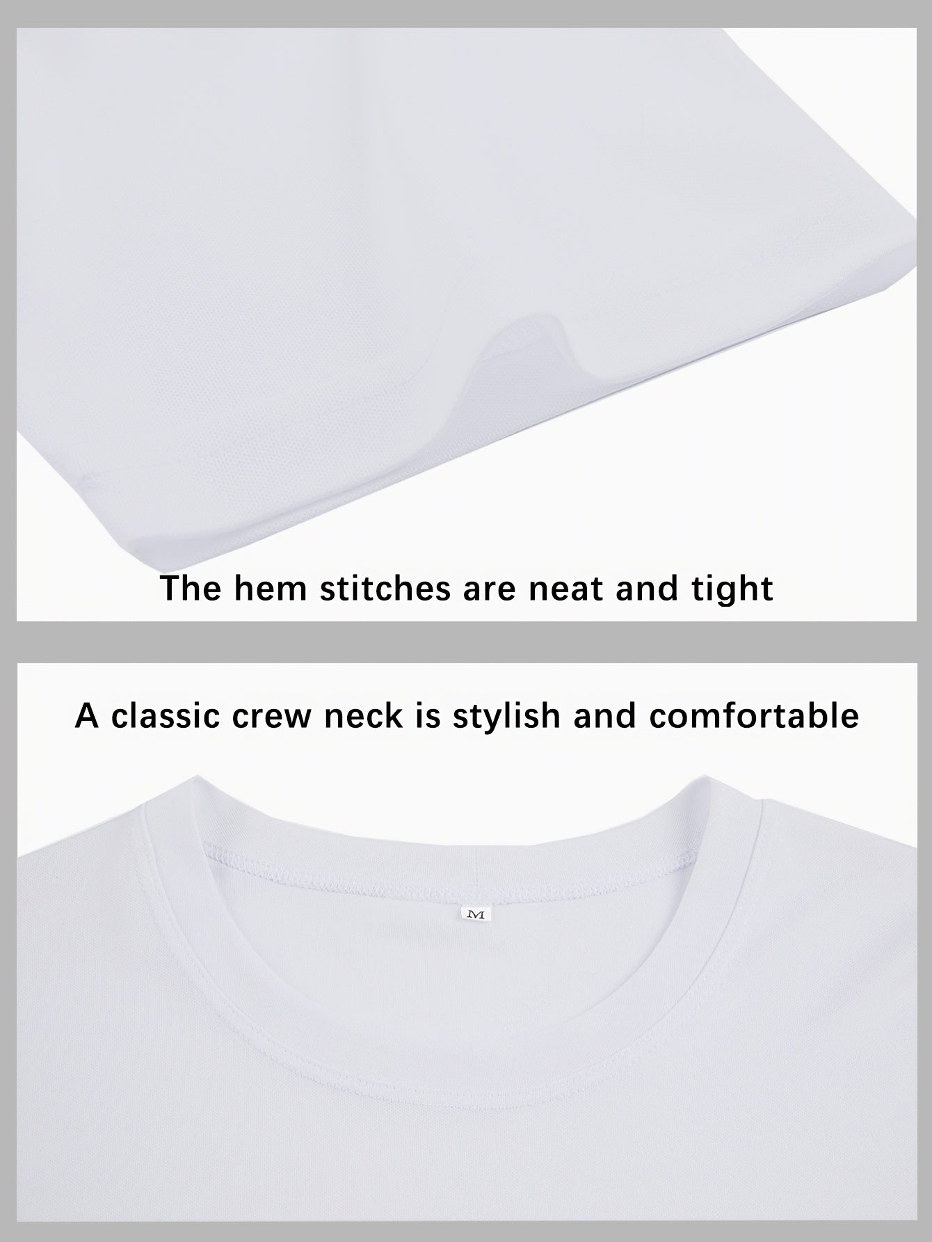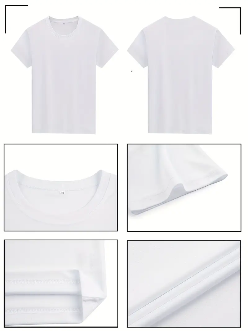 Erkaklar uchun bir rangli, yumshoq bo'yinli, qisqa yengli polyester futbolka, sport, gimnastika mashg'ulotlari va kundalik tasodifiy kiyim uchun mos. Tez quriydigan va ko'p maqsadli.