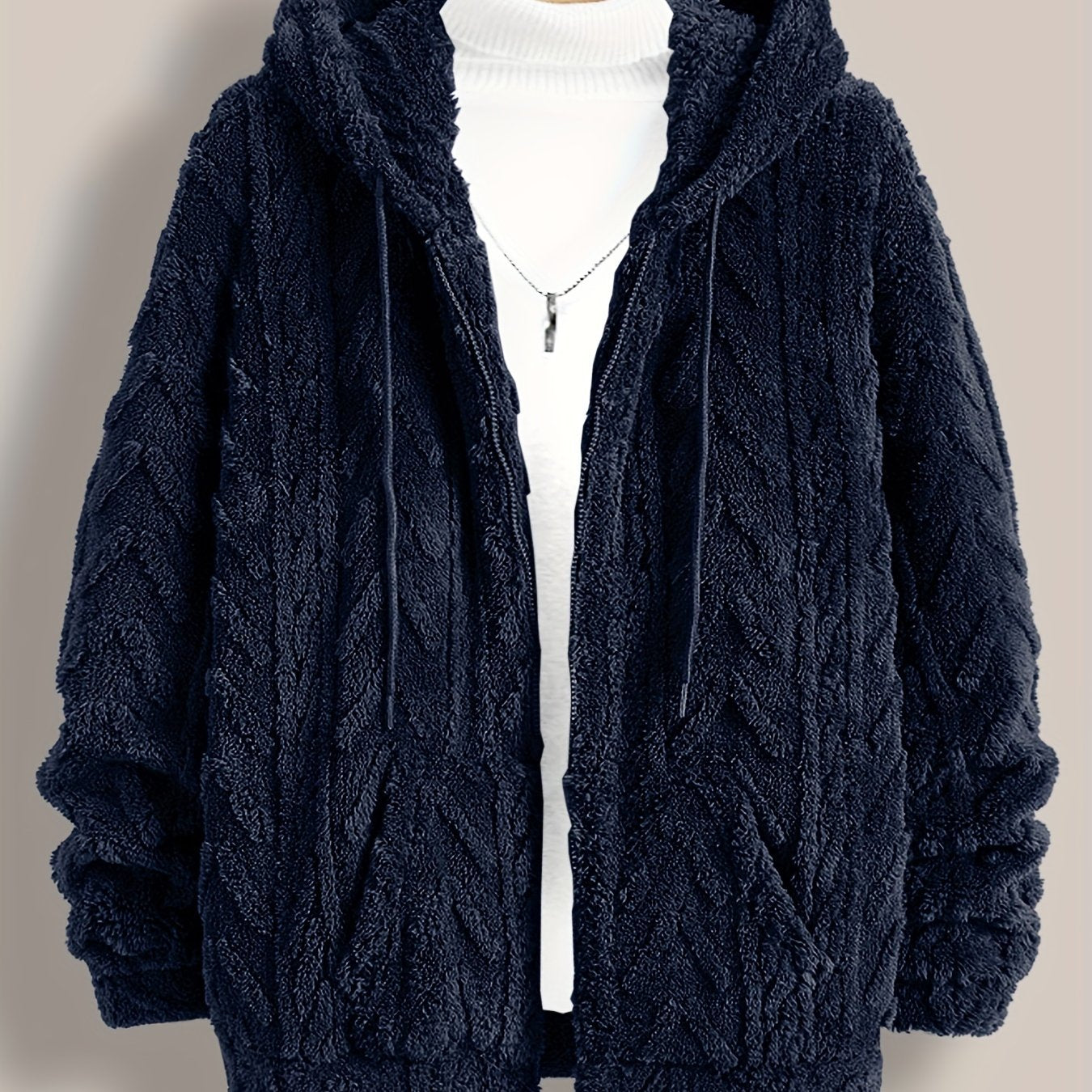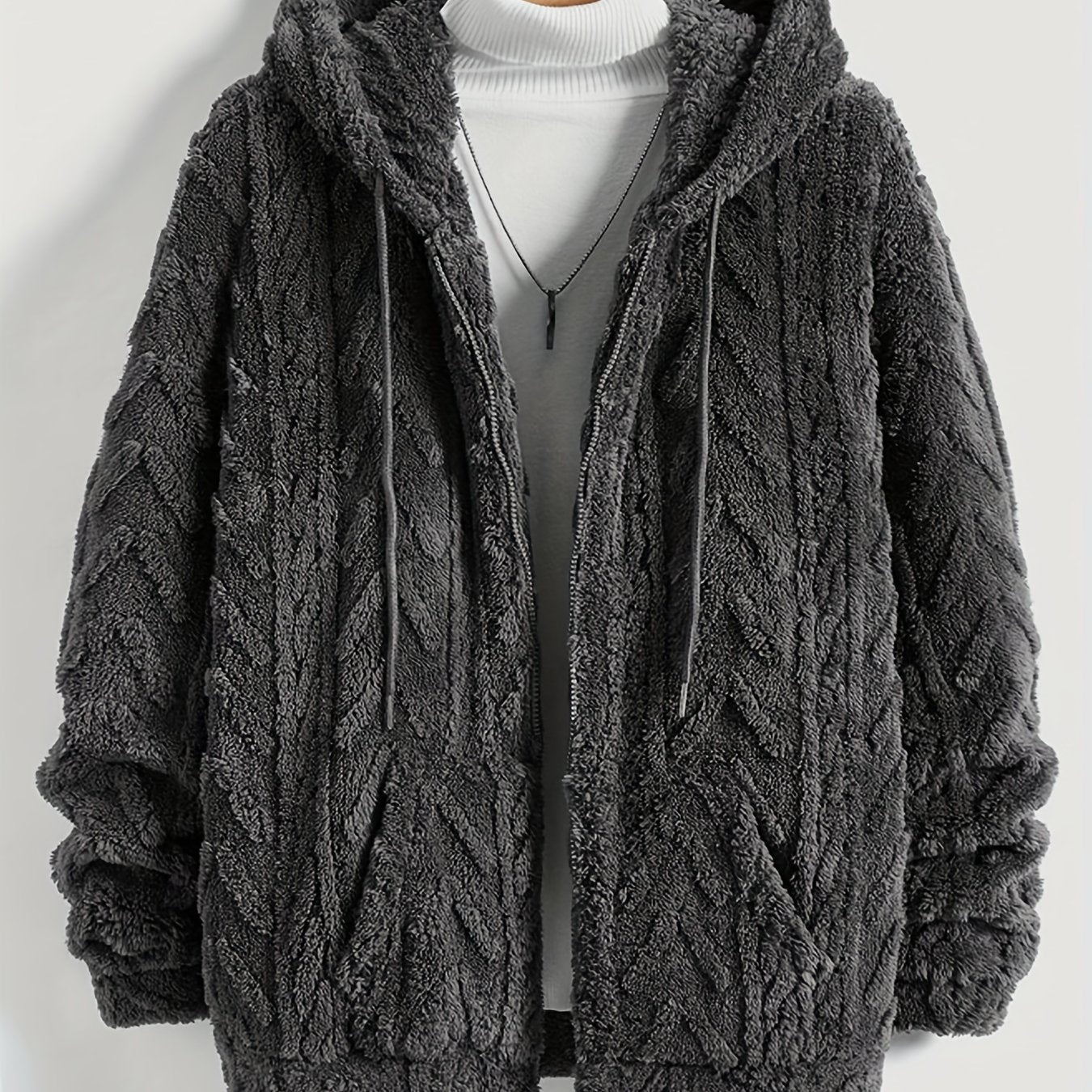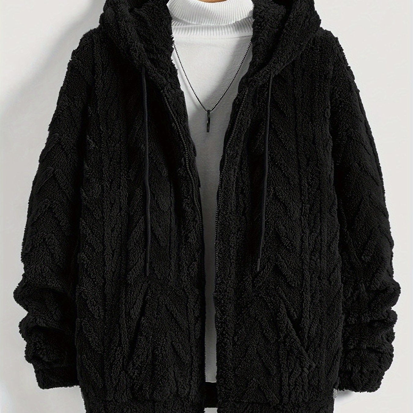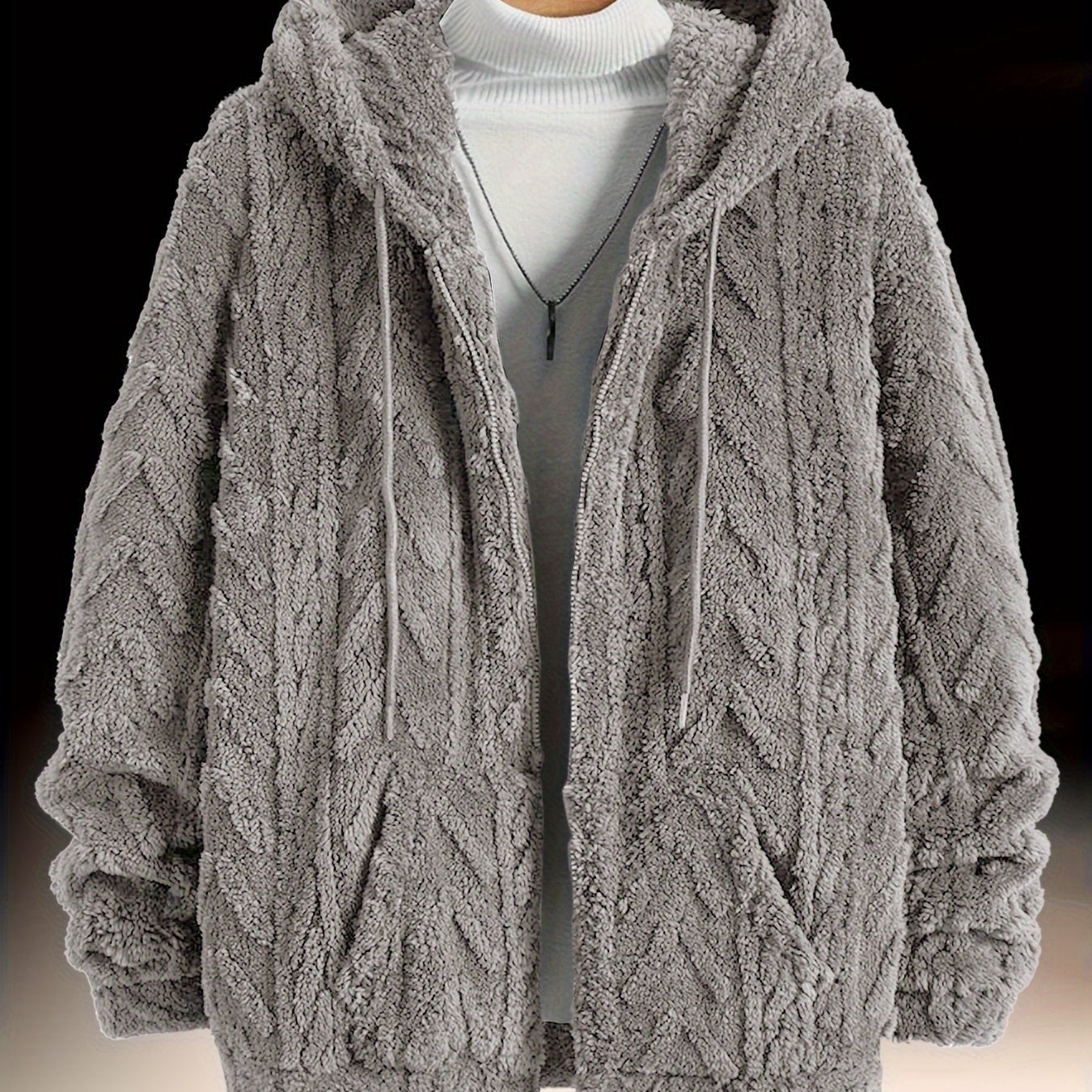 Erkaklar uchun bir rangli kapüşonli flis jaket, uzun qo'lqonlar bilan tortma fermuar, kuz va qish uchun iliq va zamonaviy kardigan, mukammal sovg'a.