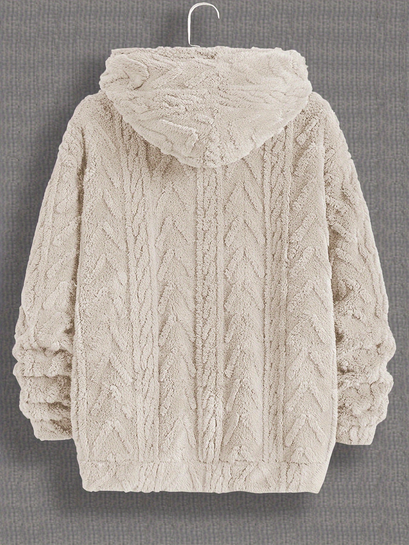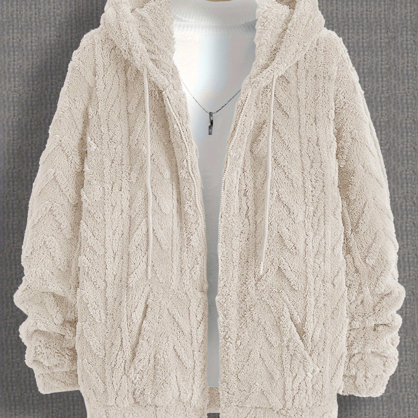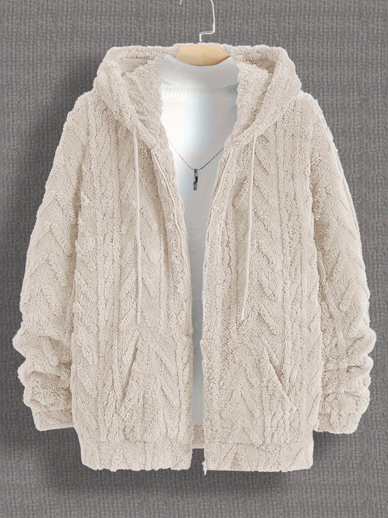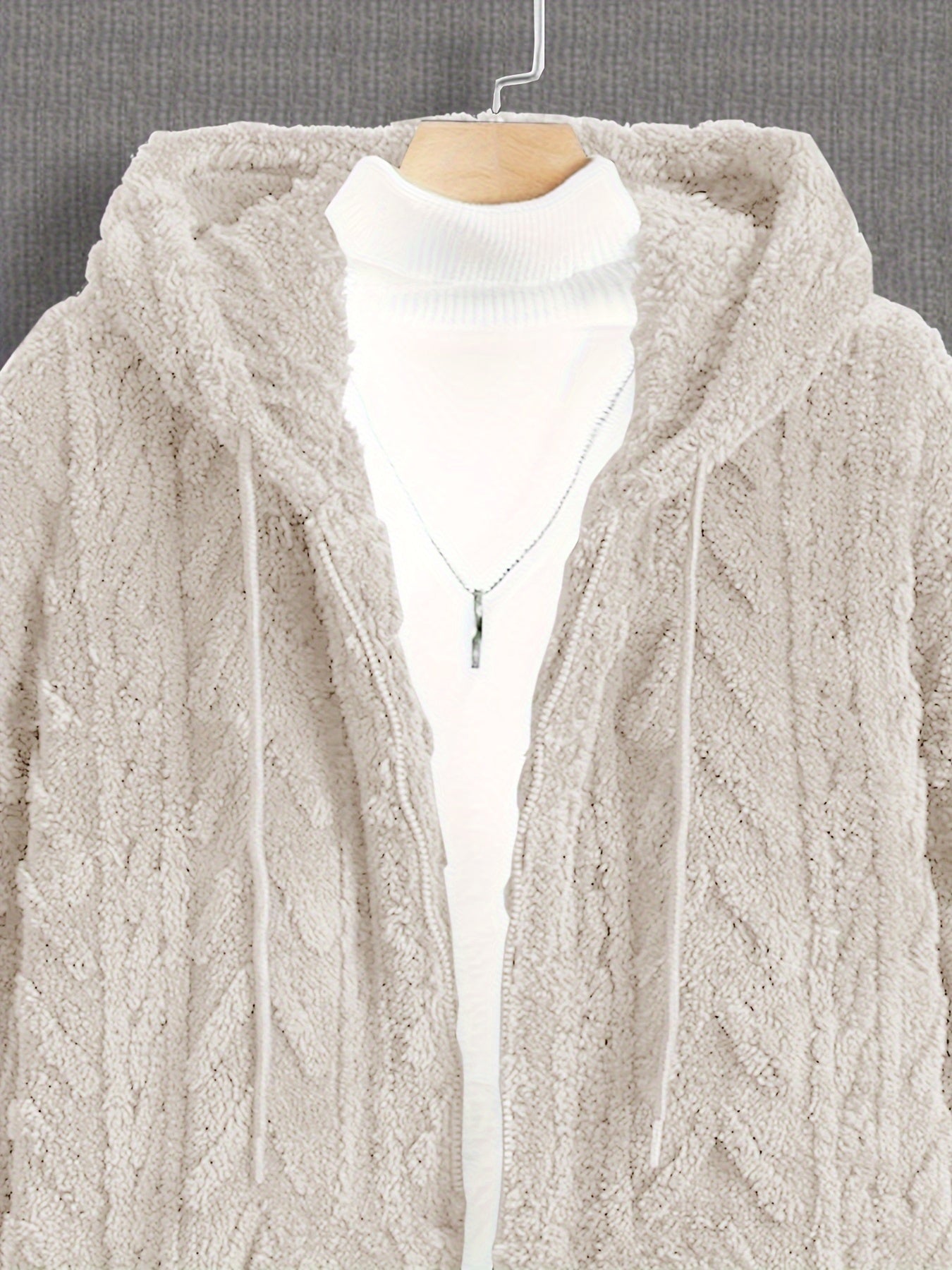 Erkaklar uchun bir rangli kapüşonli flis jaket, uzun qo'lqonlar bilan tortma fermuar, kuz va qish uchun iliq va zamonaviy kardigan, mukammal sovg'a.