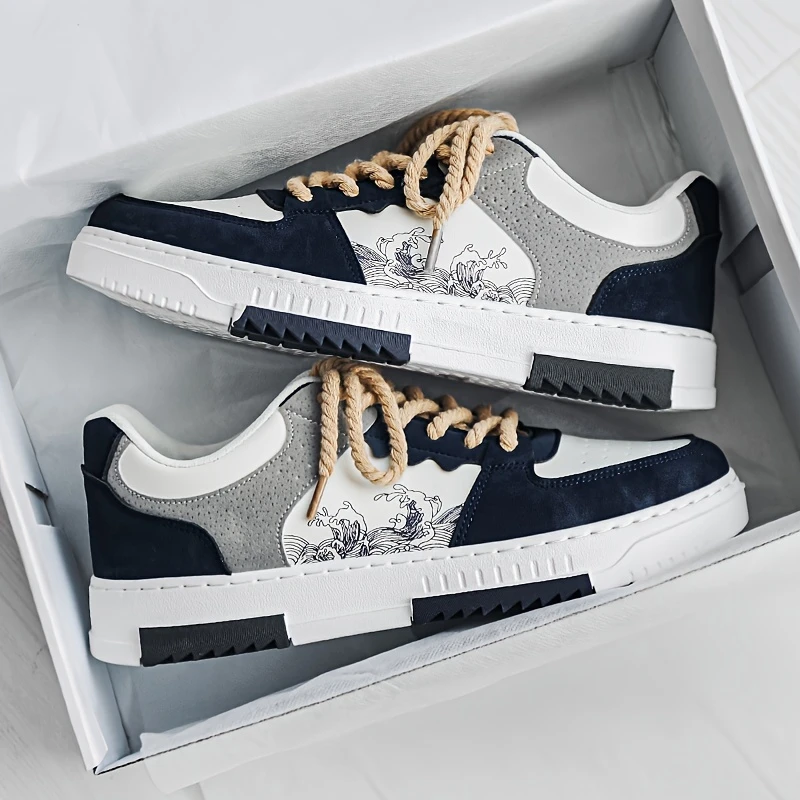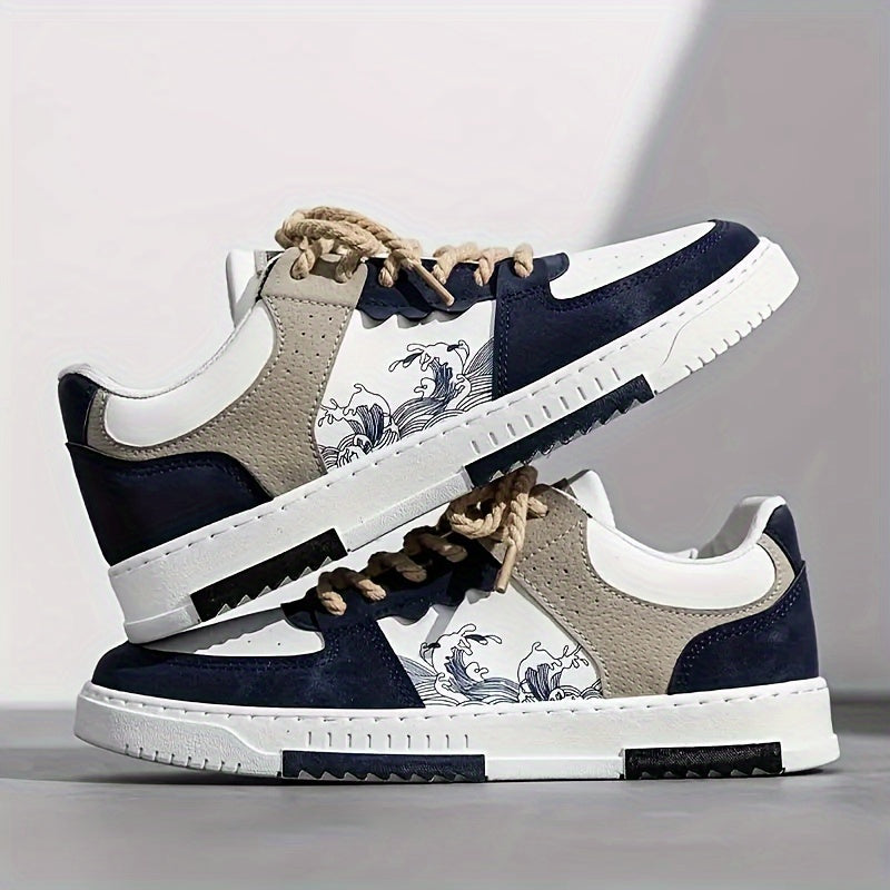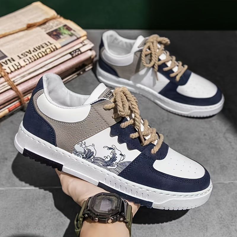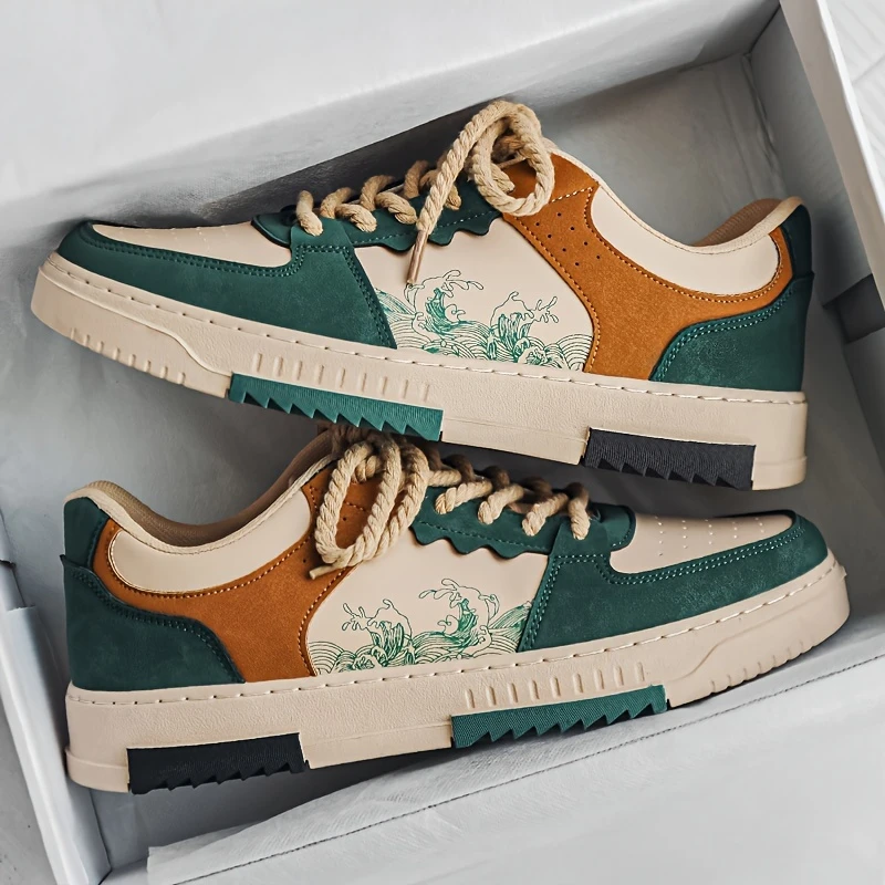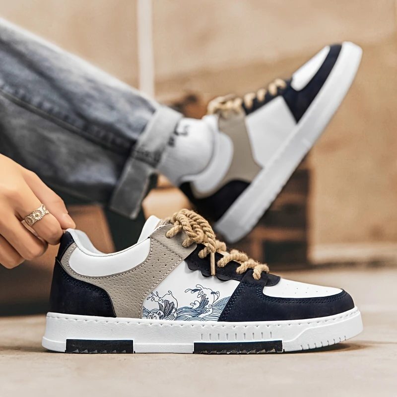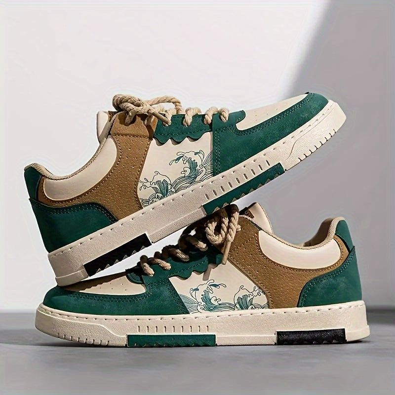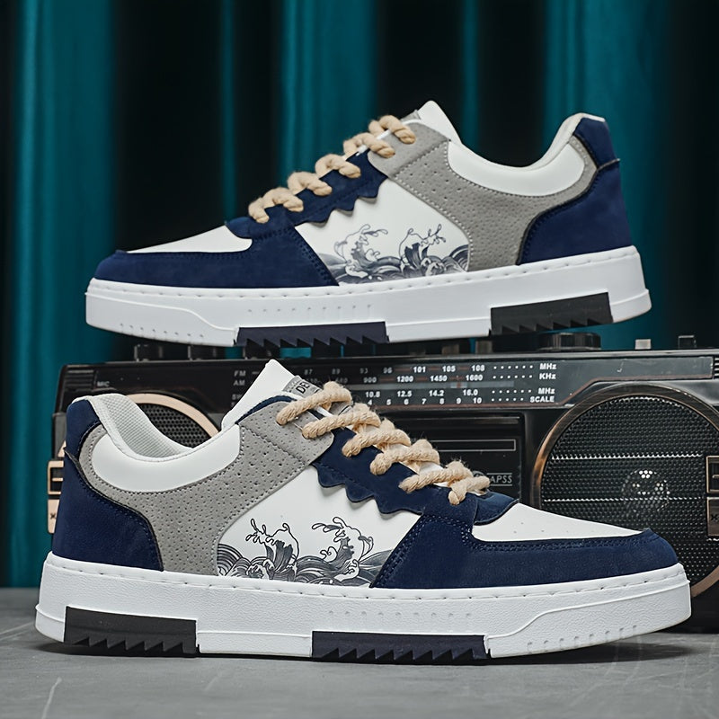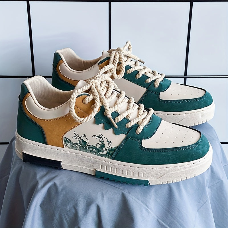 Erkaklar uchun ko'cha uslubidagi rangli blokli skeytbord poyabzallari, ochiq havoda faoliyatlar uchun anti-slip tasodifiy sport poyabzallari.