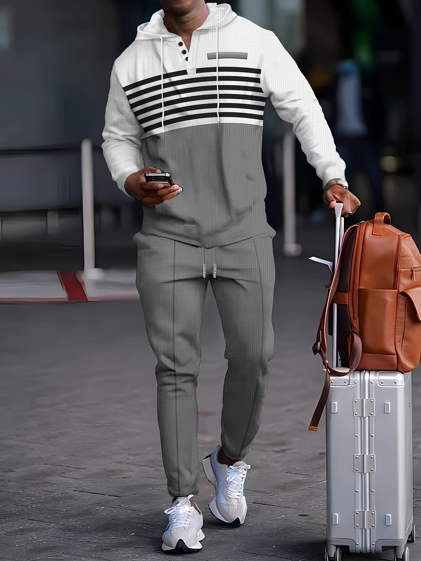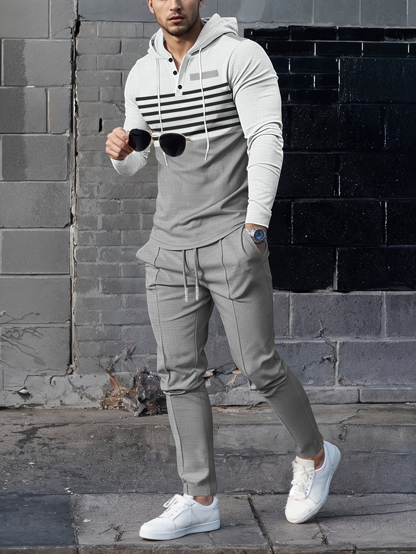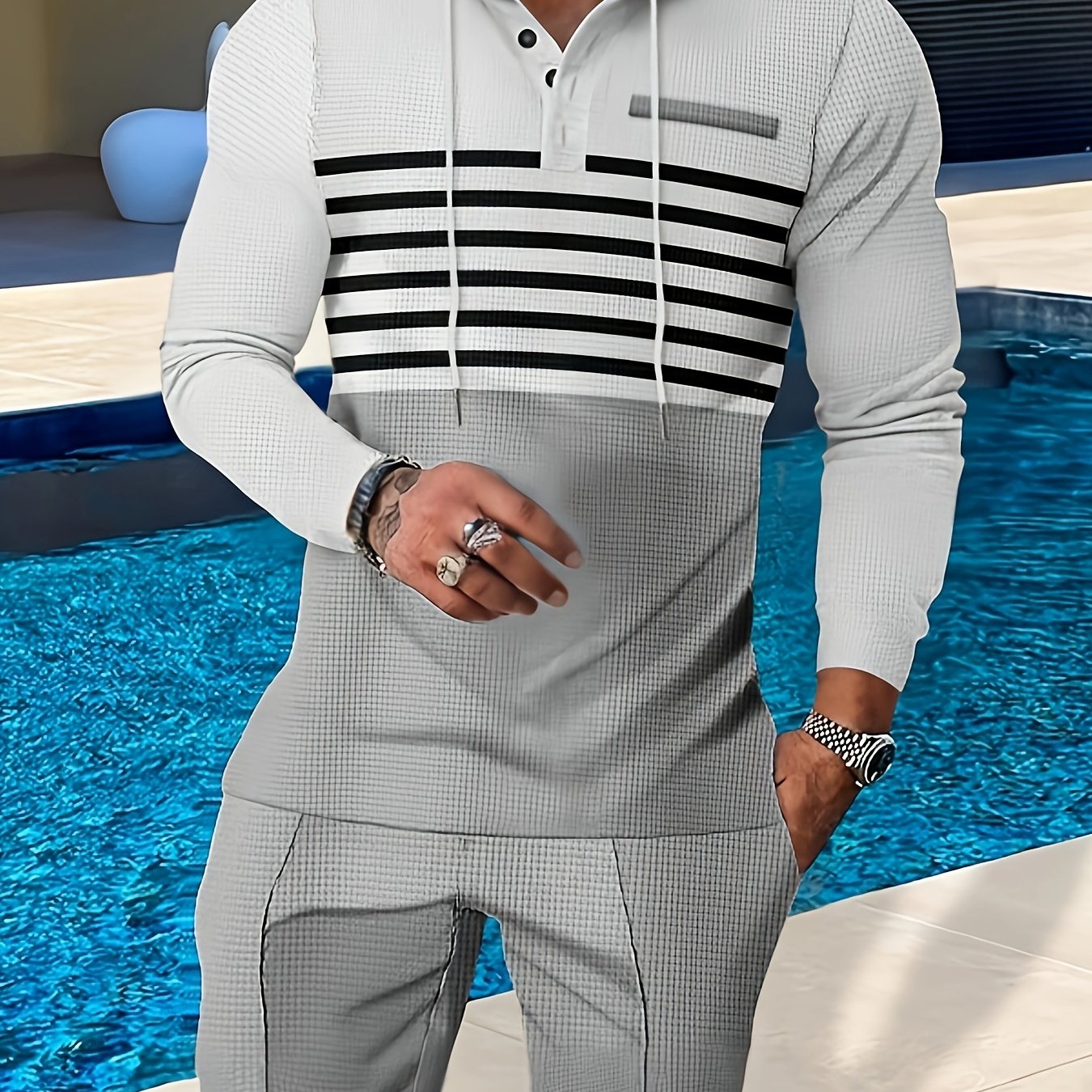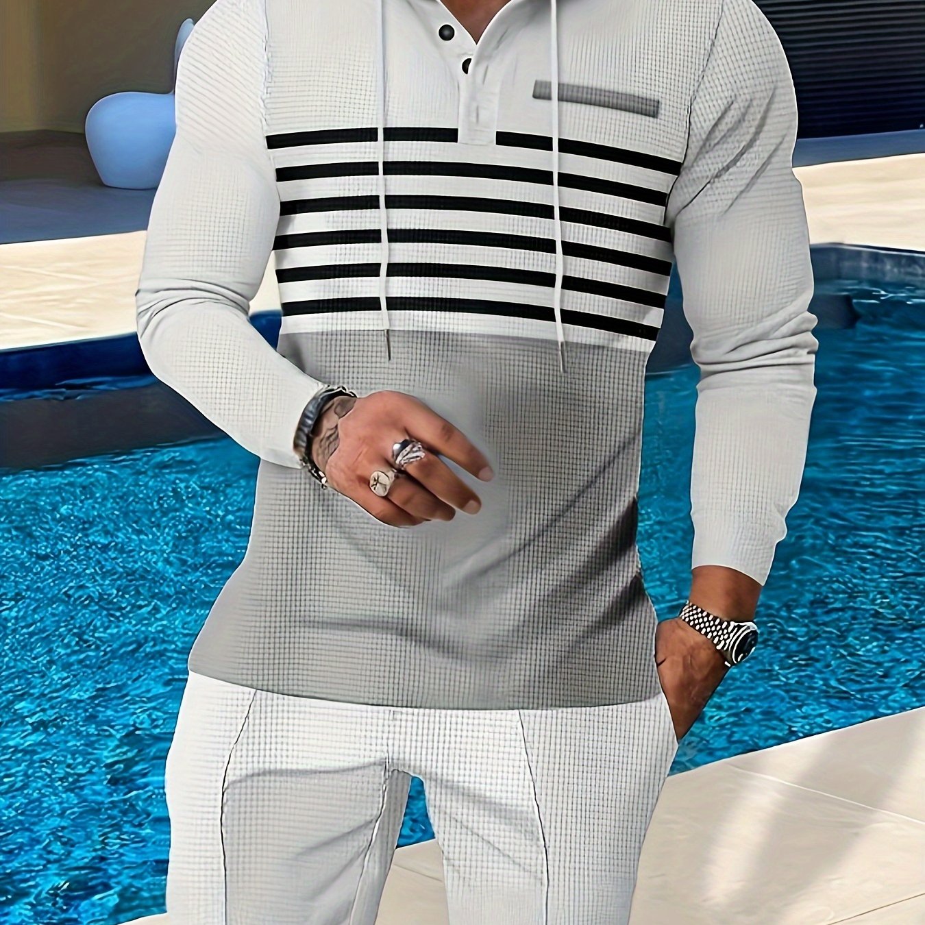 Erkaklar uchun chiziqli qarama-qarshi rangdagi uzun yengli kostyum, ochiq havoda sport uchun