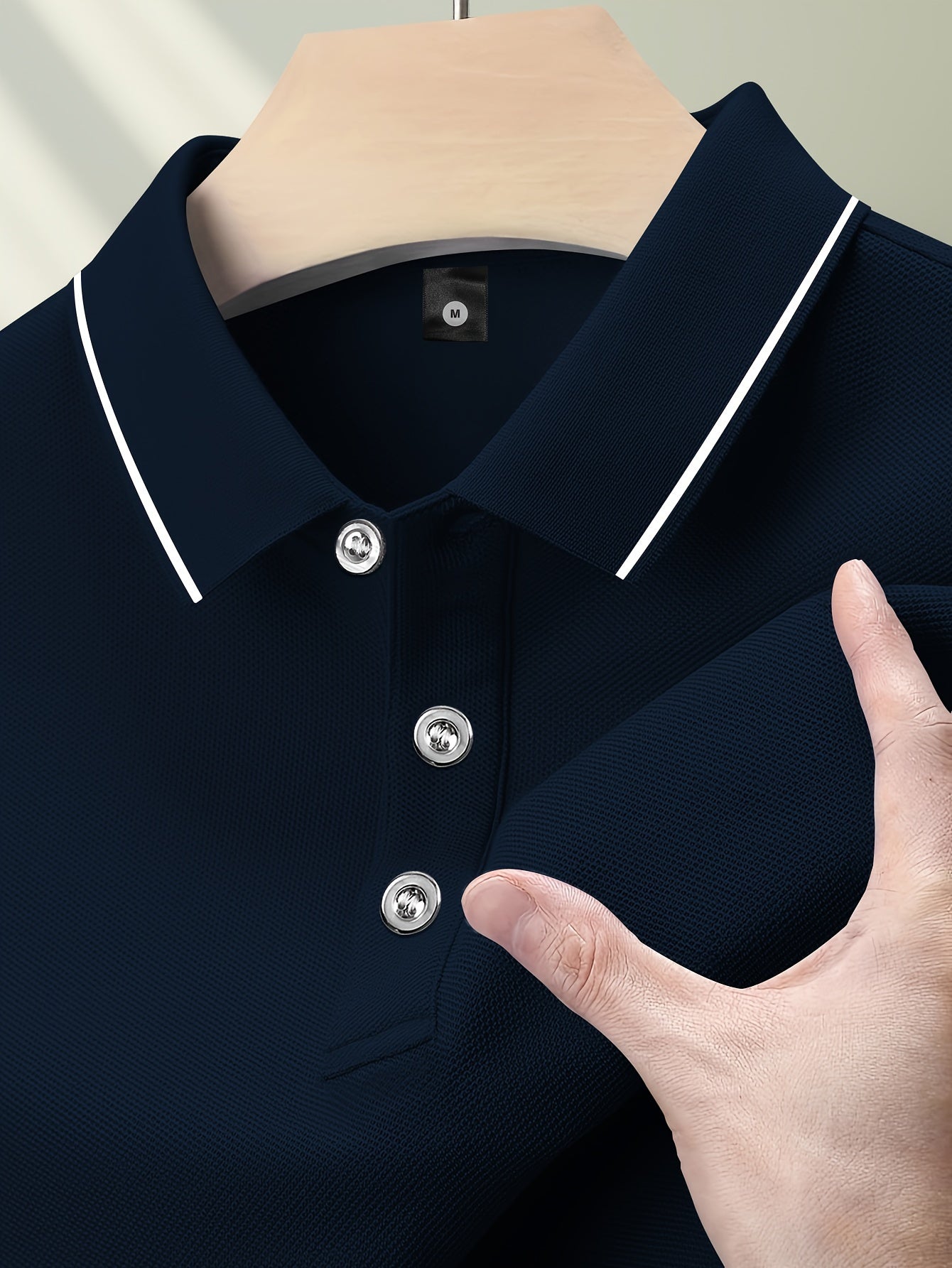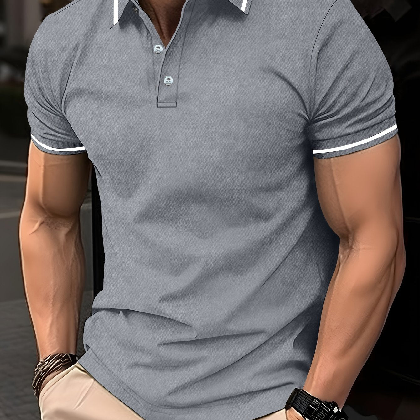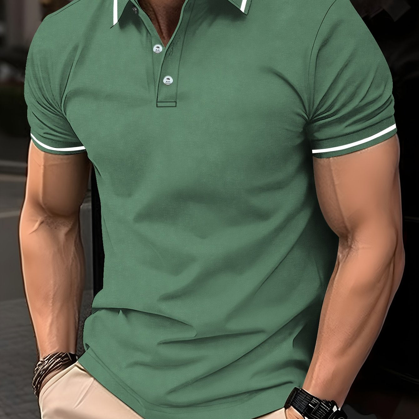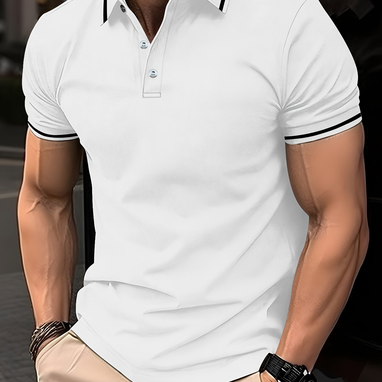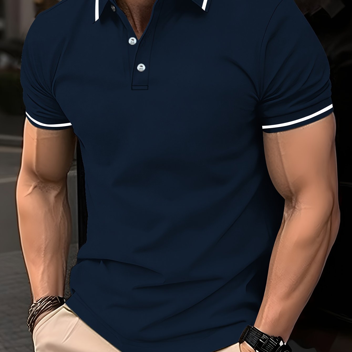 Erkaklar uchun chiziqli golf koftasi, yozgi ochiq havoda tasodifiy kiyim uchun qisqa yengli kofta.