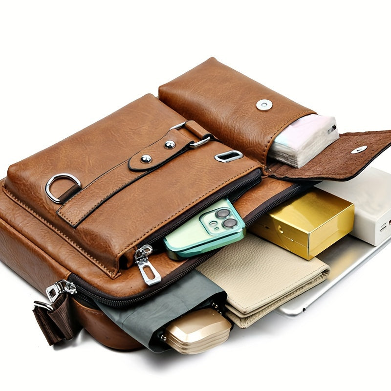 Erkaklar uchun zamonaviy portfel, katta sig'imli, sozlanadigan yelka tasmasi, fermuarli yopiq va yengil chidamlilik bilan kundalik ishga borish uchun qora, jigarrang, qoray jigarrang va och jigarrang ranglarda.