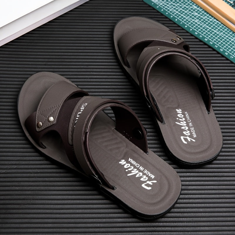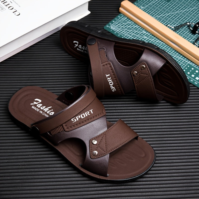 Erkaklar uchun yozgi moda sandallari bir rangli va grafik ko'cha uslubida. Tashqi plyaj va sayohat uchun sirpanmaydigan EVA taglikka ega bo'sh ochiq barmoqli oyoq kiyimlari. Yumshoq klassik biznes ko'rinishi.