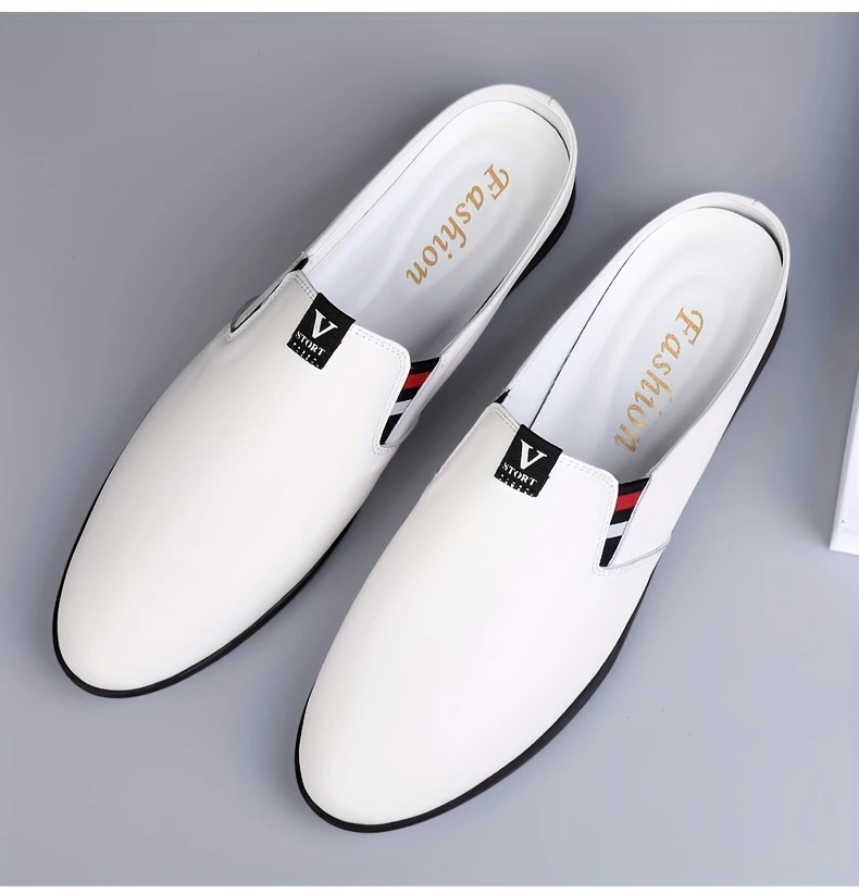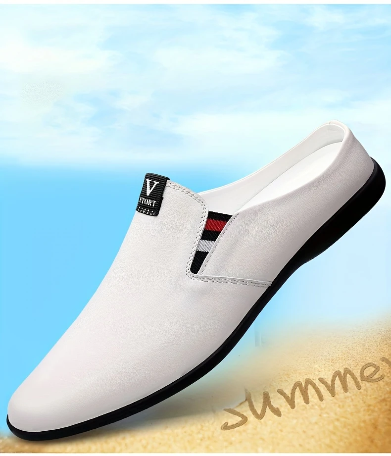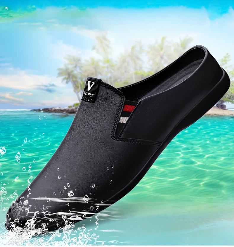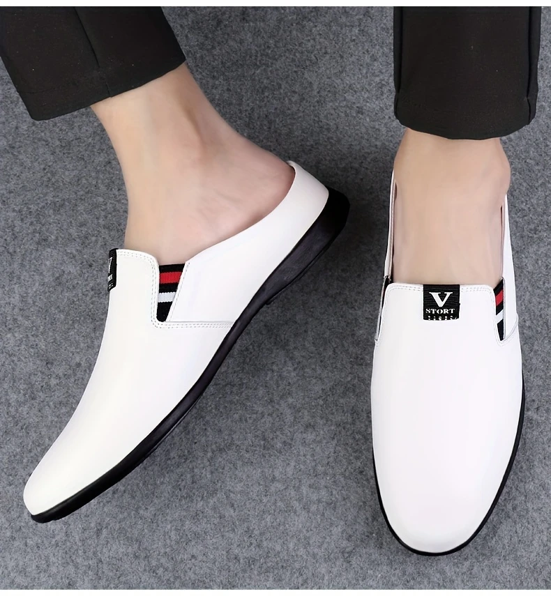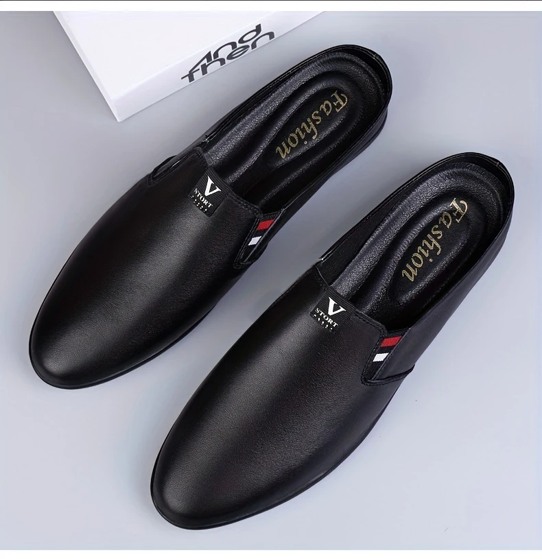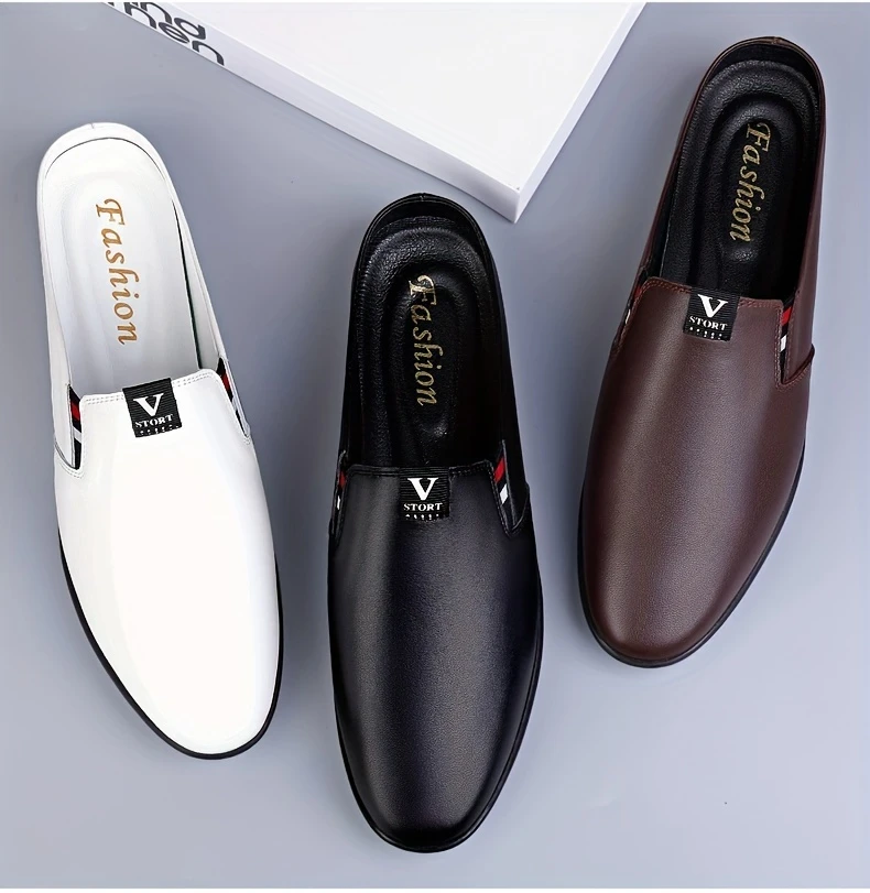 Erkaklar uchun yozgi slip-on mules, nafas oladigan bo'lak teridan yuqori qismi, sirpanmaydigan kauchuk taglik, qulay PU ichki astar, dumaloq barmoq dizayni, tasodifiy kiyimlar uchun tasodifiy uslub.