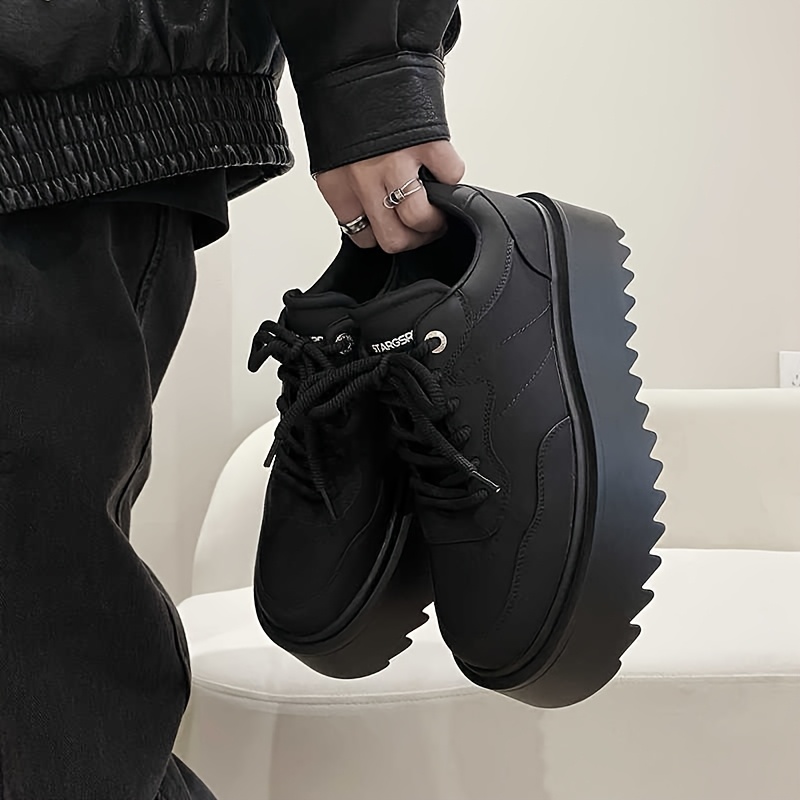 Erkaklar uchun qalin taglikli, bir rangli, sirpanmaydigan, balandlikni oshiruvchi dizaynga ega krossovkalar. Sun'iy astar va kauchuk taglik, dumaloq barmoq, pastki qism va ko'chada kiyish uslubiga ega. Har mavsum uchun mos.