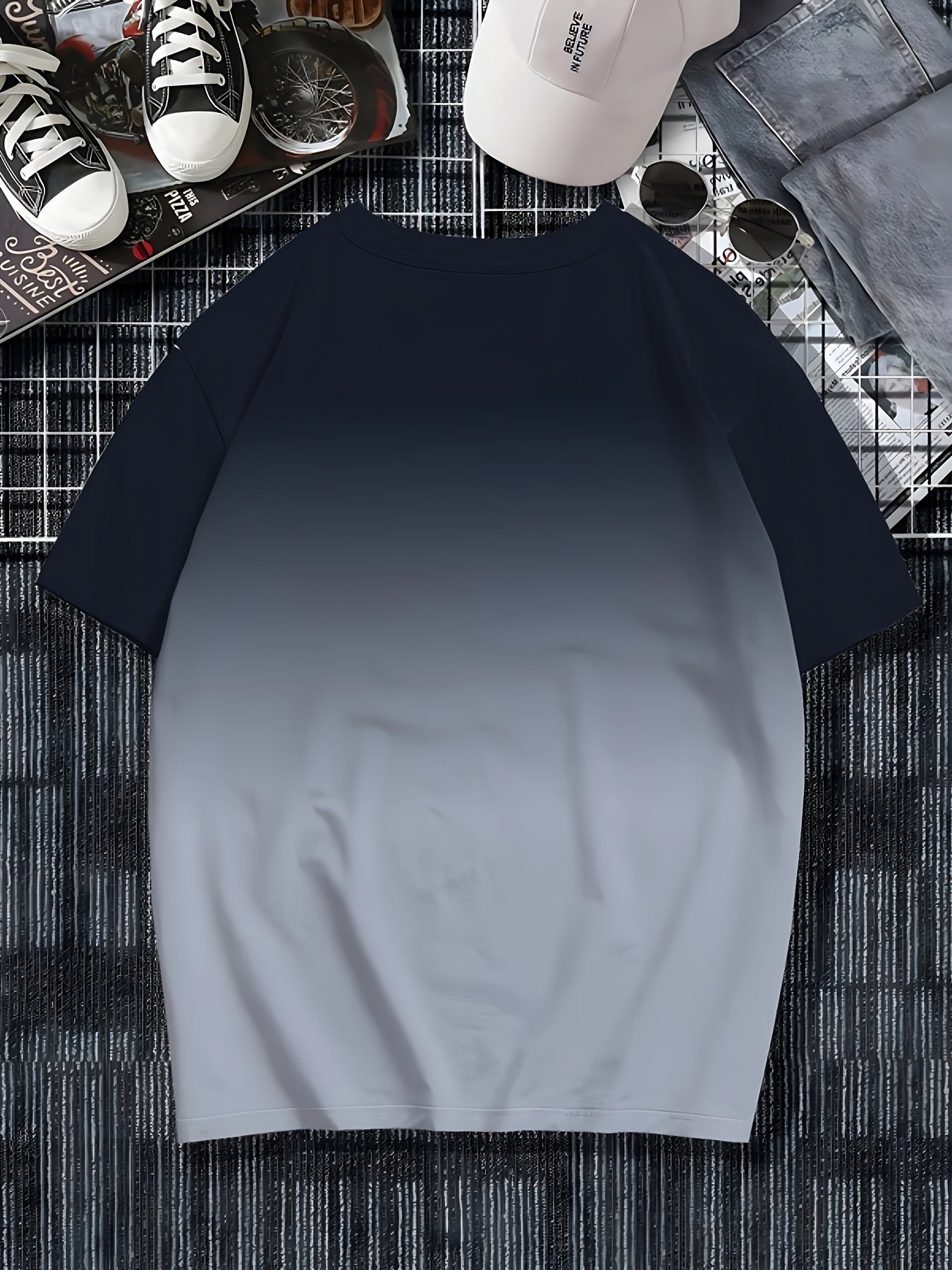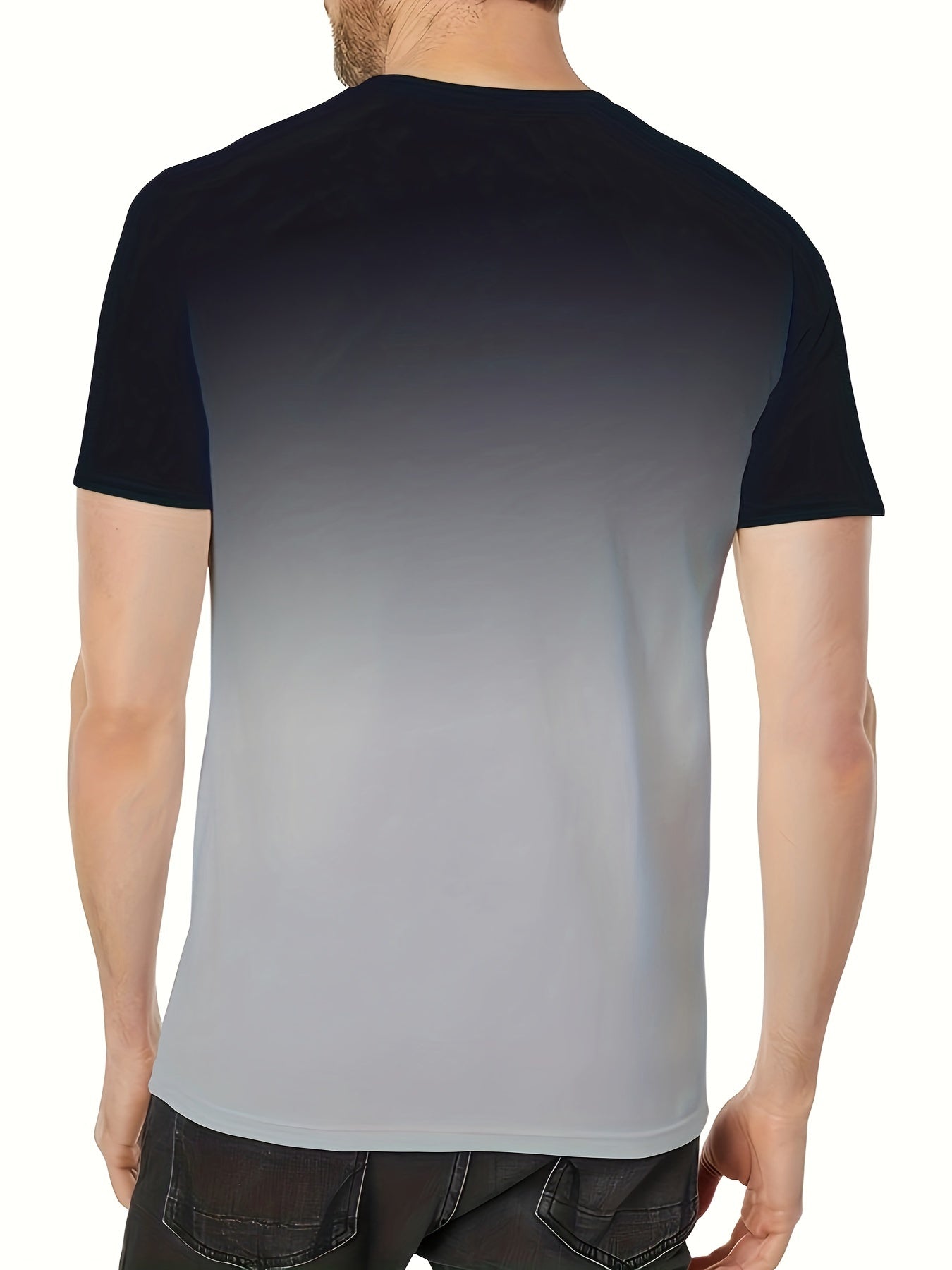 Erkaklar uchun zamonaviy tasodifiy 3D bosma T-ko'ylak, geometrik naqsh bilan, polyesterdan tayyorlangan, oddiy moslashuvda to'qilgan mato bilan.