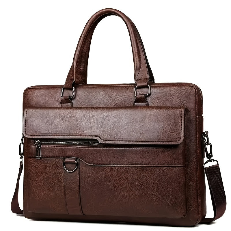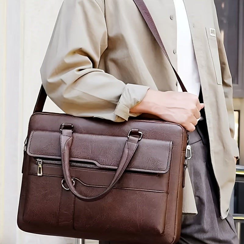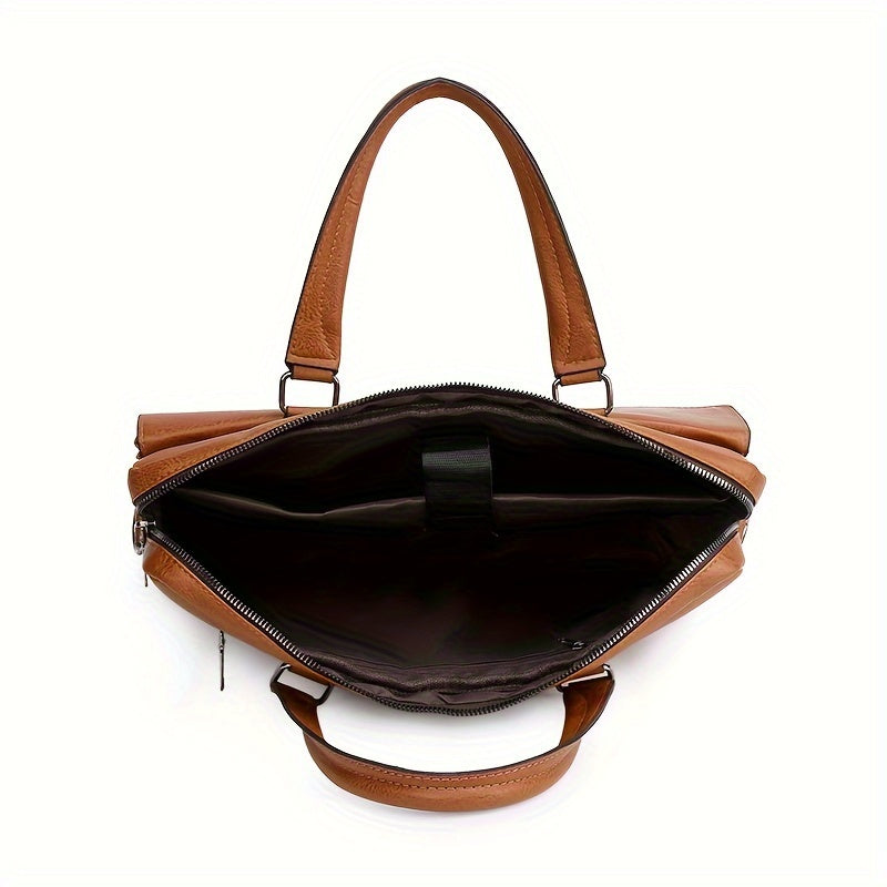 Erkaklar uchun vintage jigarrang biznes portfeli - bir nechta bo'limlari va sozlanadigan tasmasi bilan noutbuk va planshet xabari sumkasi