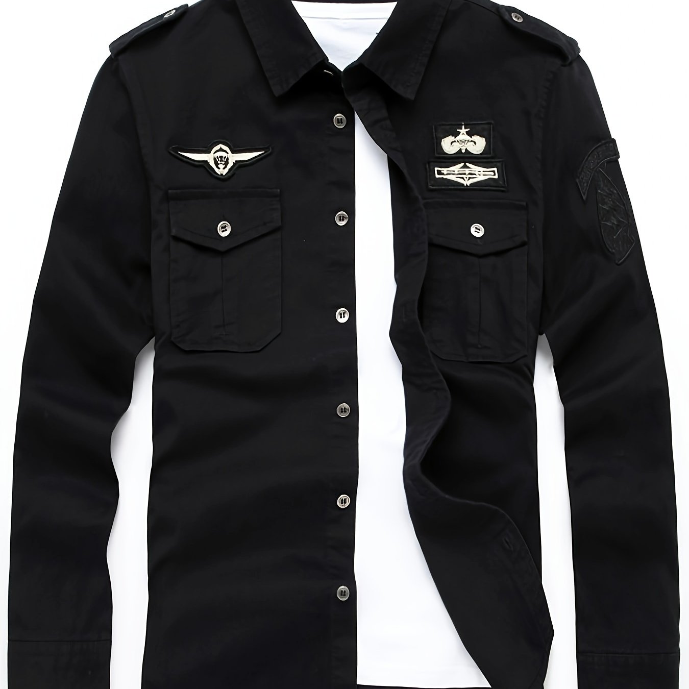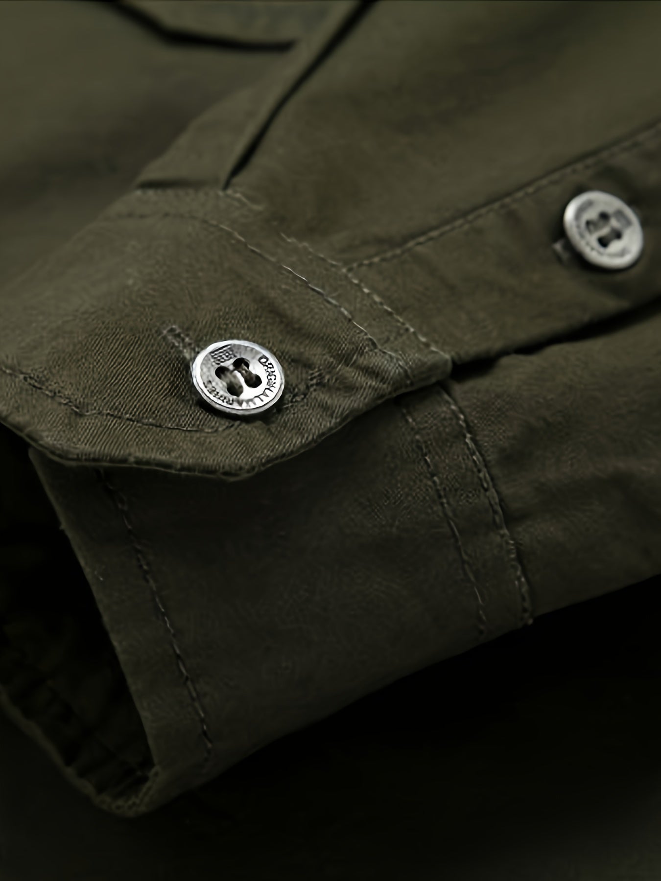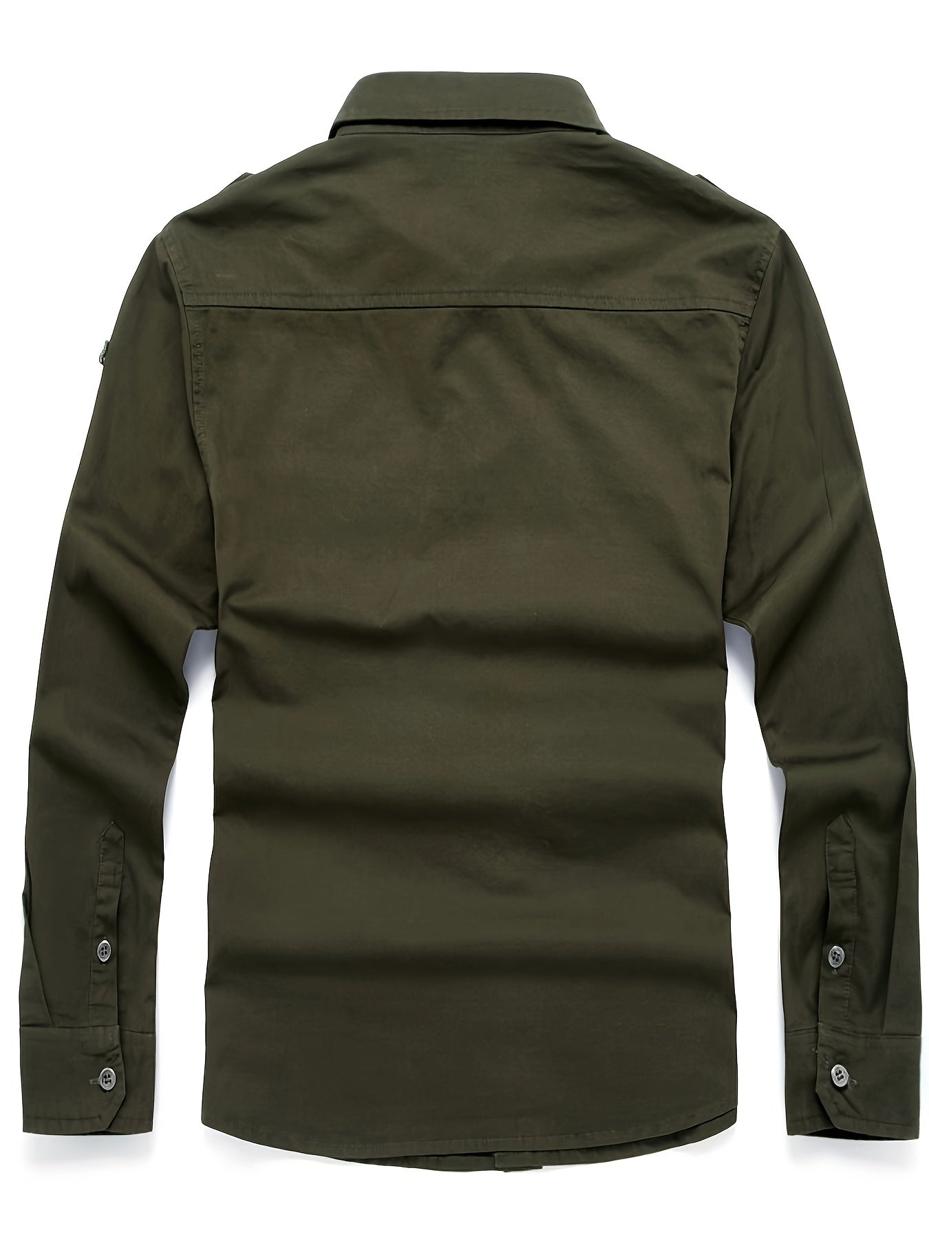 Erkaklar uchun vintage uslubidagi paxta kargo ko'ylagi: Qora, uzun qo'lqonli, yengil, bahor/kovak uchun, ochiq havoda va tasodifiy kiyimlar uchun.