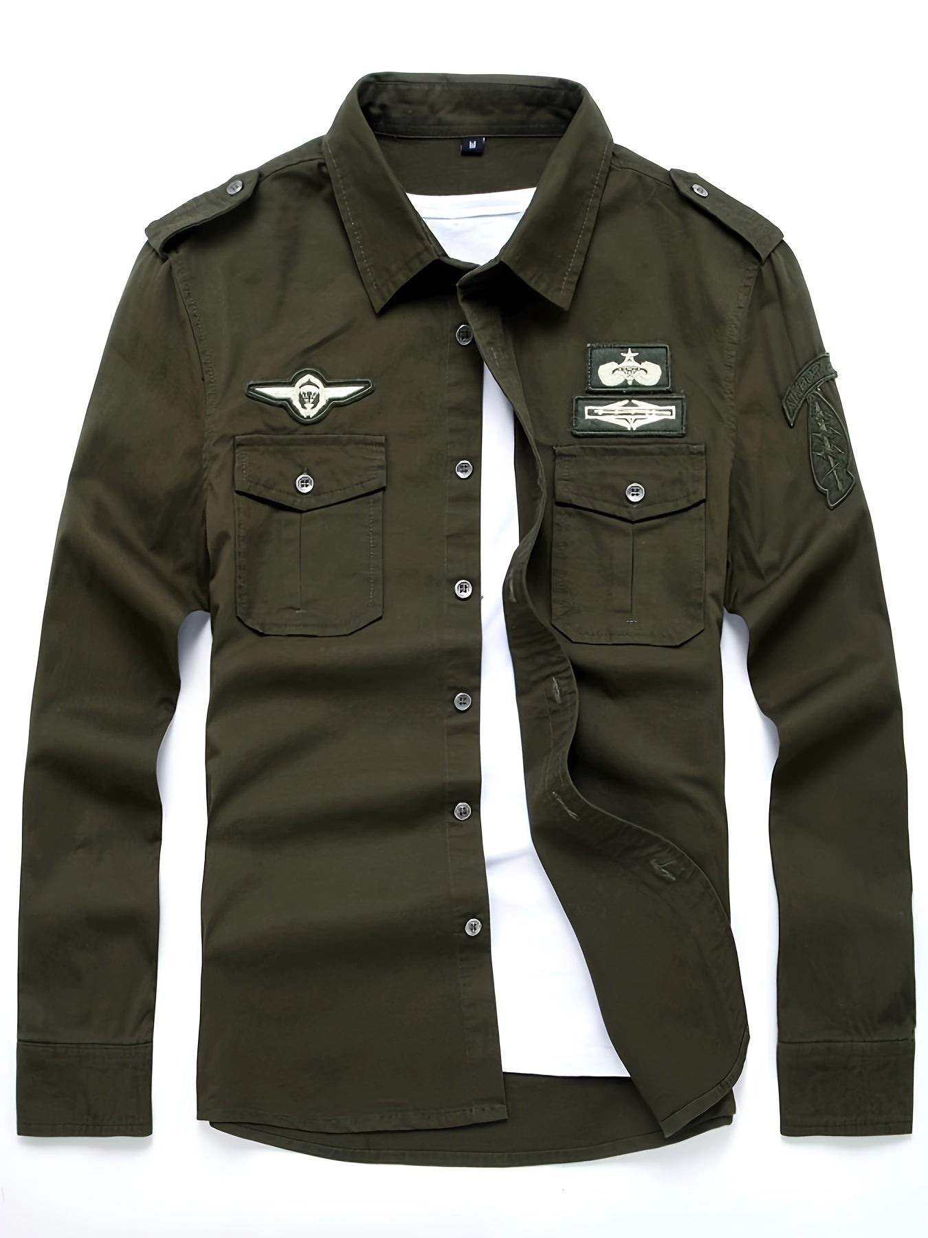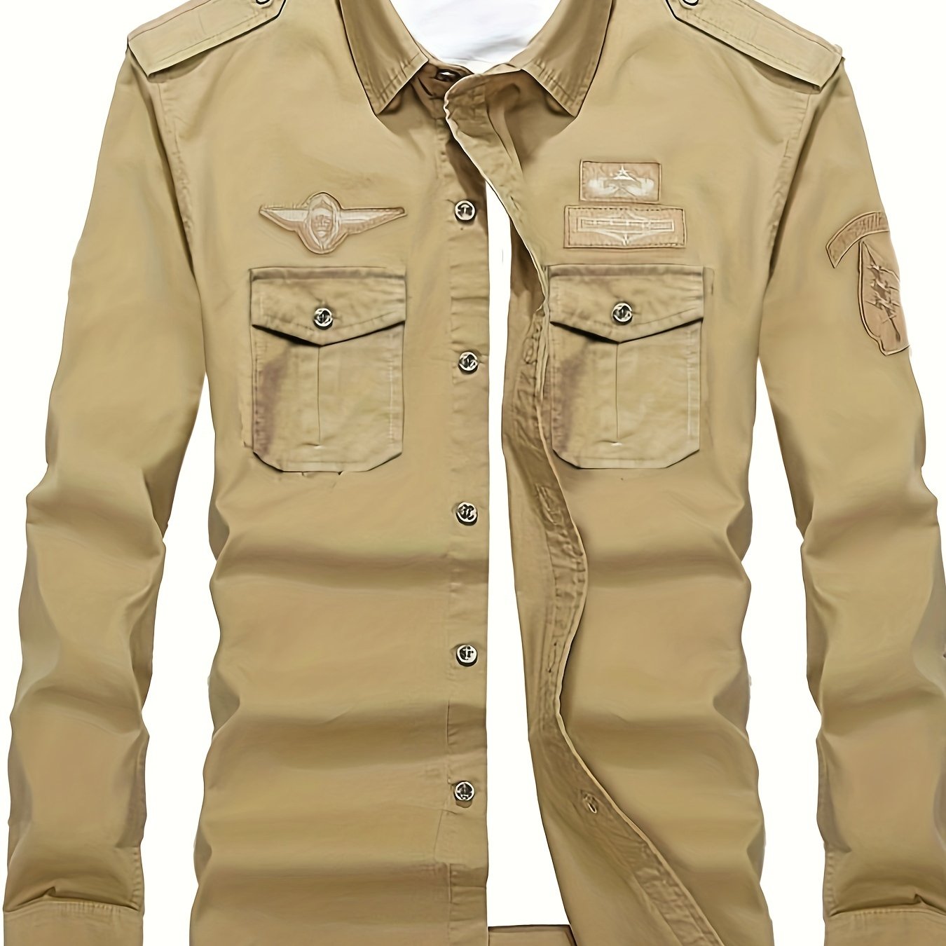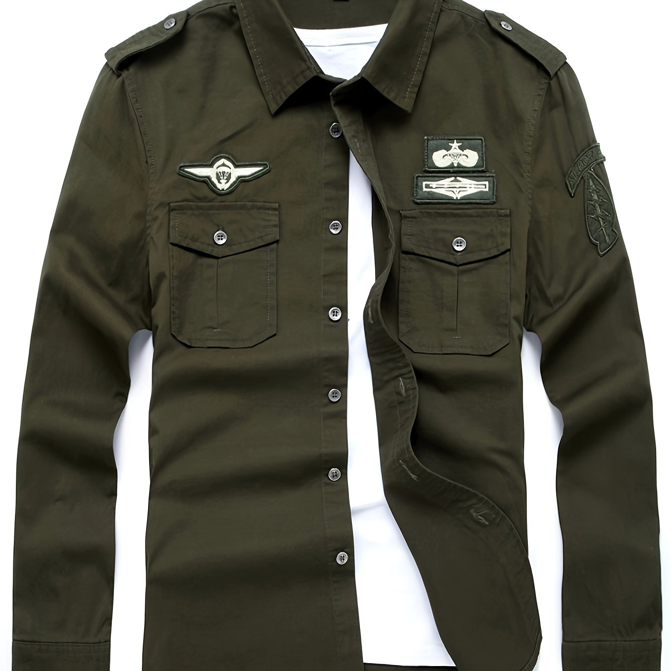 Erkaklar uchun vintage uslubidagi paxta kargo ko'ylagi: Qora, uzun qo'lqonli, yengil, bahor/kovak uchun, ochiq havoda va tasodifiy kiyimlar uchun.