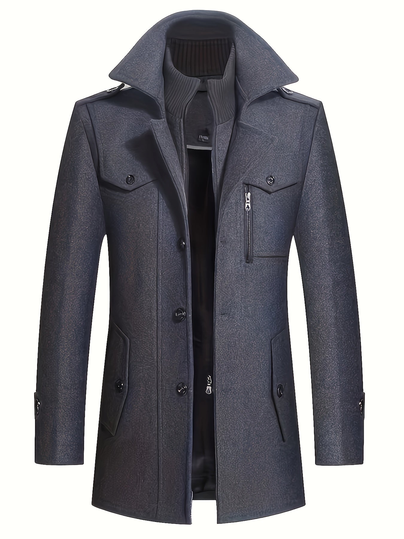 Erkaklar uchun cho'ntakli, ikki qavatli iliq kurtka, kuz/qish norasmiy kiyimlar uchun.