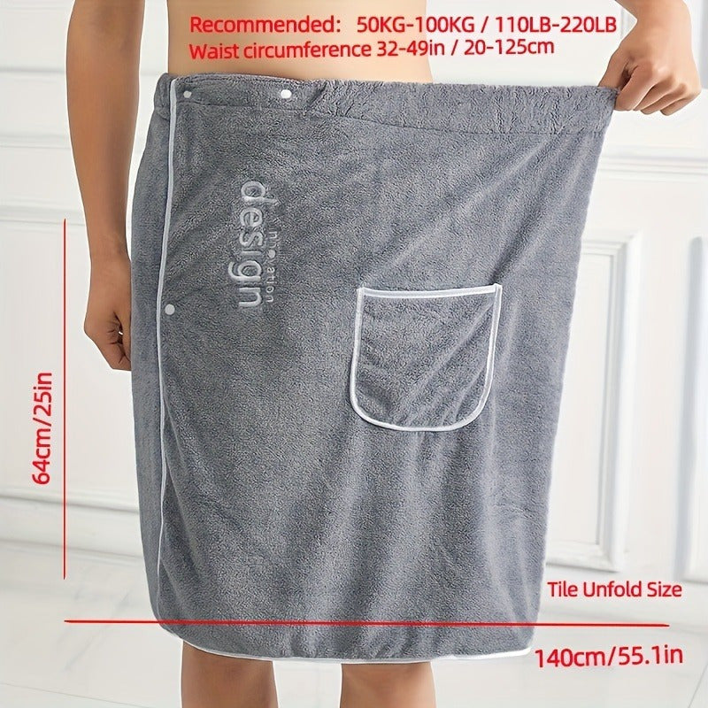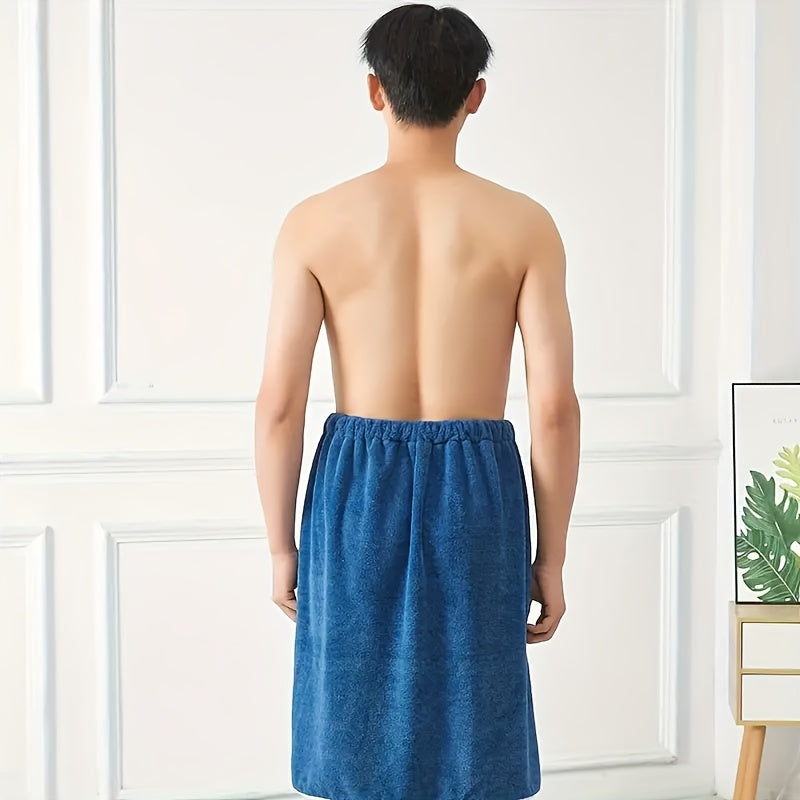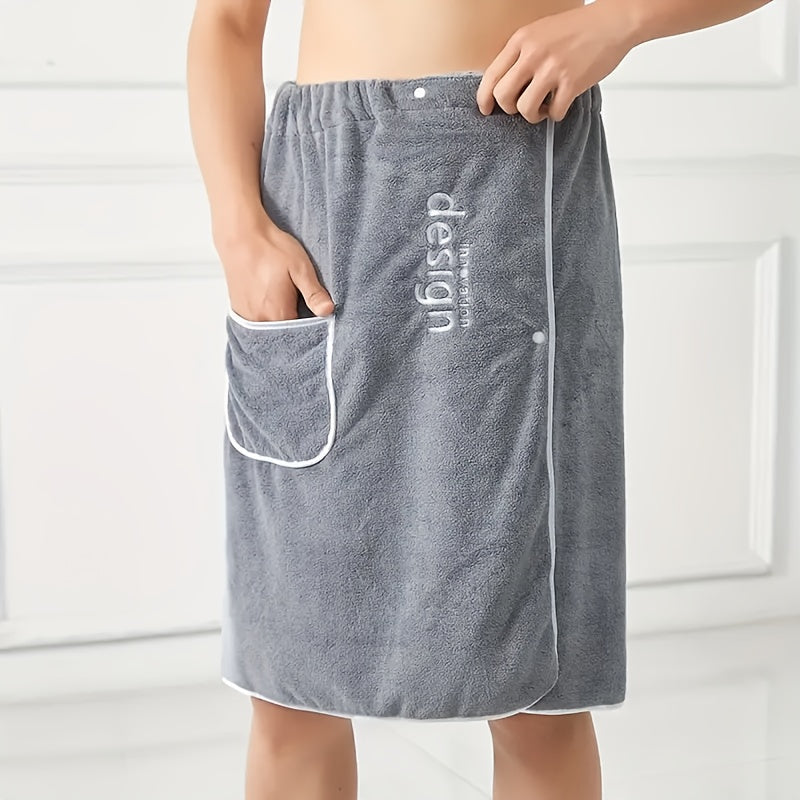 Erkaklar uchun kiyiladigan hammom sochiq, tikilgan dizayni bilan, yumshoq va namni yaxshi so'radigan koral fliys materialidan tayyorlangan, hammom yoki sauna uchun ideal.