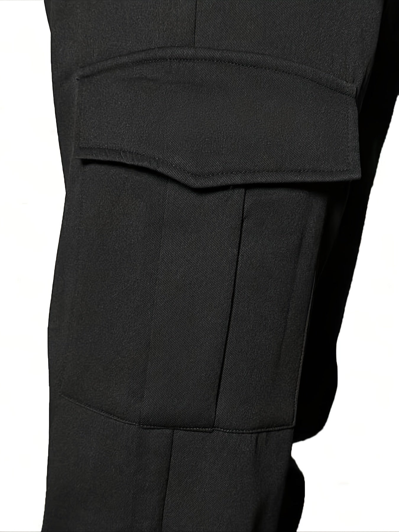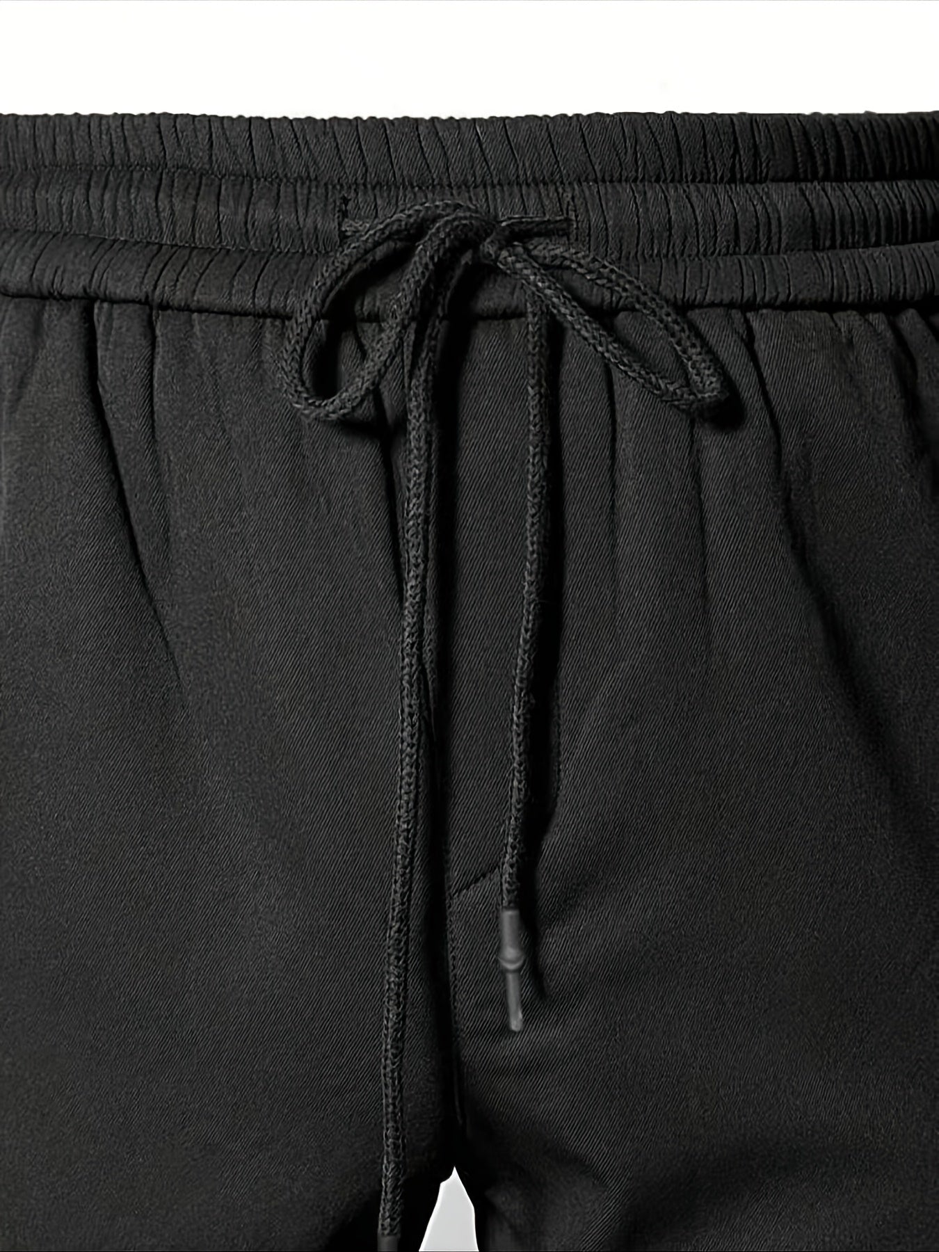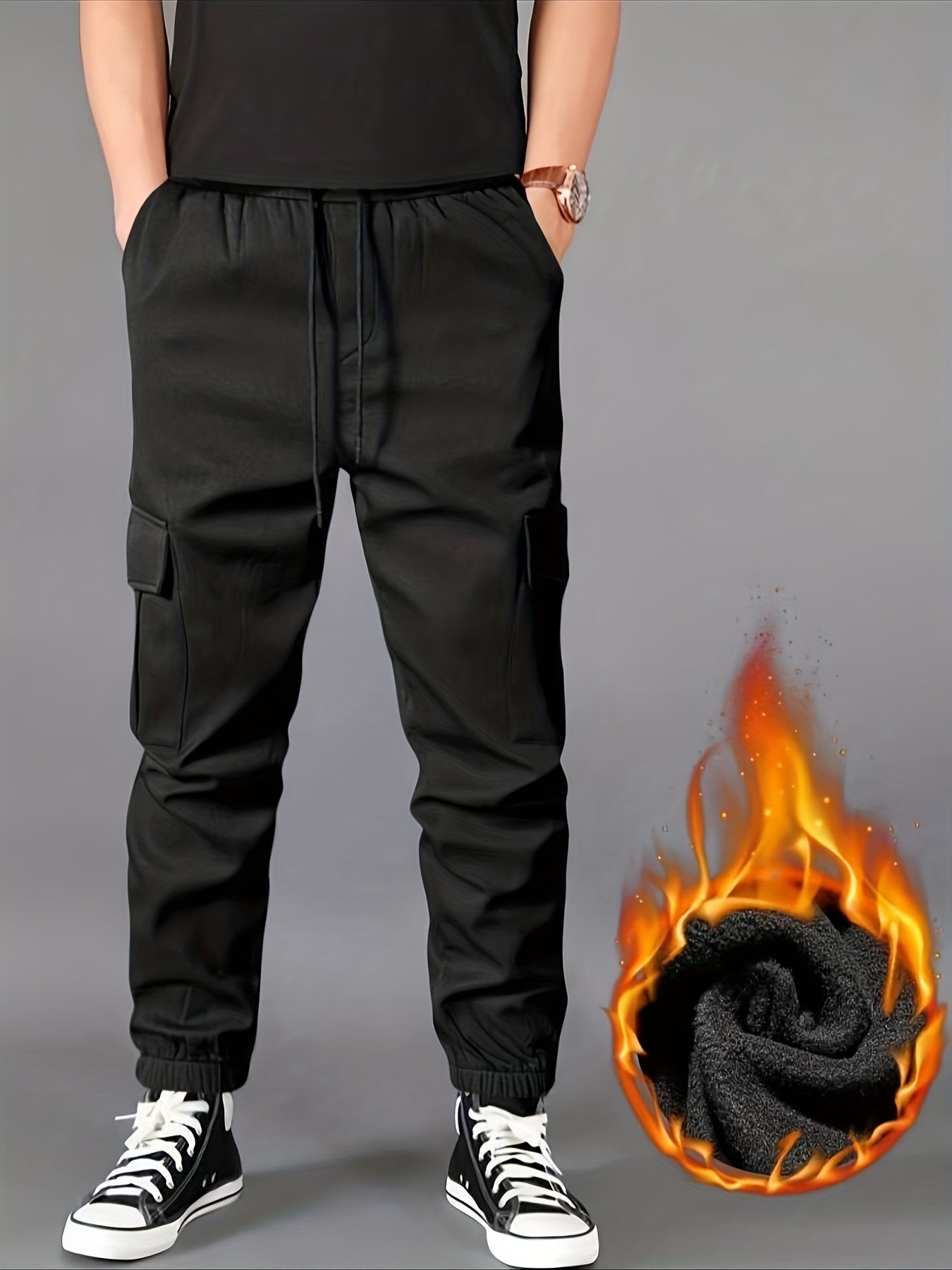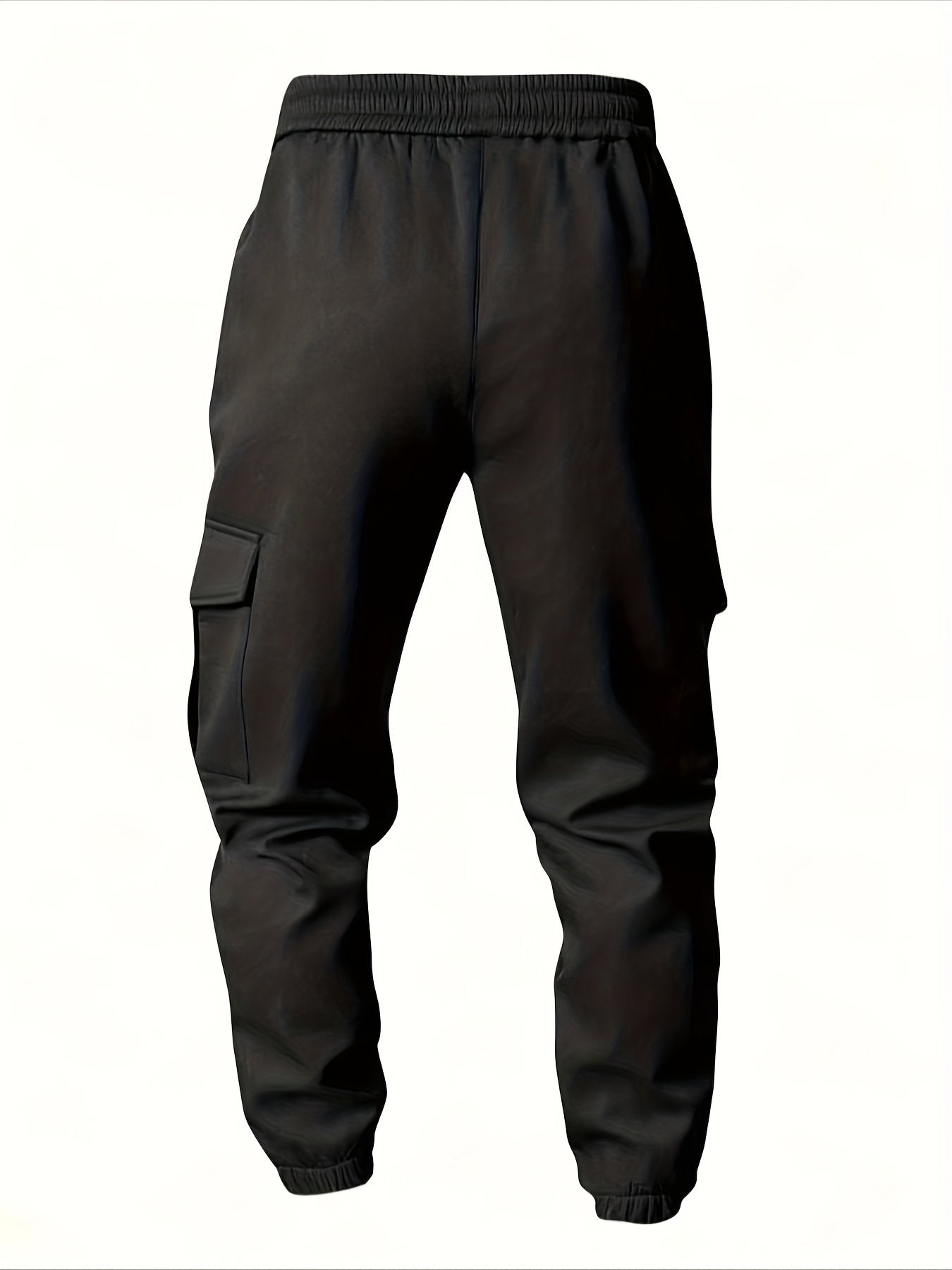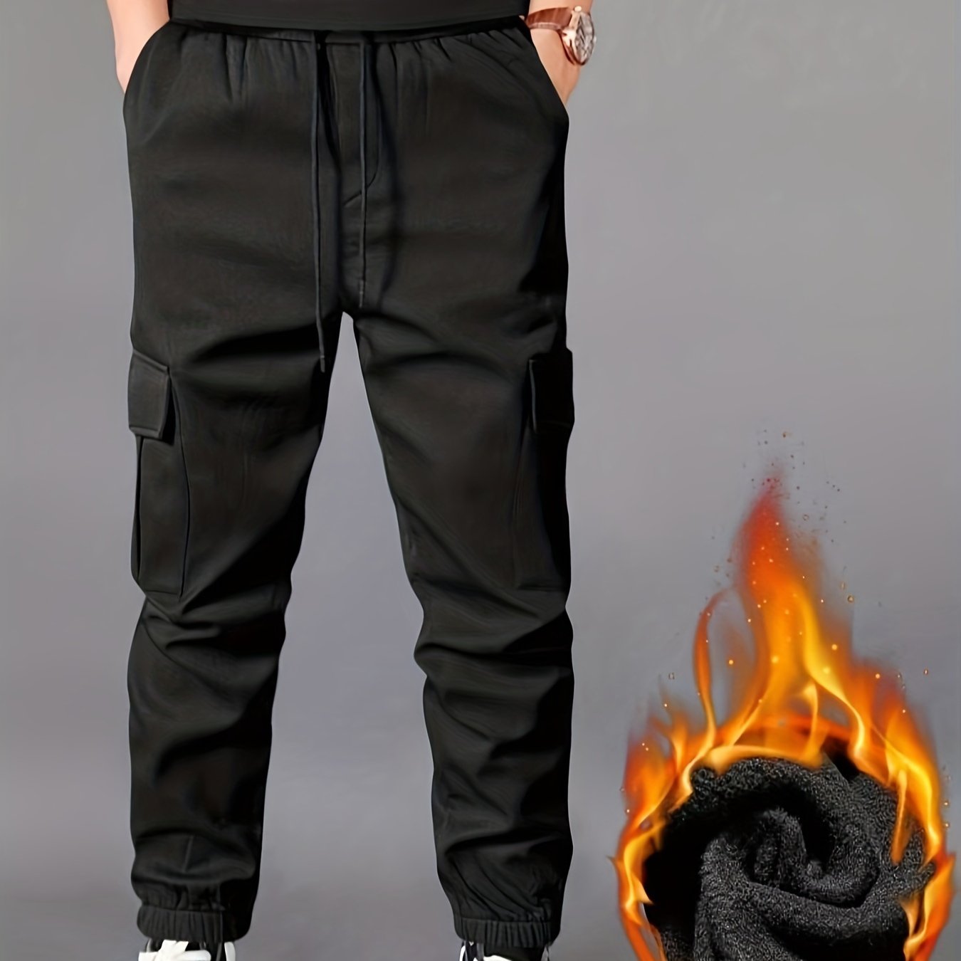 Erkaklar uchun qishki yuk shimlari, bir rangda va cho'zilmaydigan matodan, odatdagi kesimda, tortish ipi bilan, issiqlik uchun mo'ljallangan, kattalar o'lchovida mavjud.
