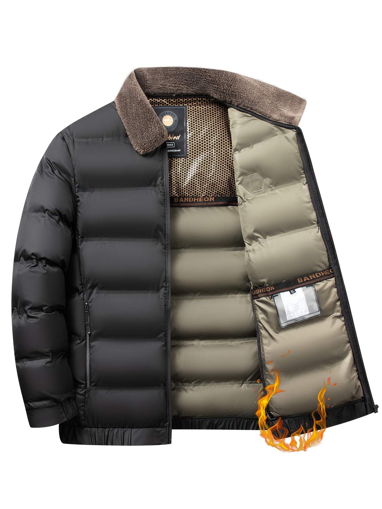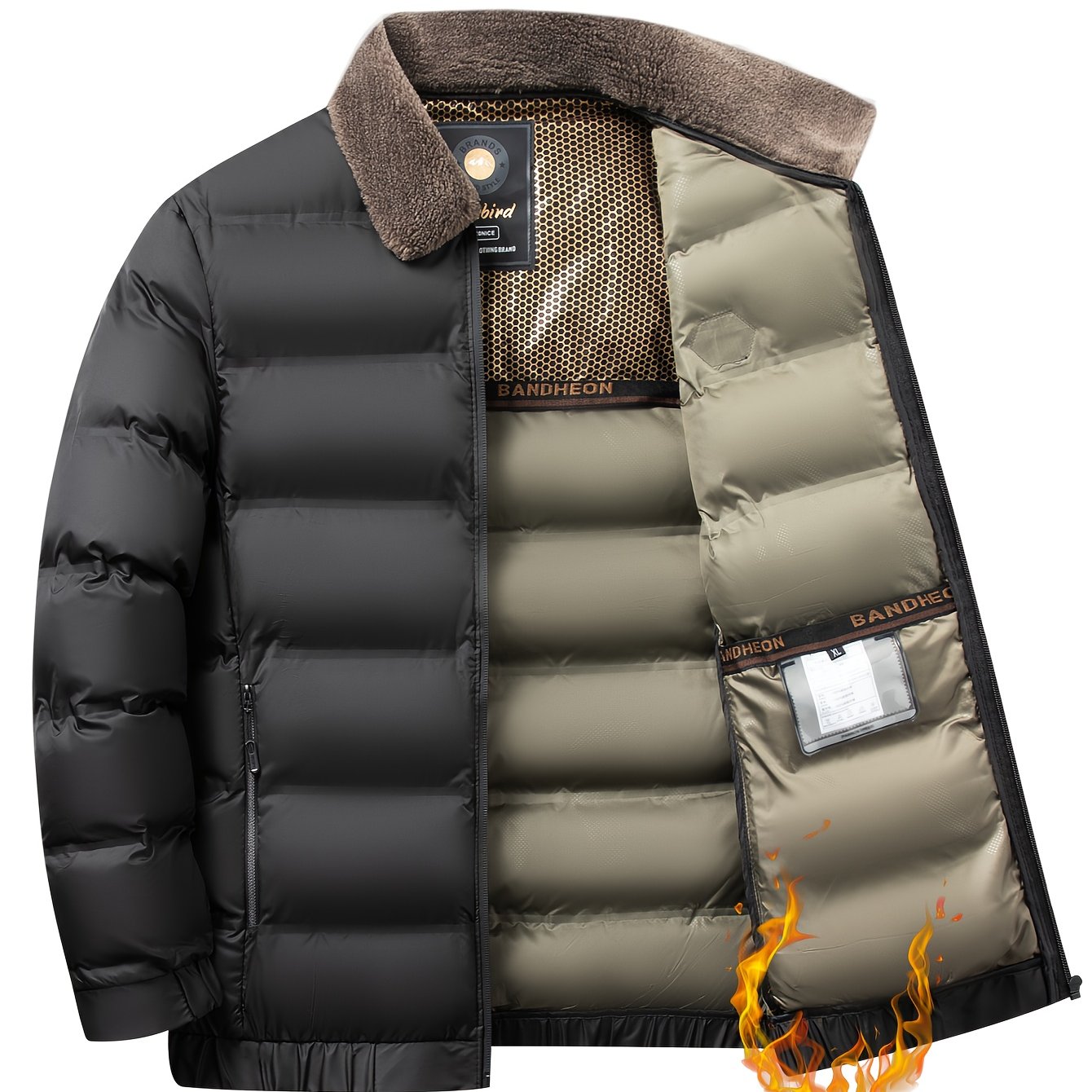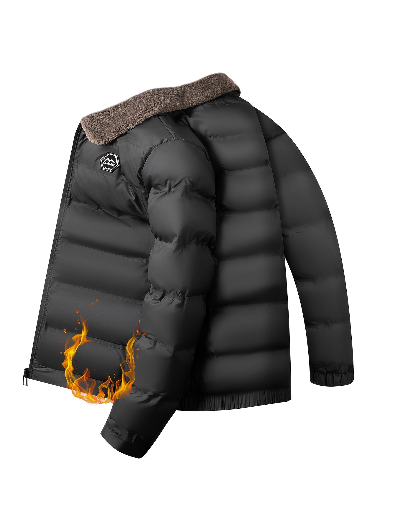 Erkaklar uchun qishki kurtka, soxta mo'yna yaka bilan, oddiy kesim, fermuarlı tashqi kiyim, 500g/m² mato og'irligi, kundalik tasodifiy kiyim uchun mos.