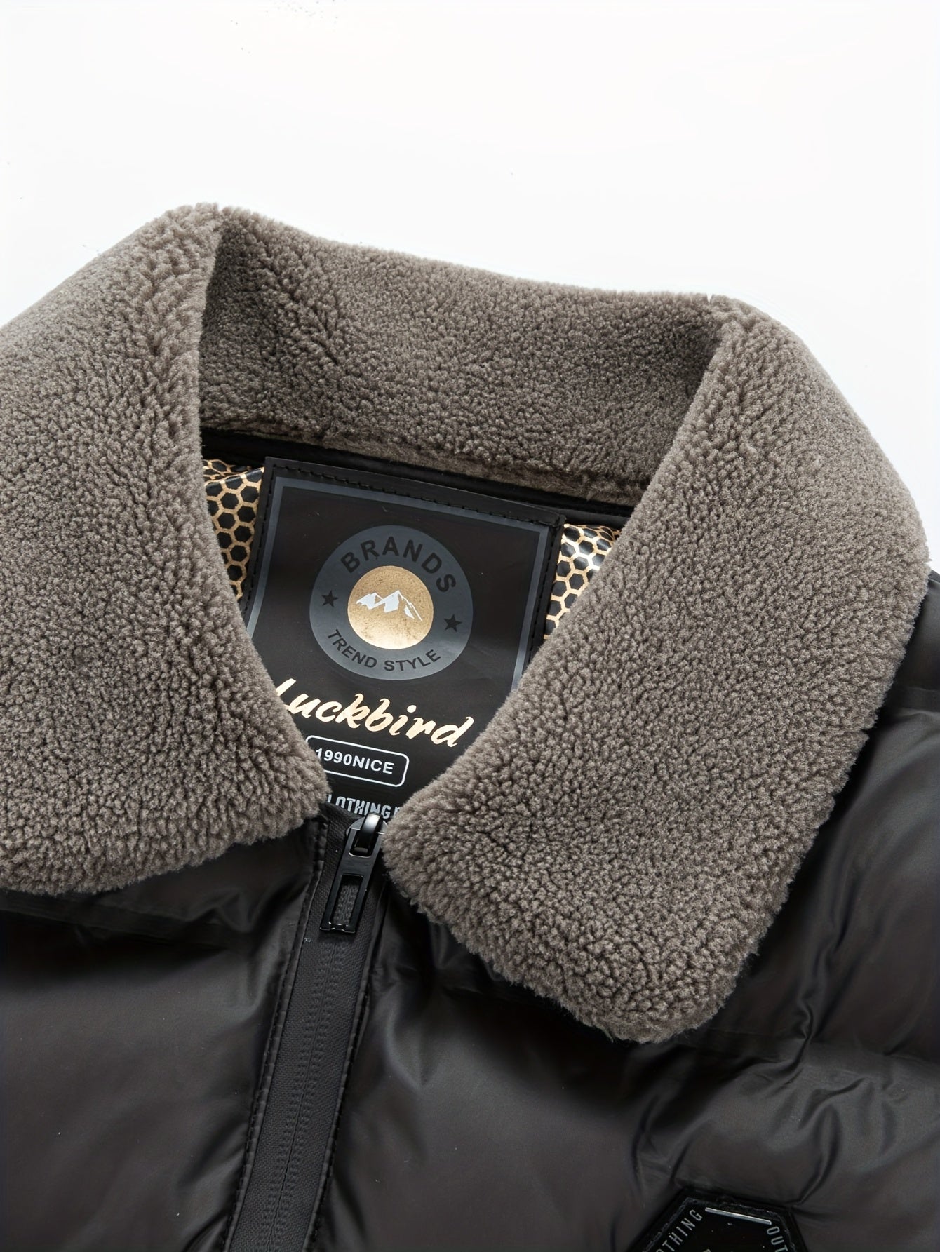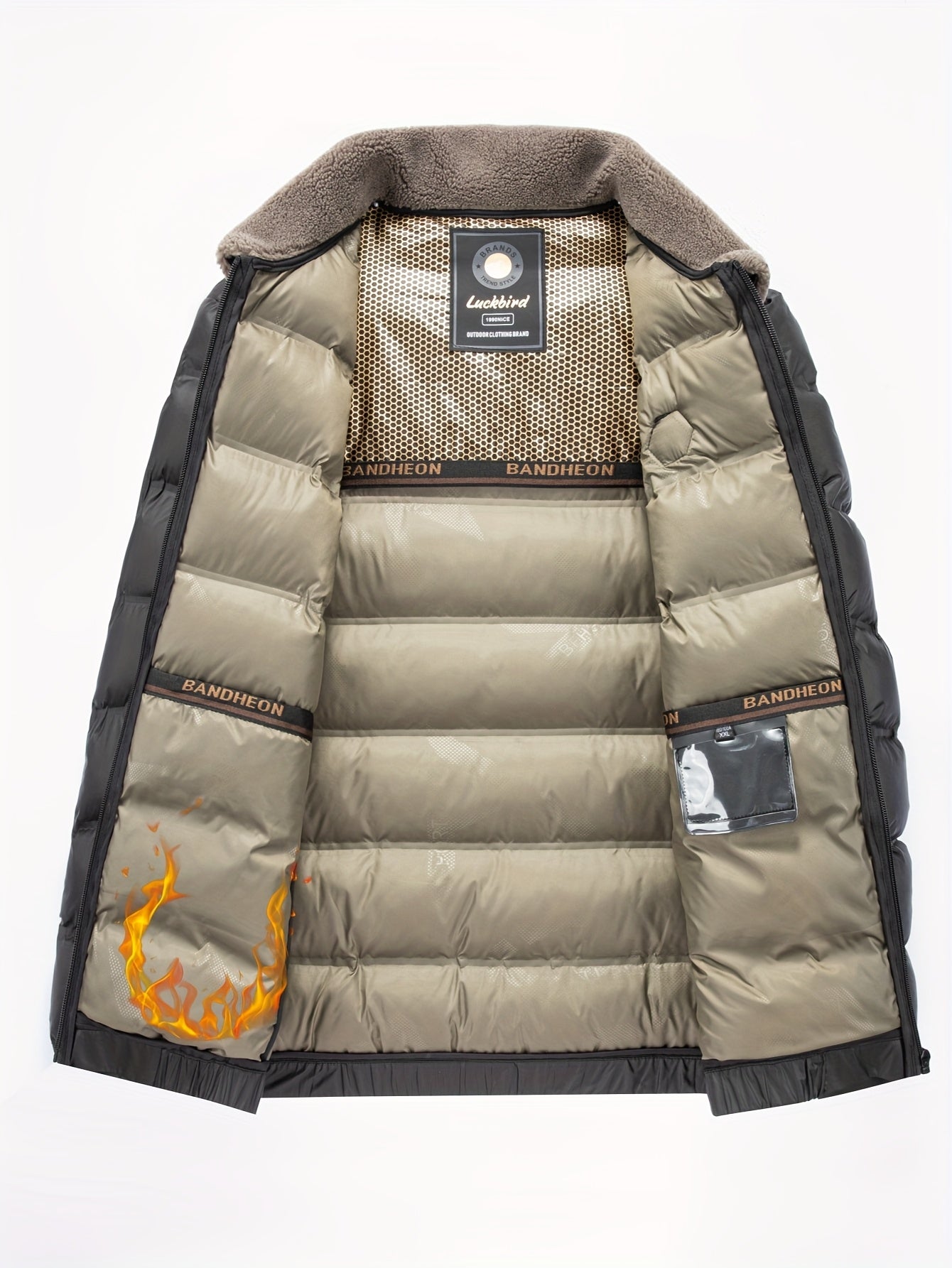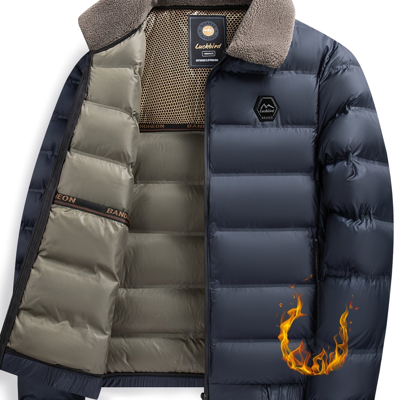 Erkaklar uchun qishki kurtka, soxta mo'yna yaka bilan, oddiy kesim, fermuarlı tashqi kiyim, 500g/m² mato og'irligi, kundalik tasodifiy kiyim uchun mos.