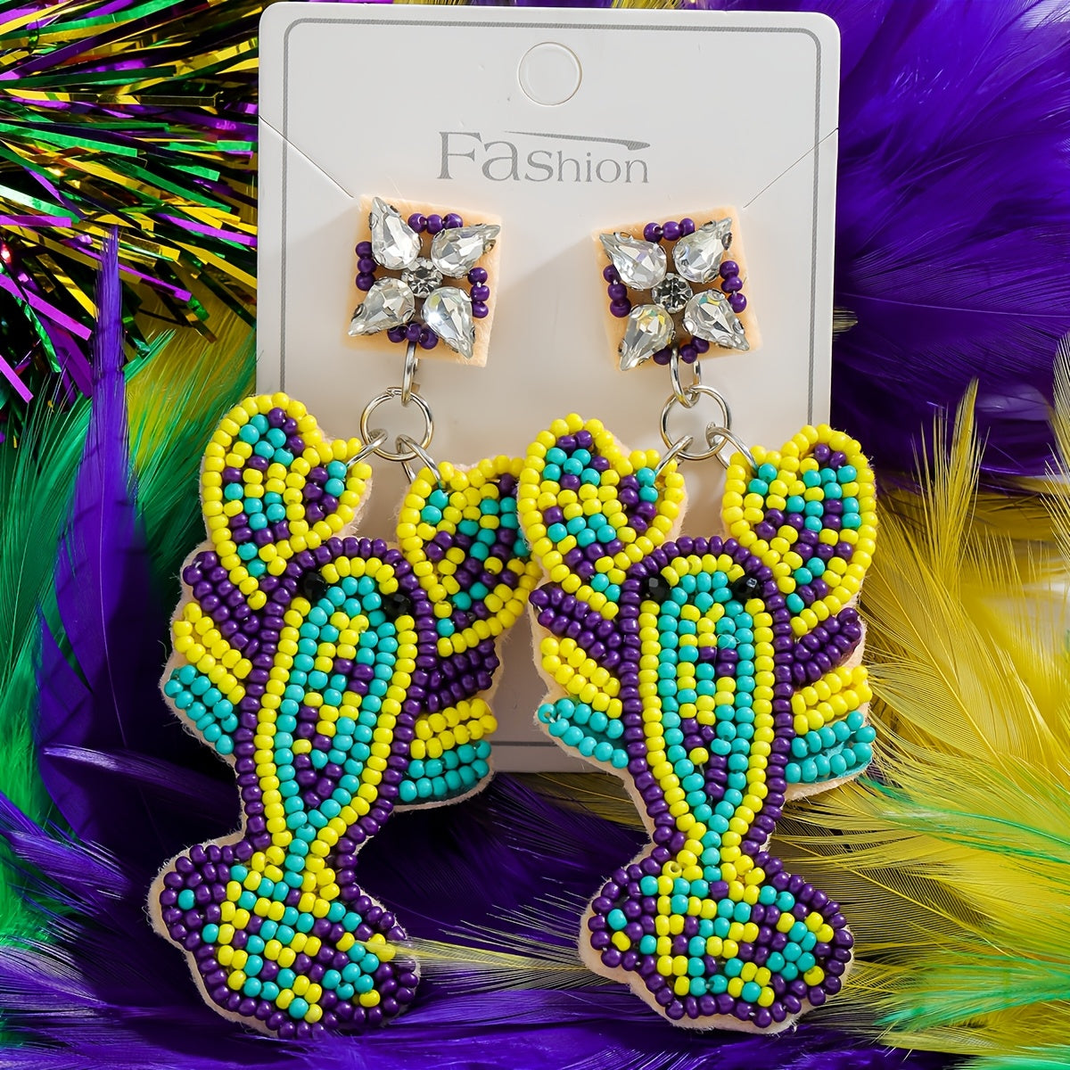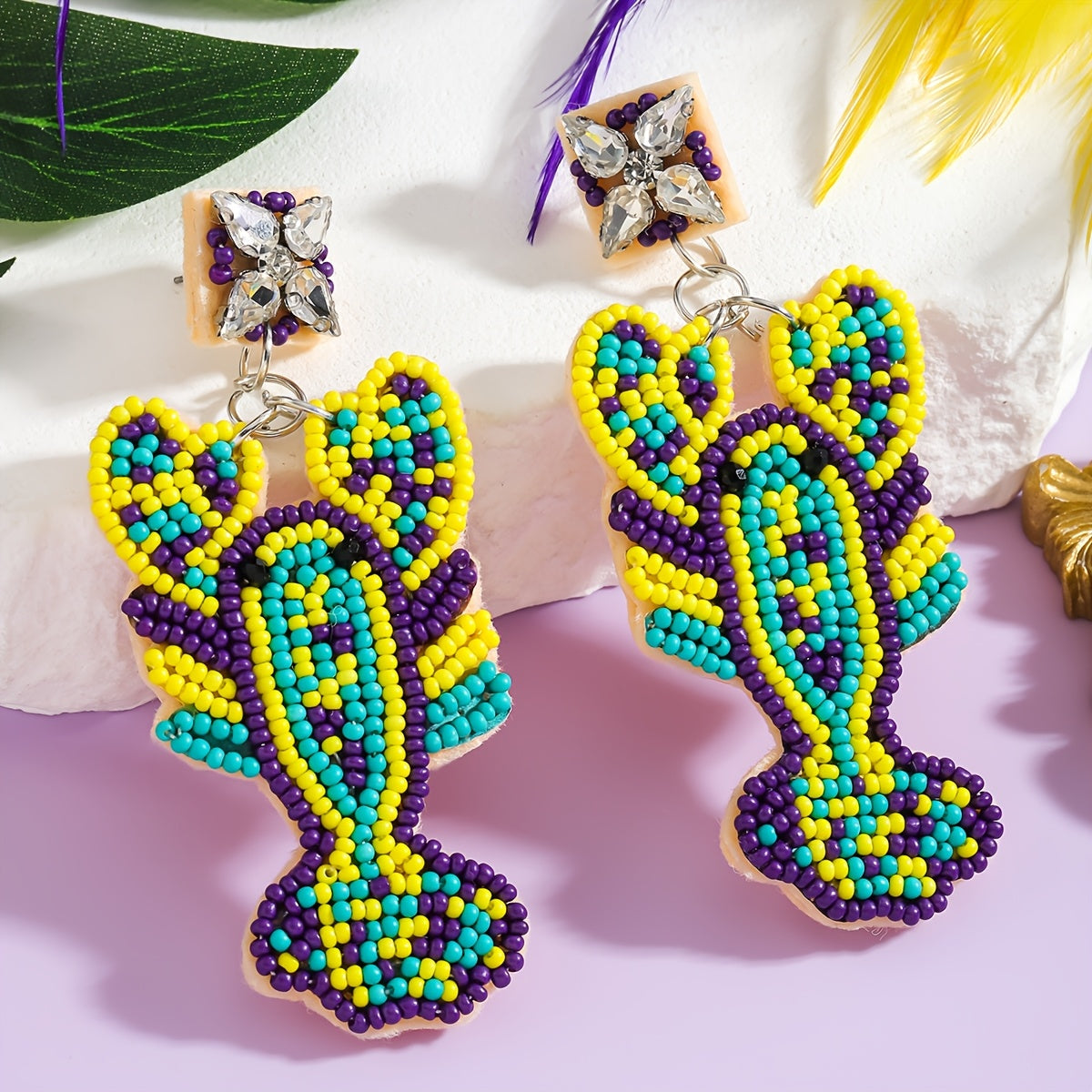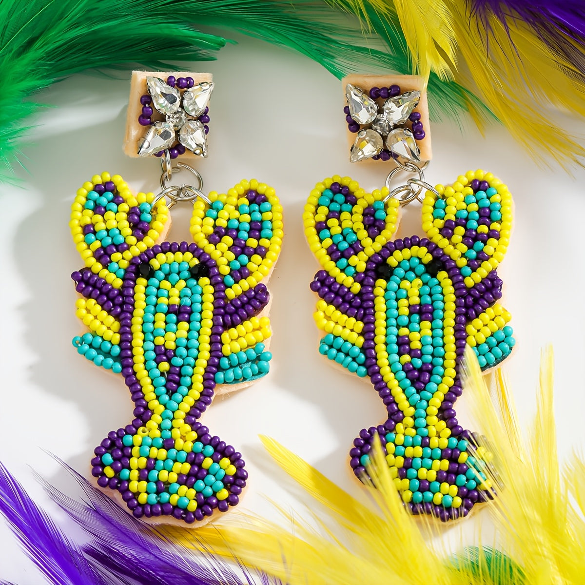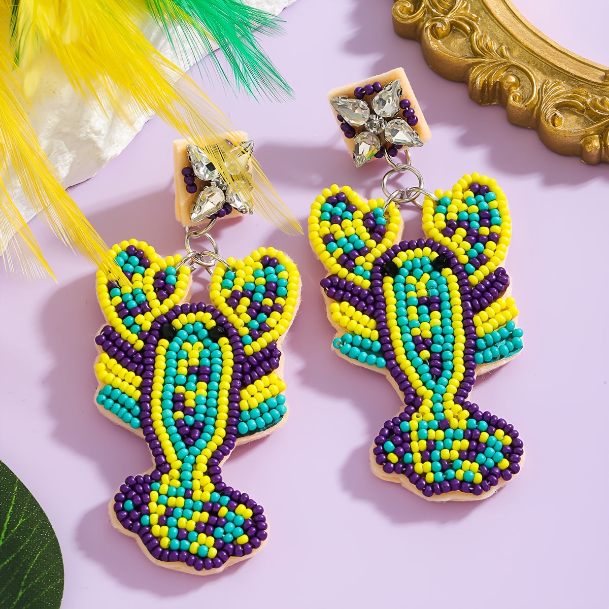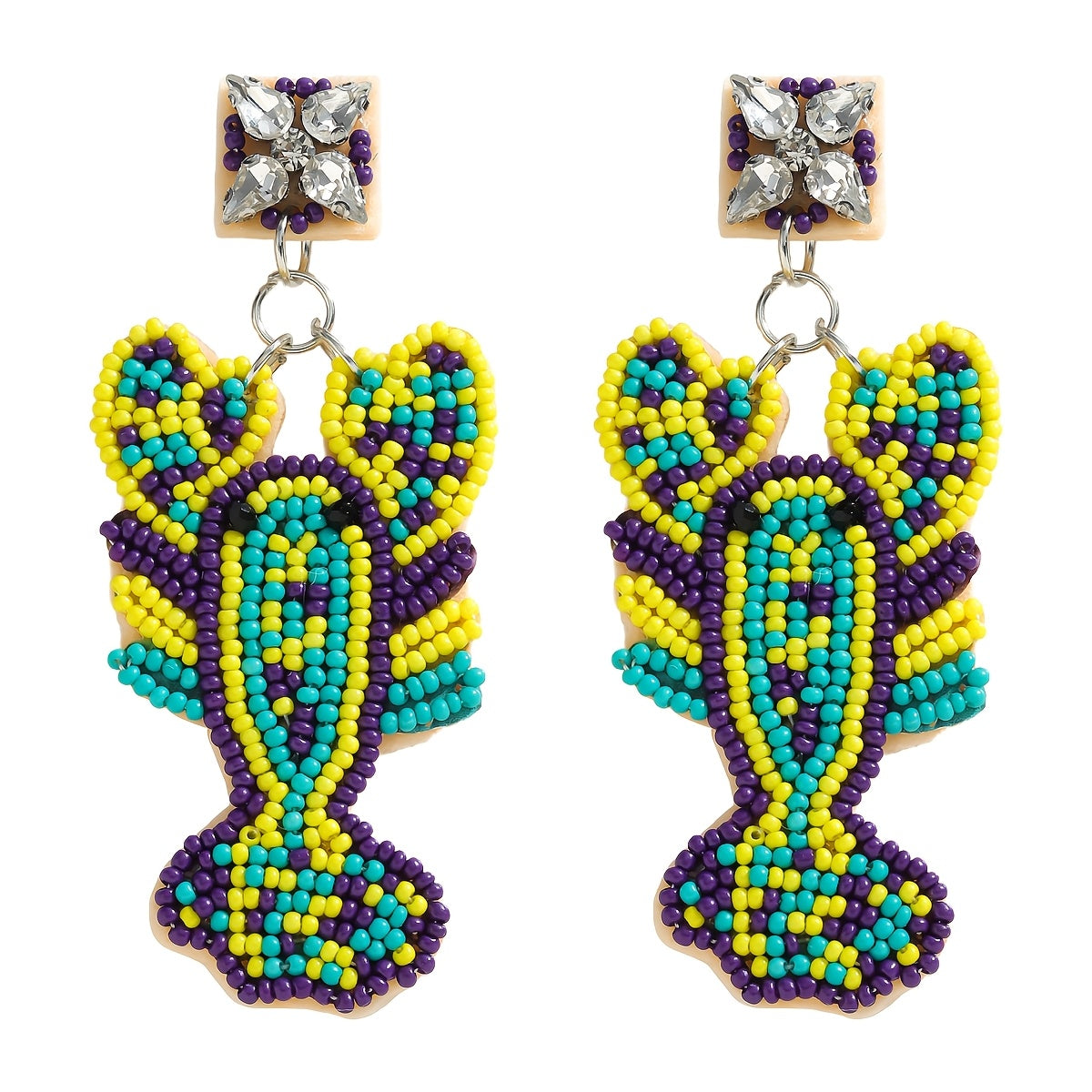 Bayon va Lobster Claw dizayni bilan bezatilgan shisha bilan bezatilgan sirg‘alar, partiyaga va kundalik kiyishga