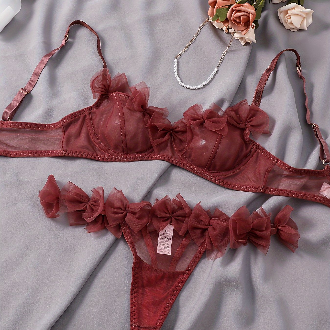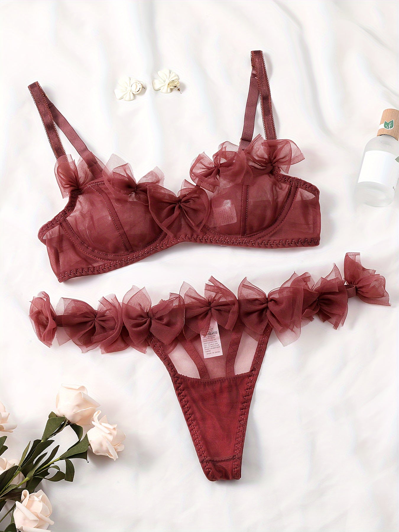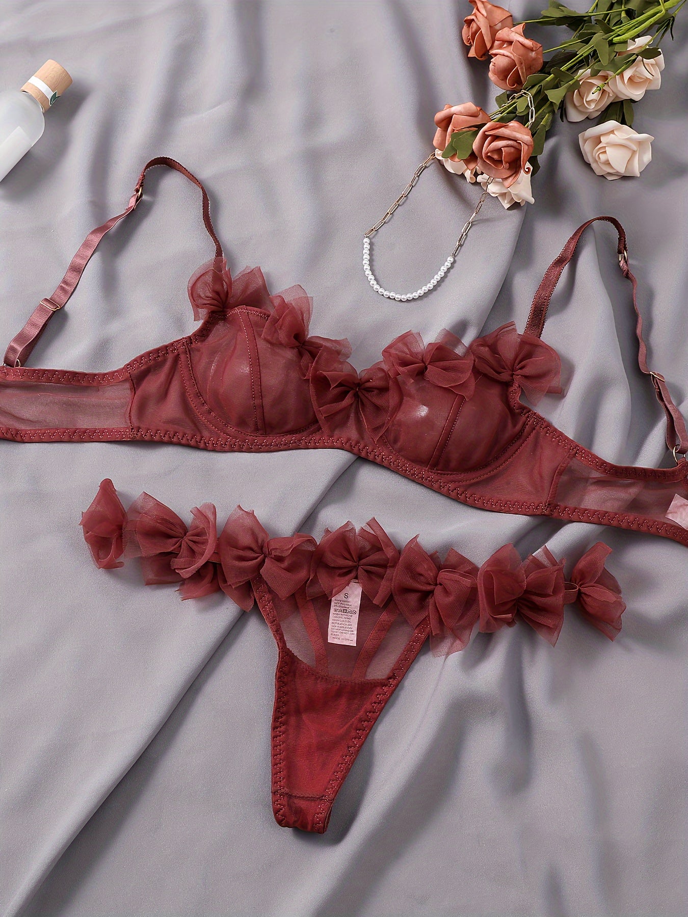 Ikki qismli Mesh Bow Ichki kiyim to'plami
