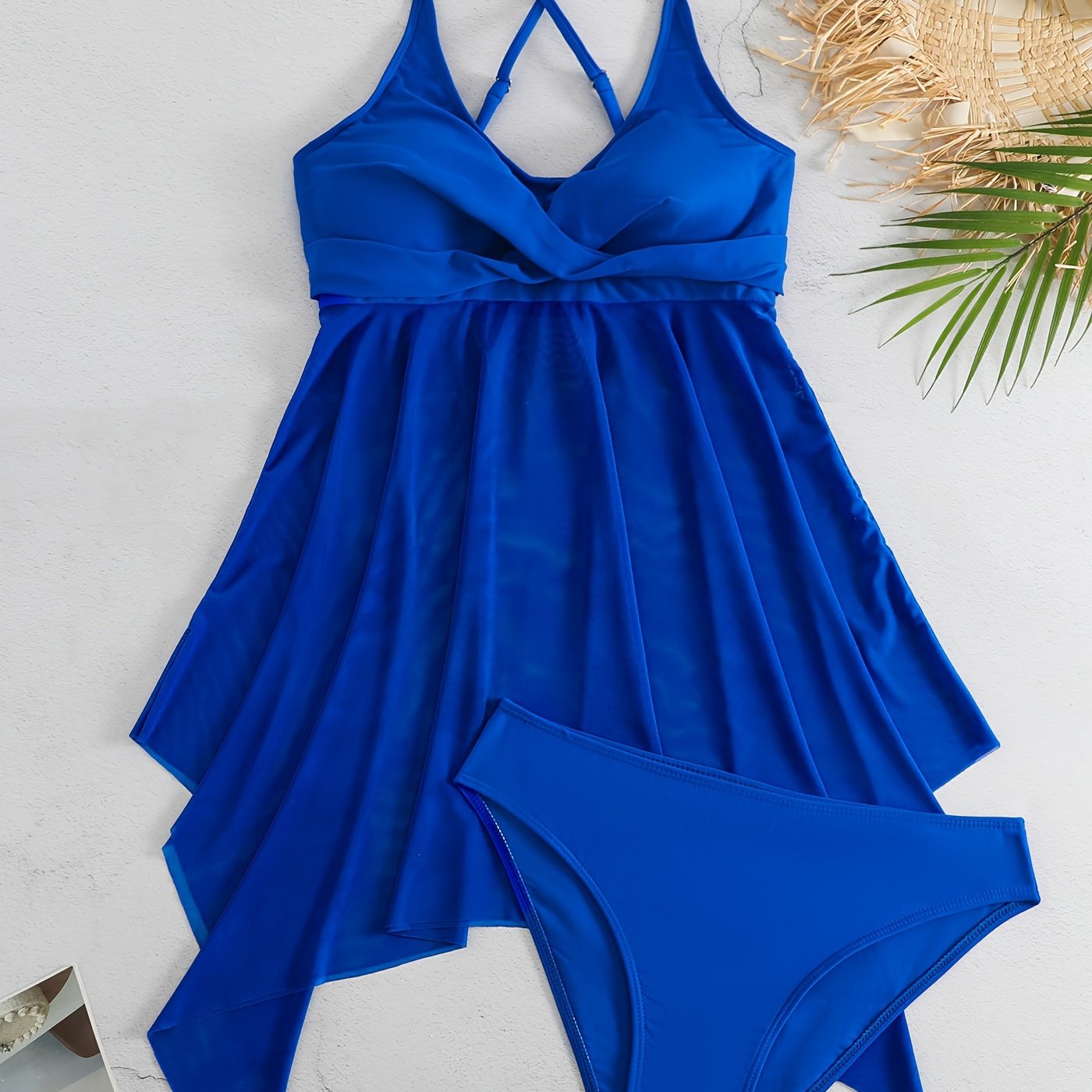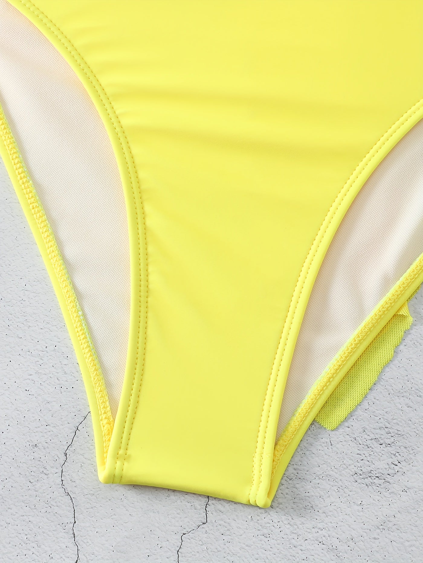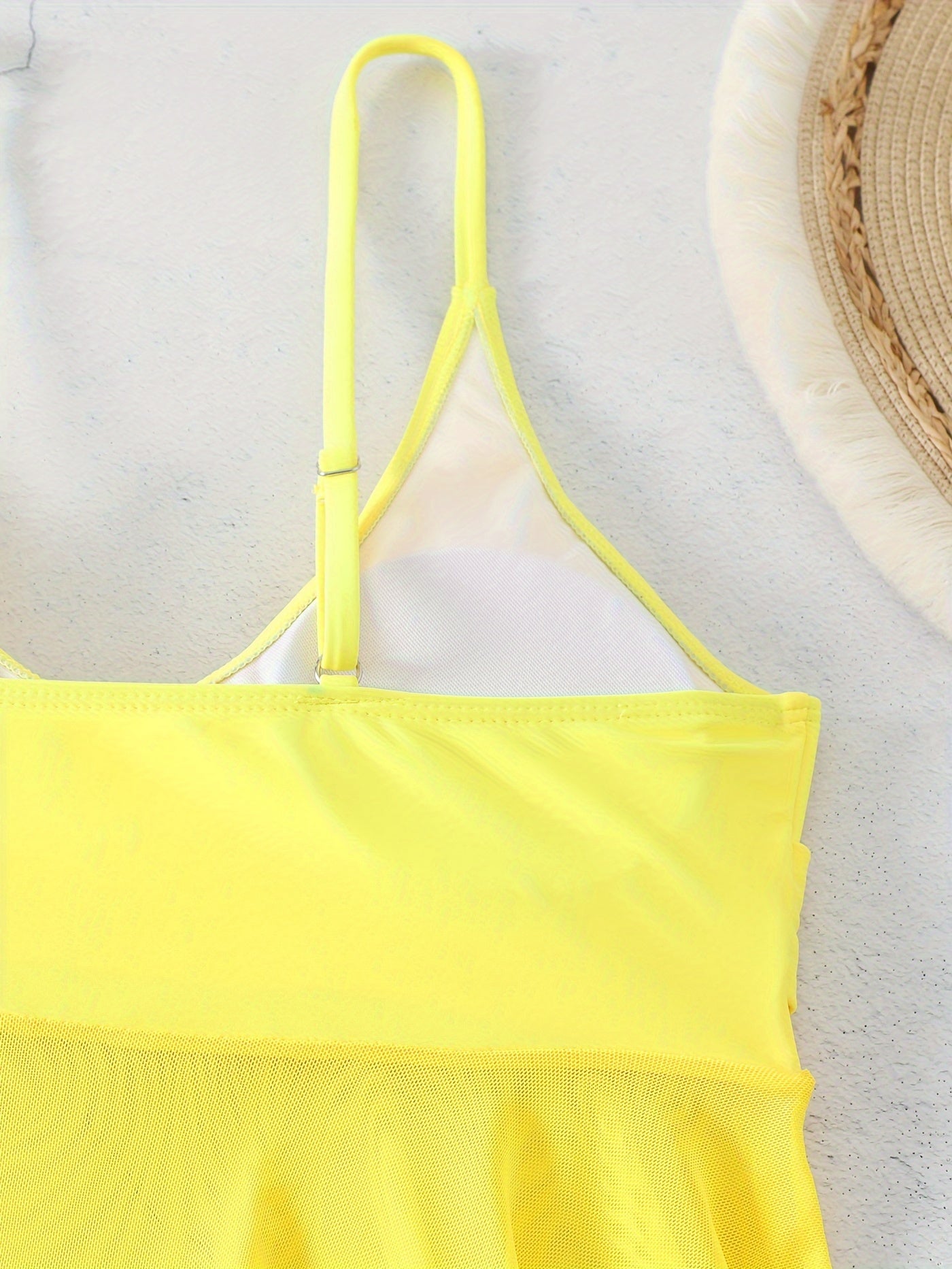 Mesh to'quvli, qattiq rangli, cho'zilgan bo'yin va spaghetti kamarli bikini to'plami, Sevishganlar kuni uchun, plyaj yoki basseyn uchun mukammal.