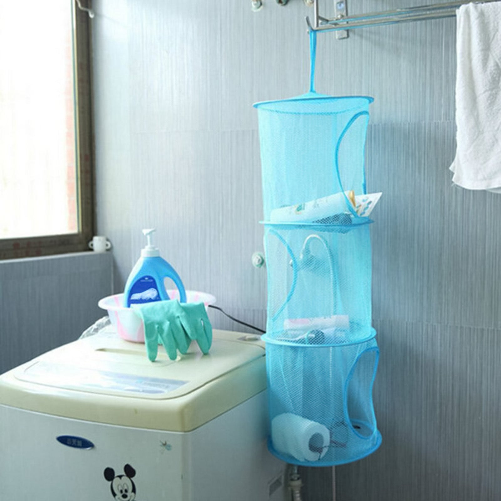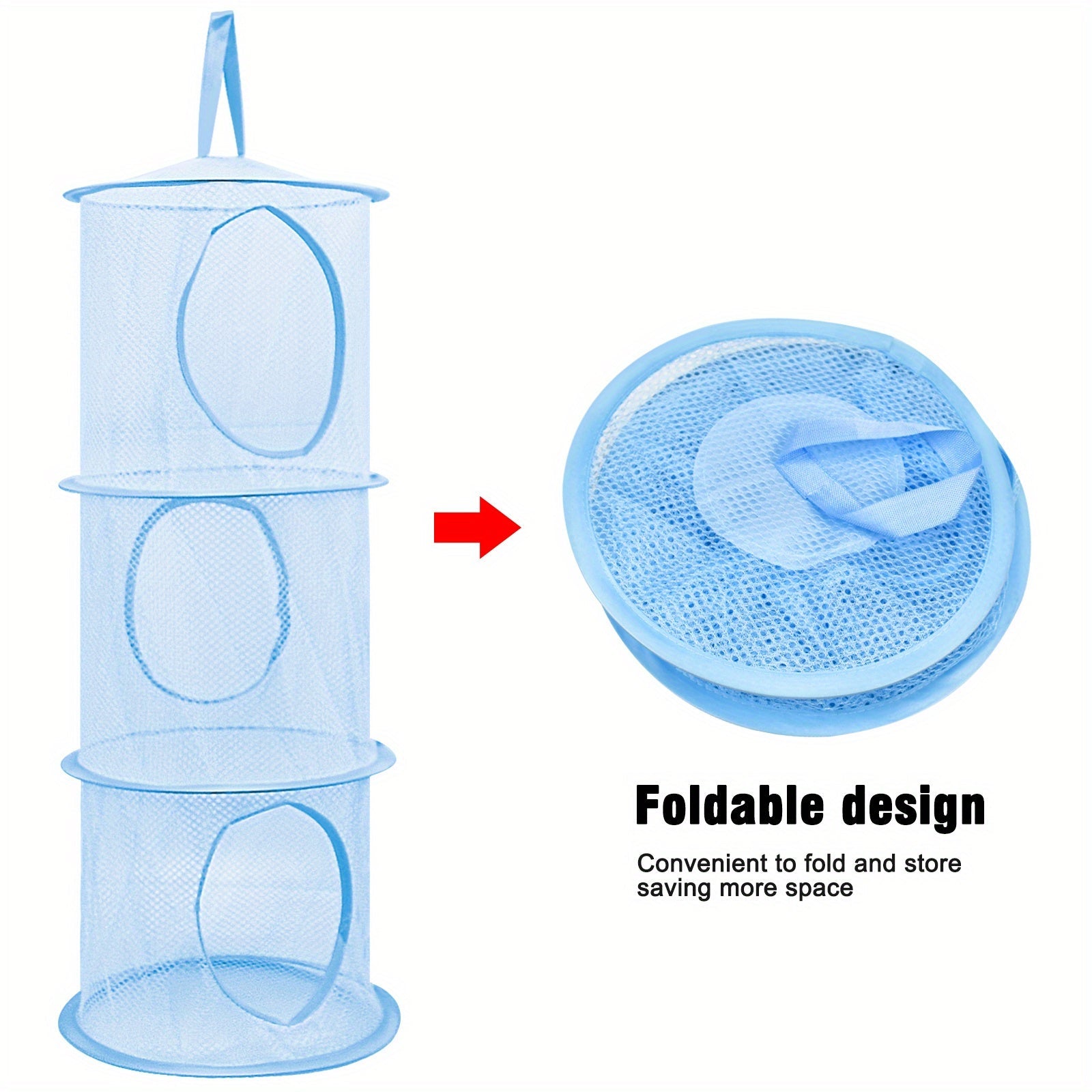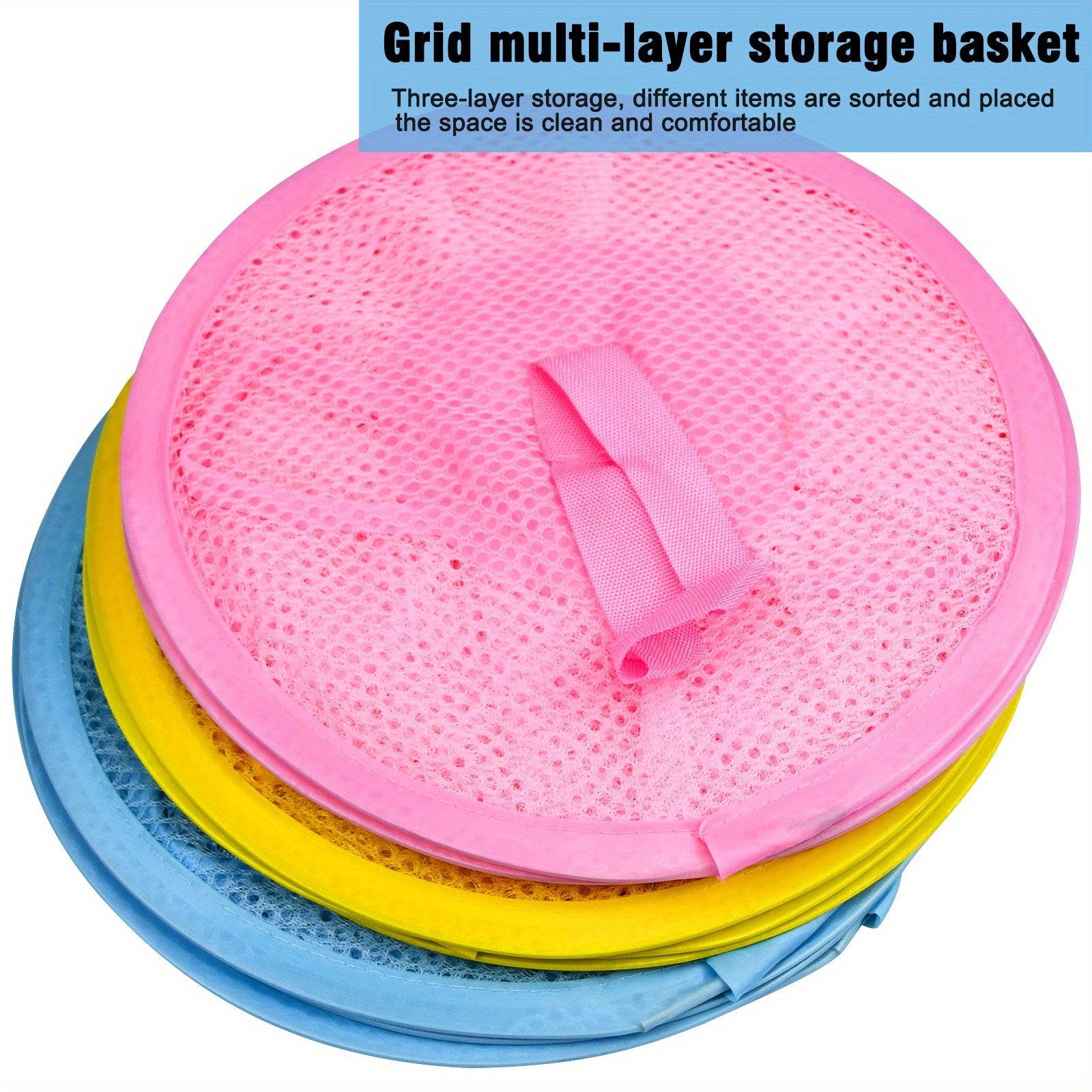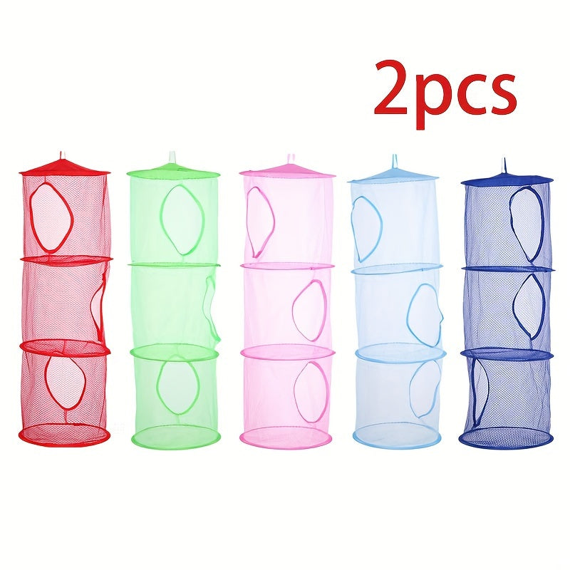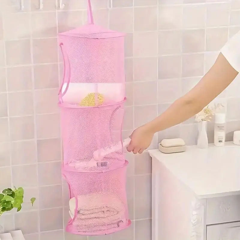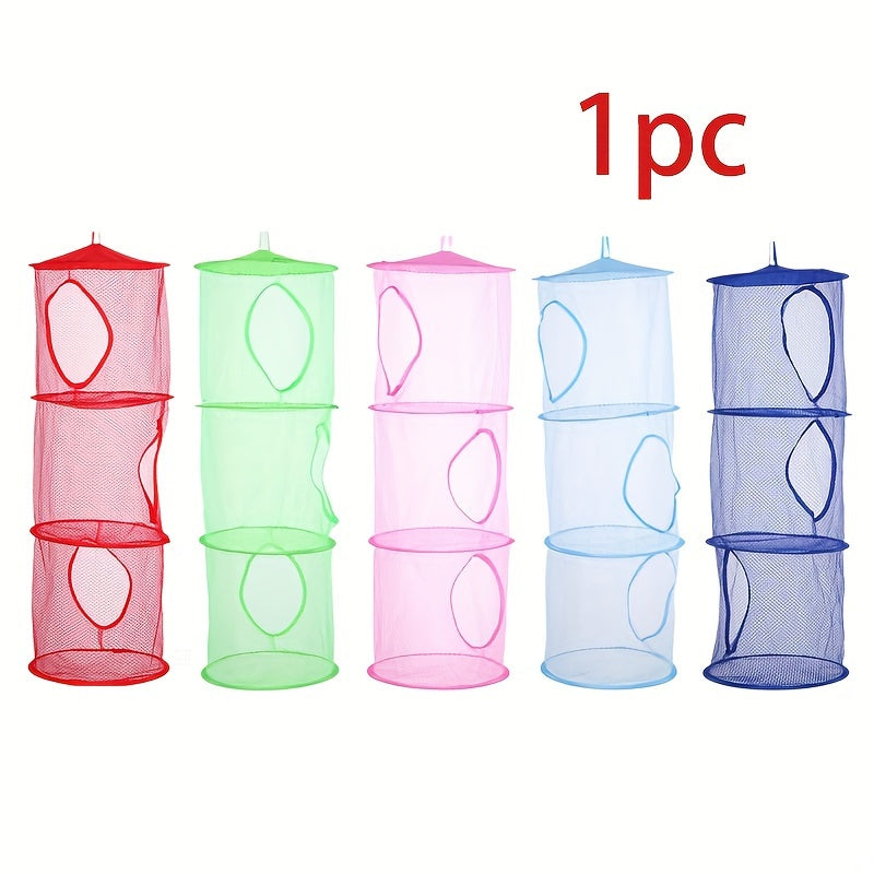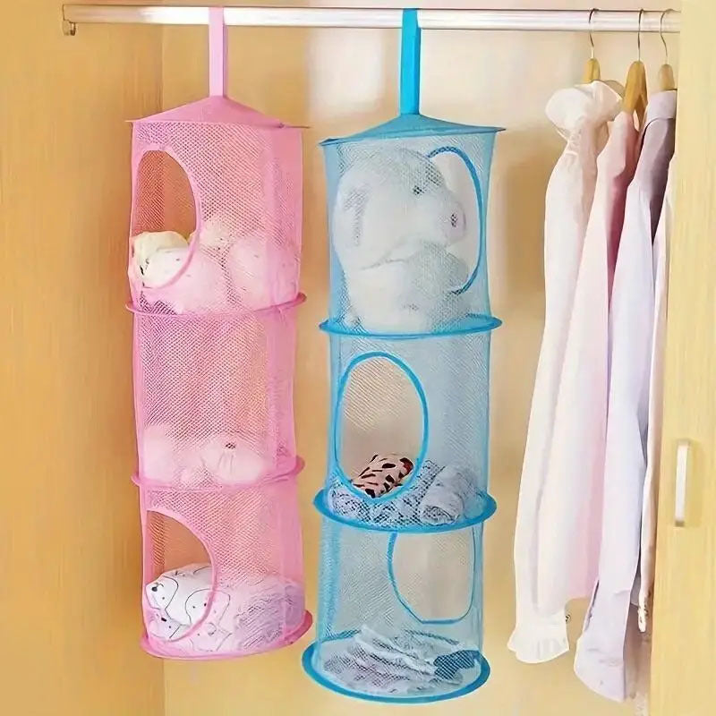 Mesh saqlash savati, osib turadigan kiyimlar va o'yinchoqlar uchun 3-qavatli yig'iladigan dizayn bilan