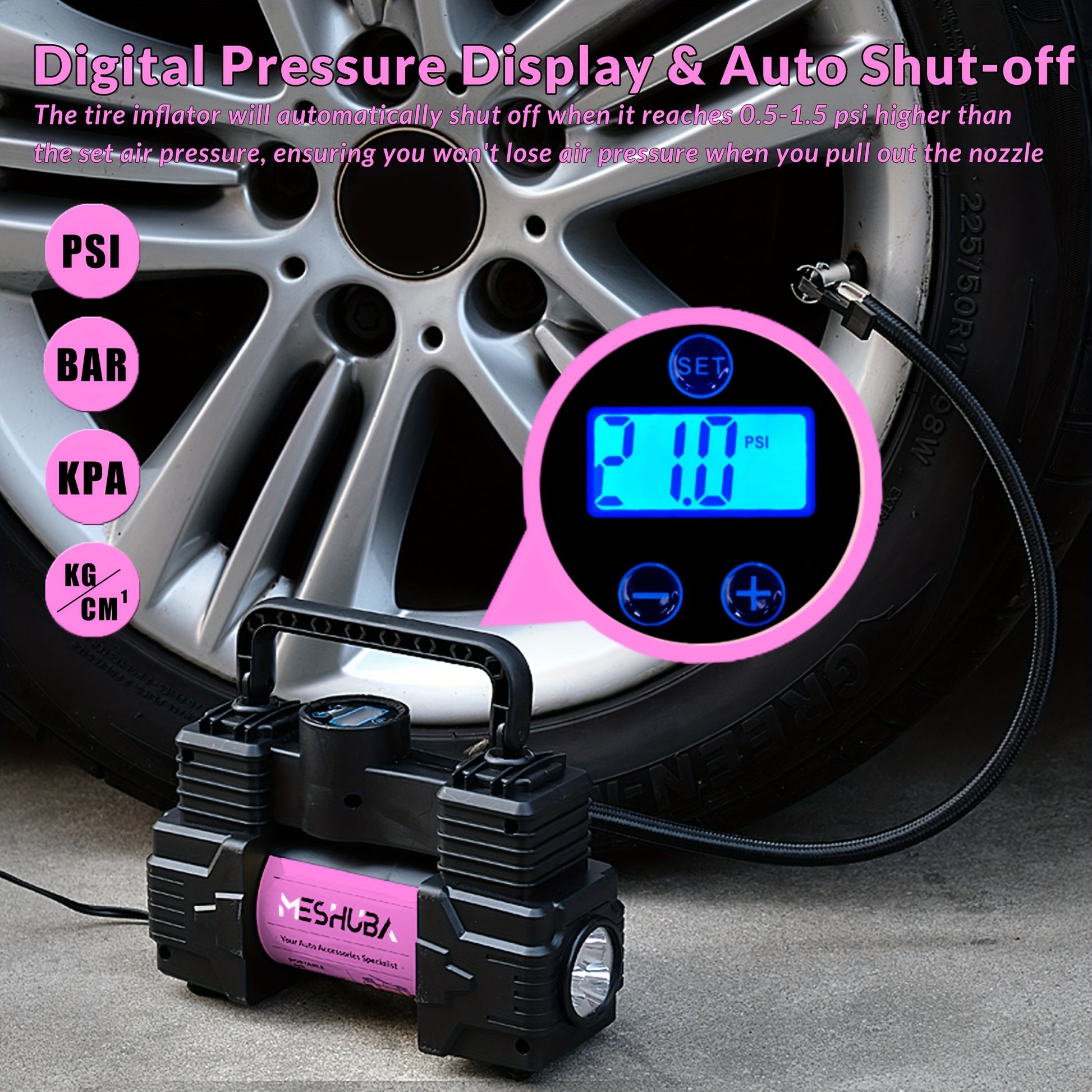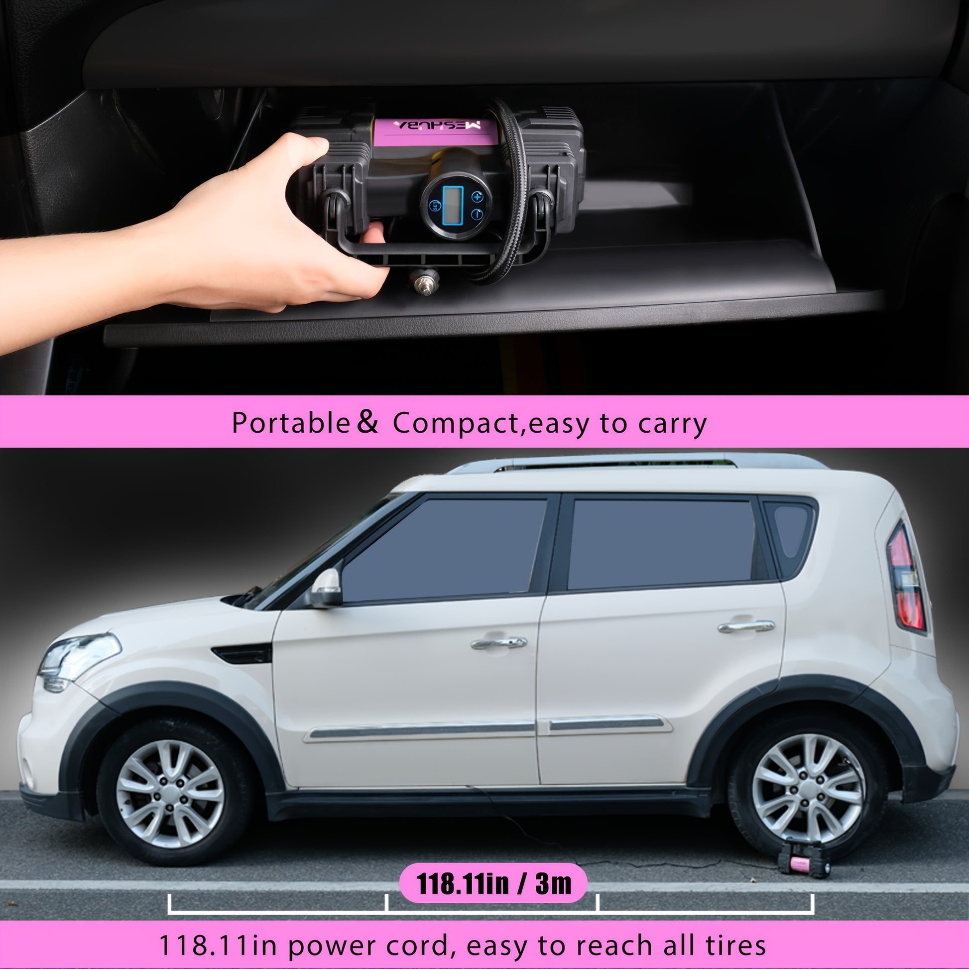 12V портатив ҳаво компрессори рақамли босим ўлчагичи билан машина, велосипед ва доп учун, пурпур