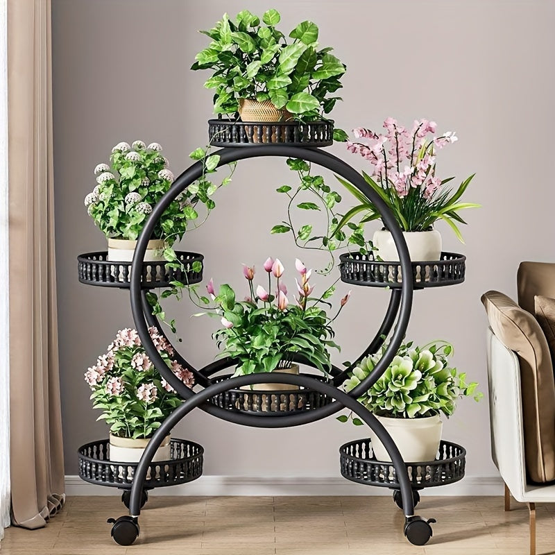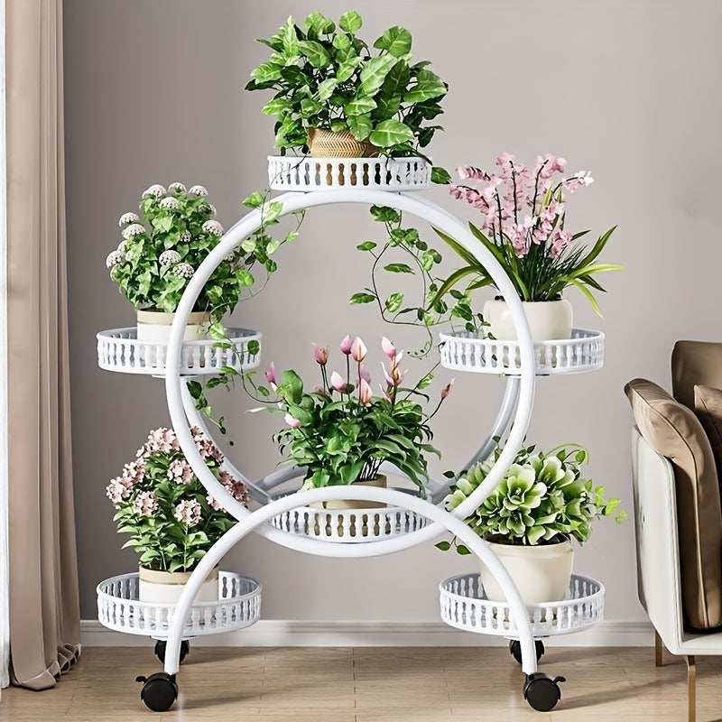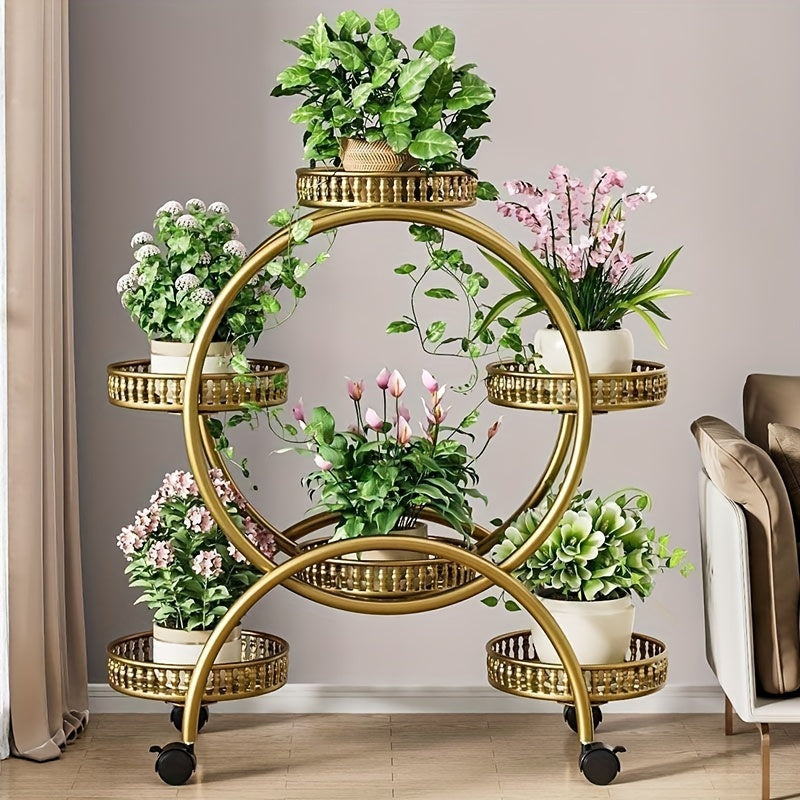 Ichki va tashqi o'simliklar uchun yashash xonasi yoki balkon uchun g'ildirakli metall gullar stendi.