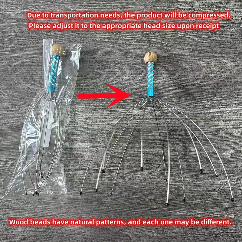 Teri chuqur stimulyatsiyasi uchun kalmar shaklidagi dizaynga ega metall bosh massaj qiluvchi, uyda yoki sayohatda foydalanish uchun qulay.