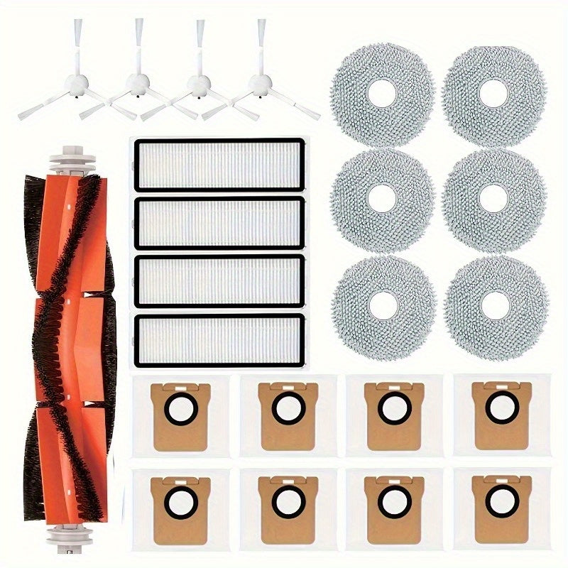 Mi Robot Vacuum Cleaner X20/X20 Plus uchun mos 23 dona almashtirish qismlari to'plami - 1 ta asosiy cho'tka, 4 ta yon cho'tka, 4 ta HEPA filtri, 6 ta mikro tolali mopa, 8 ta chang sumkasi - vakuum aksessuarlar
